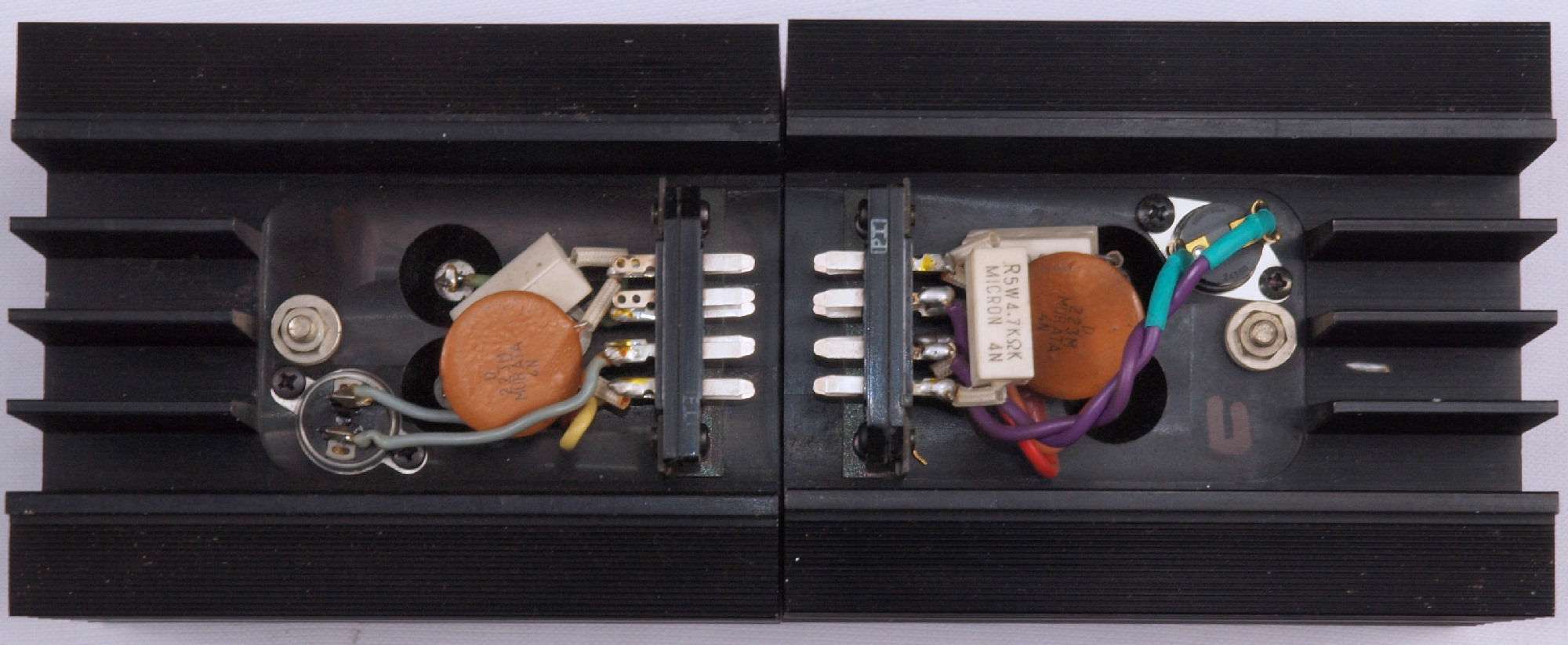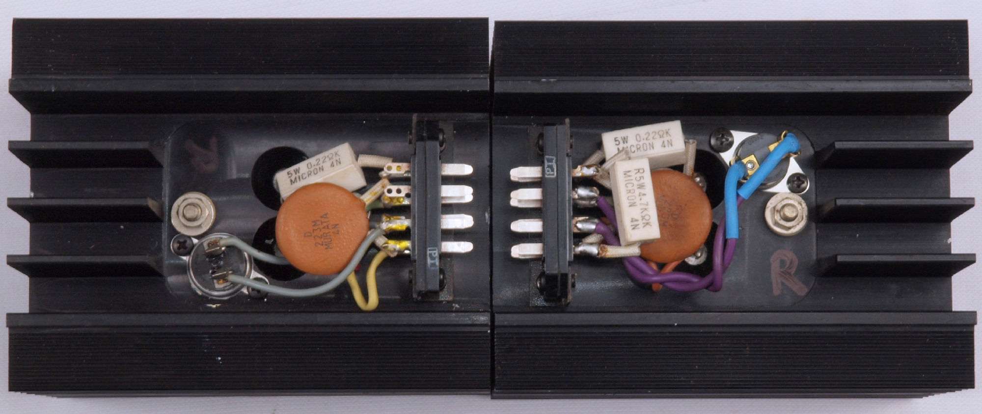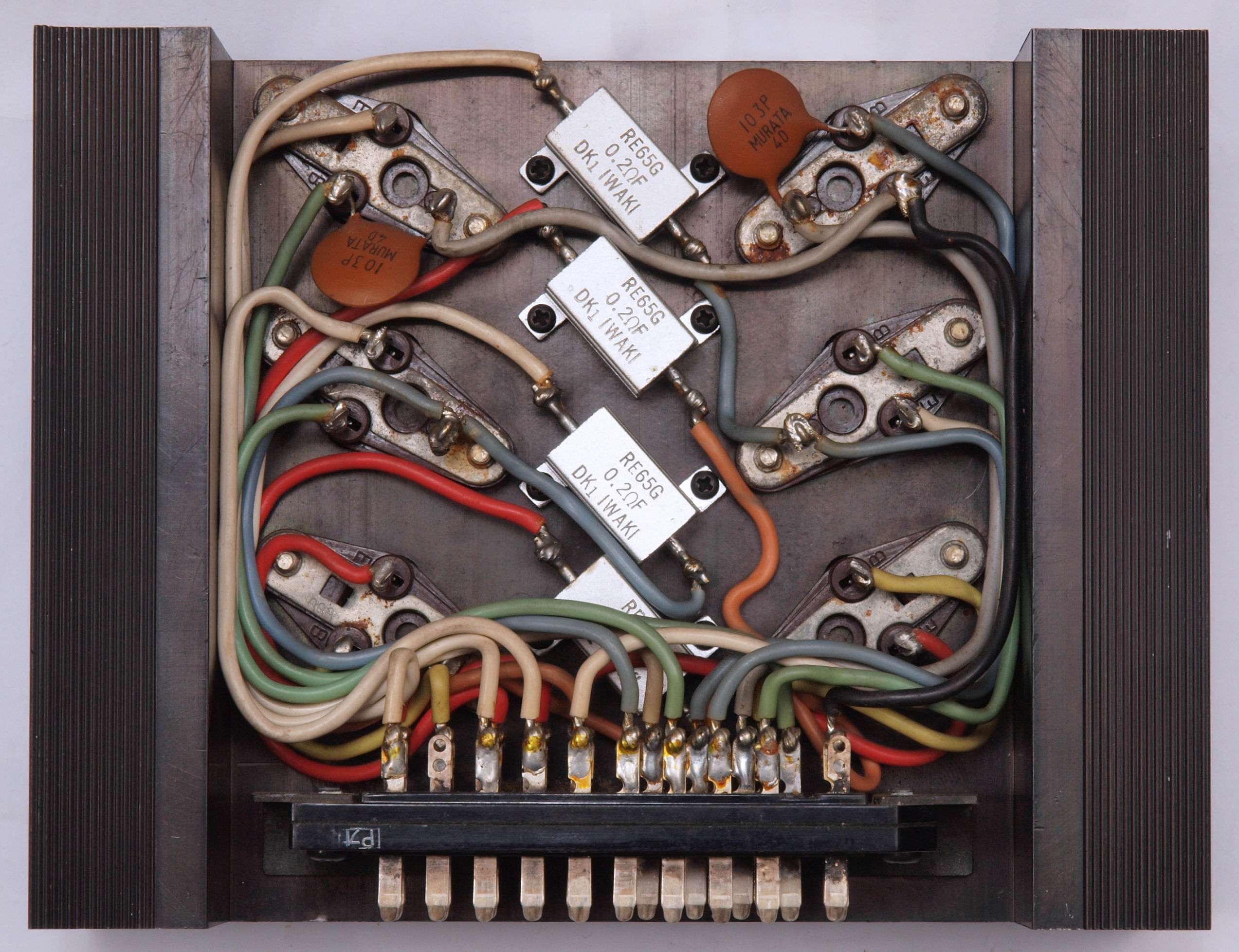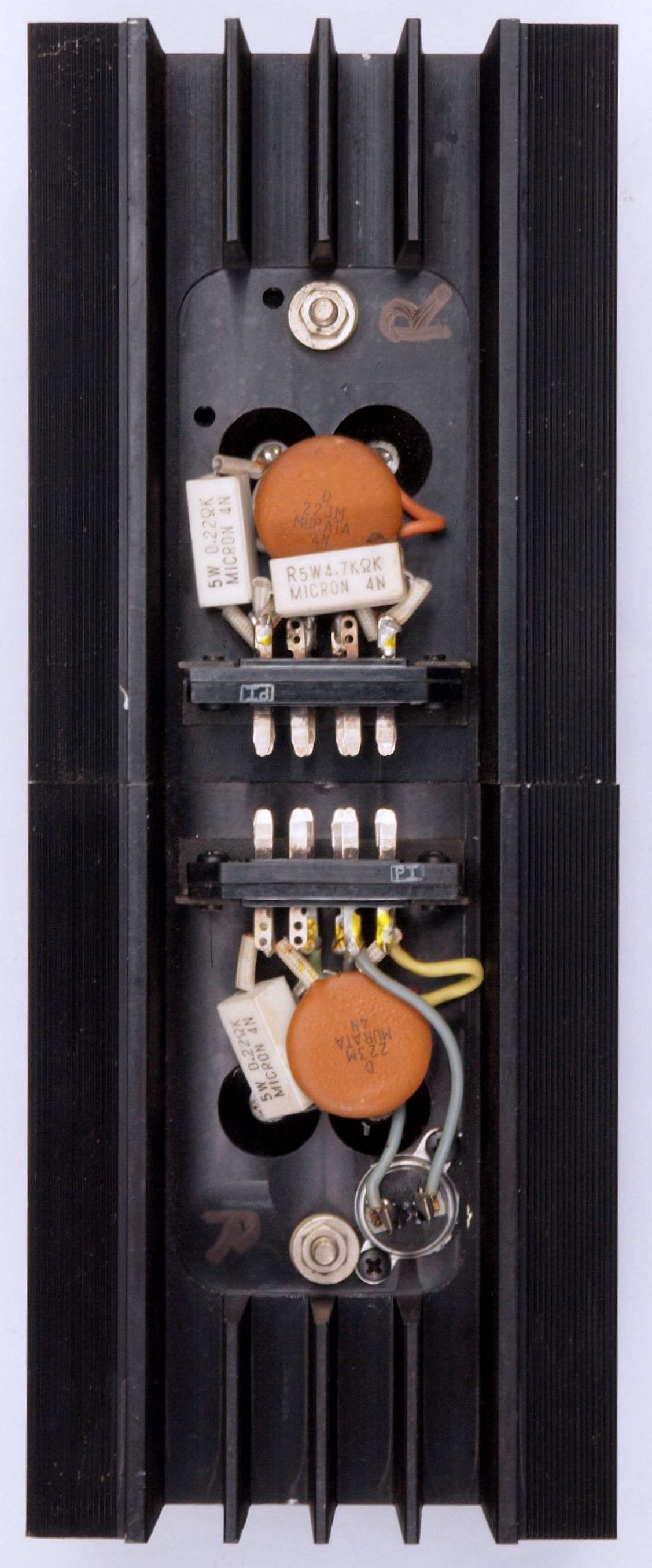 C83. 修理後 R側終段出力SIT(静電誘導型トランジスター)裏、サーモスタット増設。