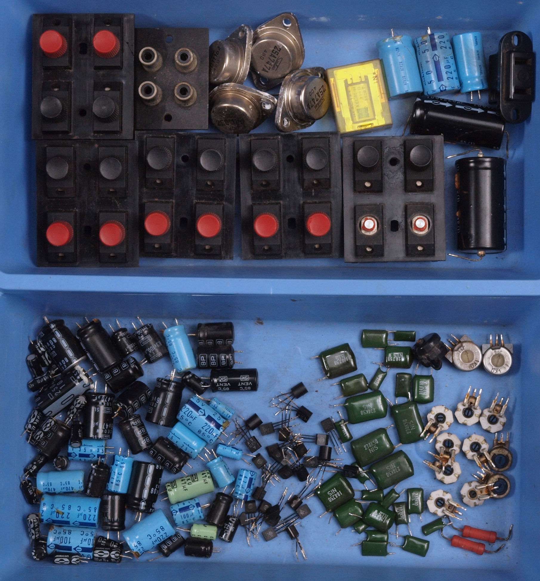 TR(トランジスター)=113個、 LED=3個、 ツェナーダイオード=7個、 ダイオード=64個