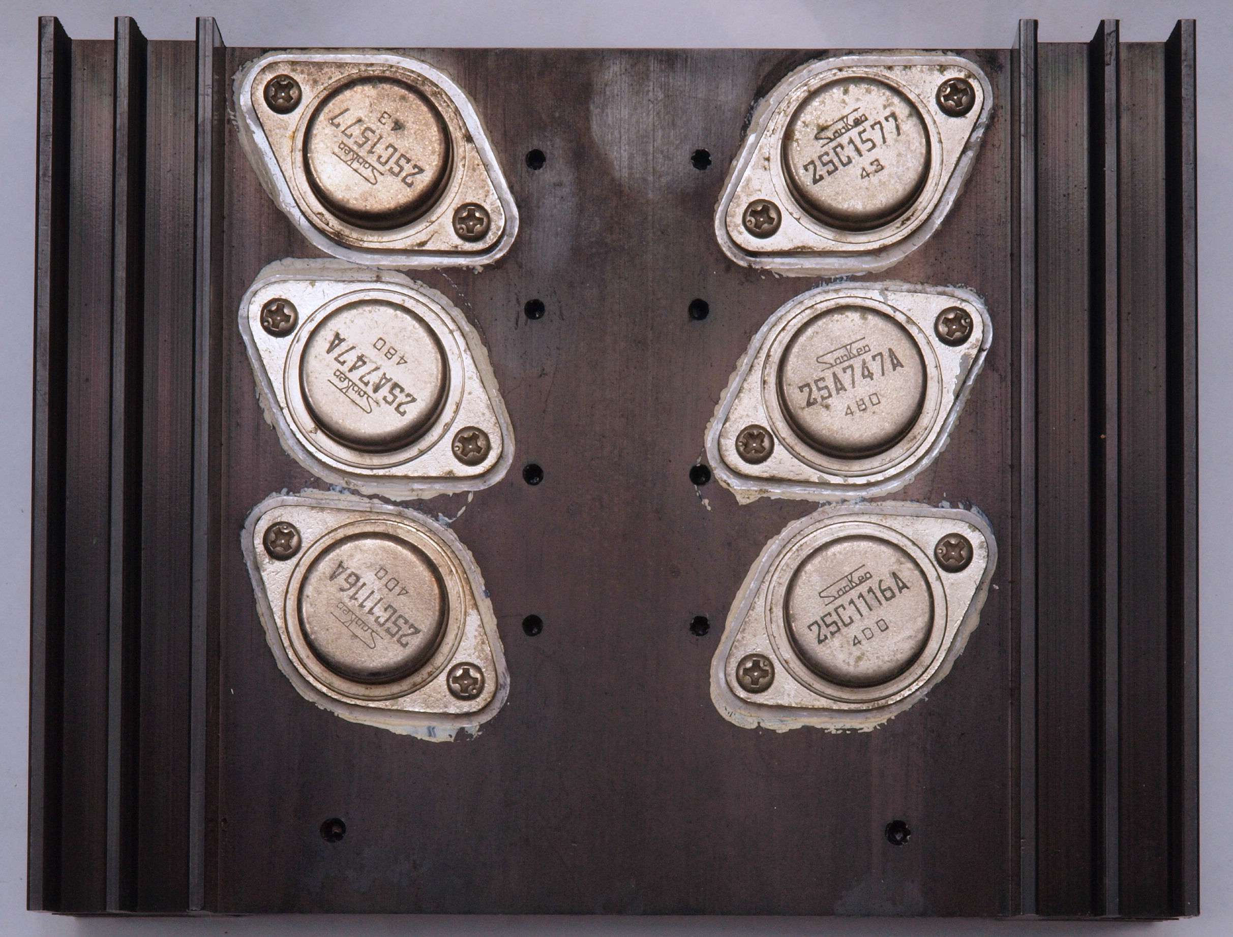C112. 修理前 R側ドライブ基板、出力FET(Field Effect Transistor)とTR(トランジスター)