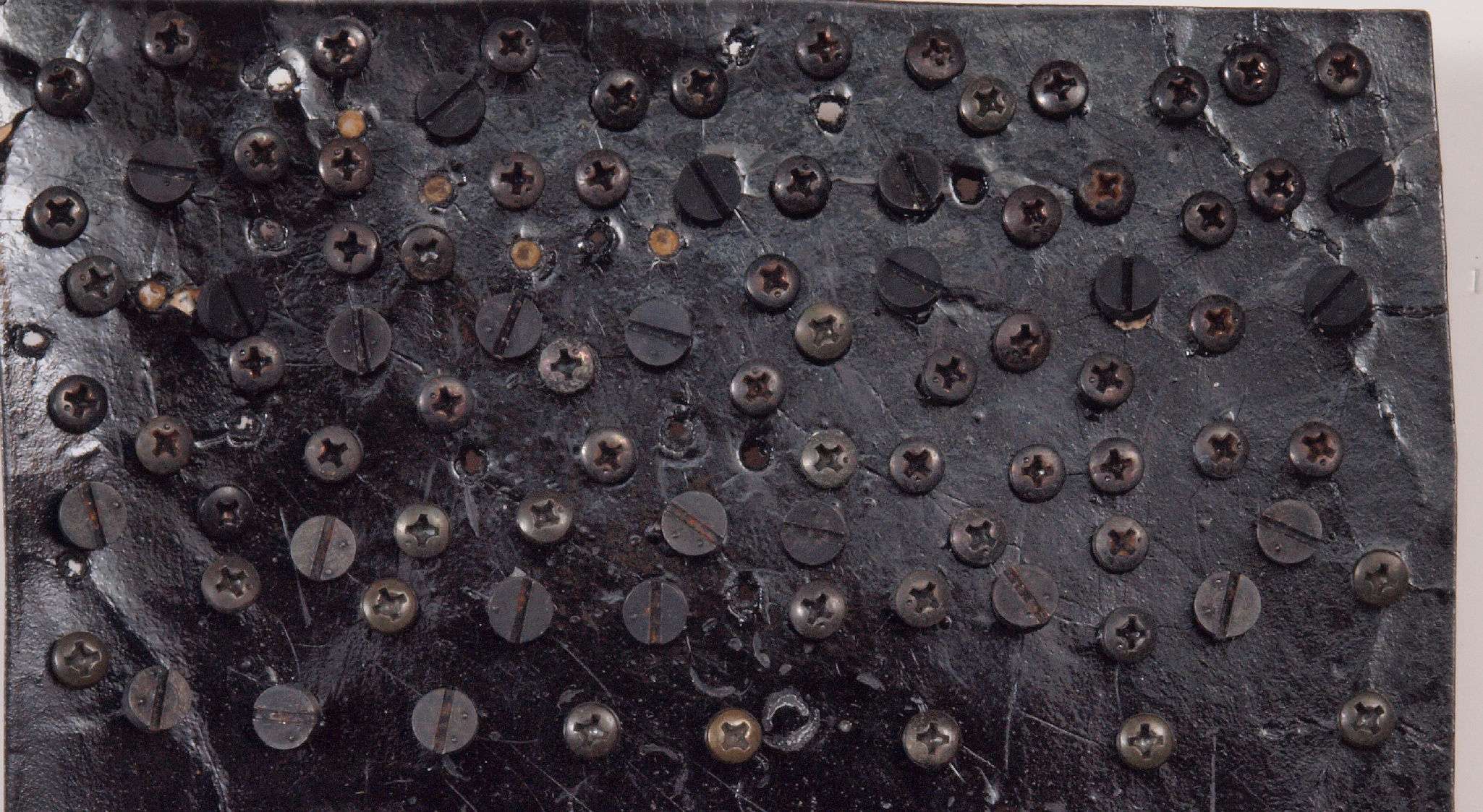 P31. 修理(塗装)中 ビス類。  このビス類は鉄製で「銅メッキ」後「黒色ペンキ塗り」なので、現在入手難!