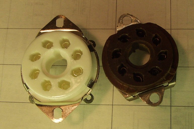 1.右=6CA7に使用されていた、ベーク製のソケット、足の周りが焼けこげている。