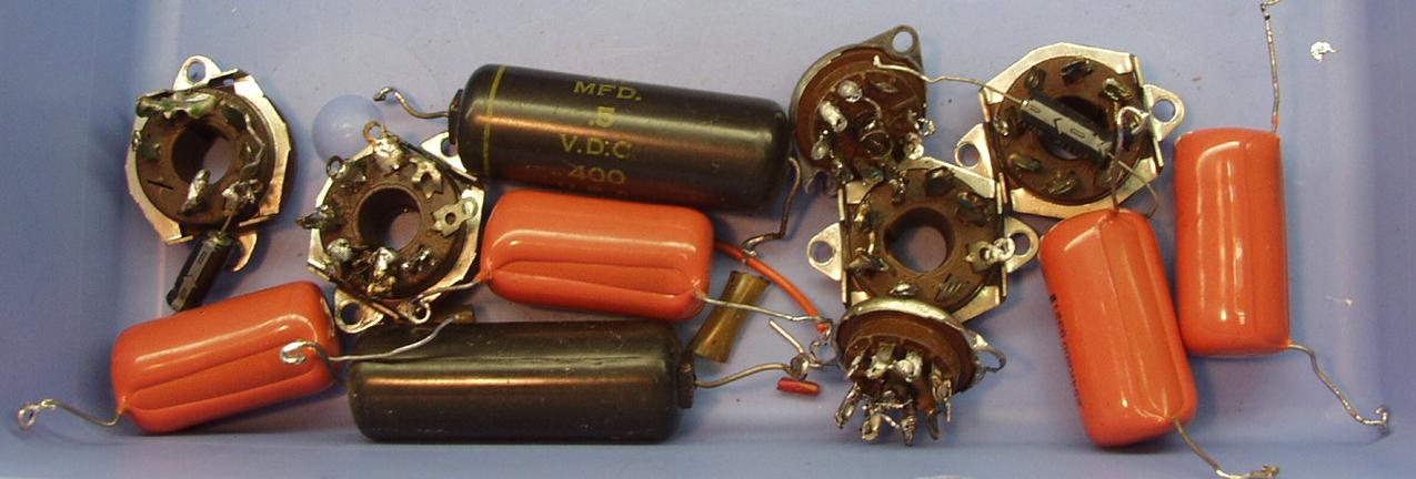 下の白い筒状のが交換する、メタライズド・フイルム・コンデンサー