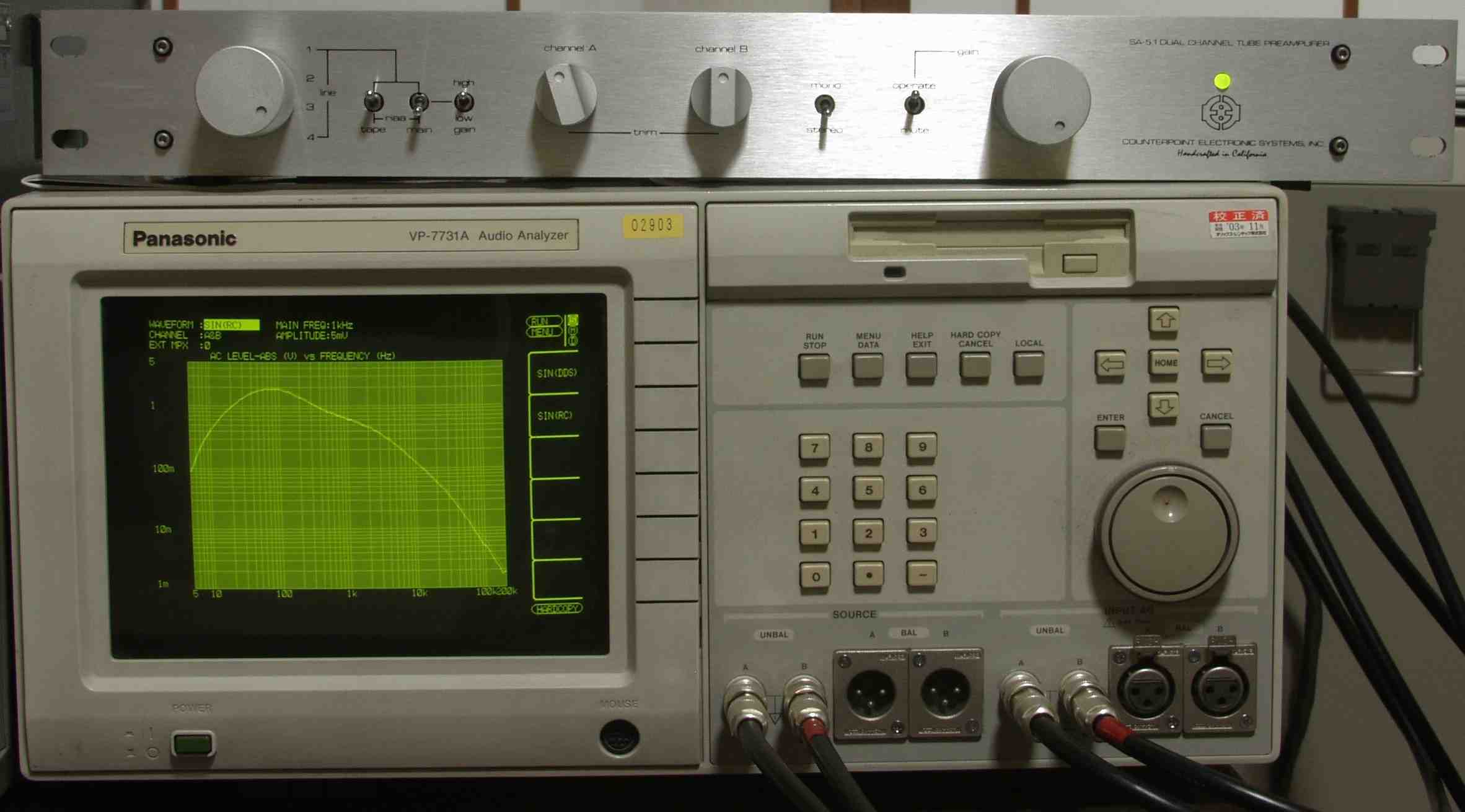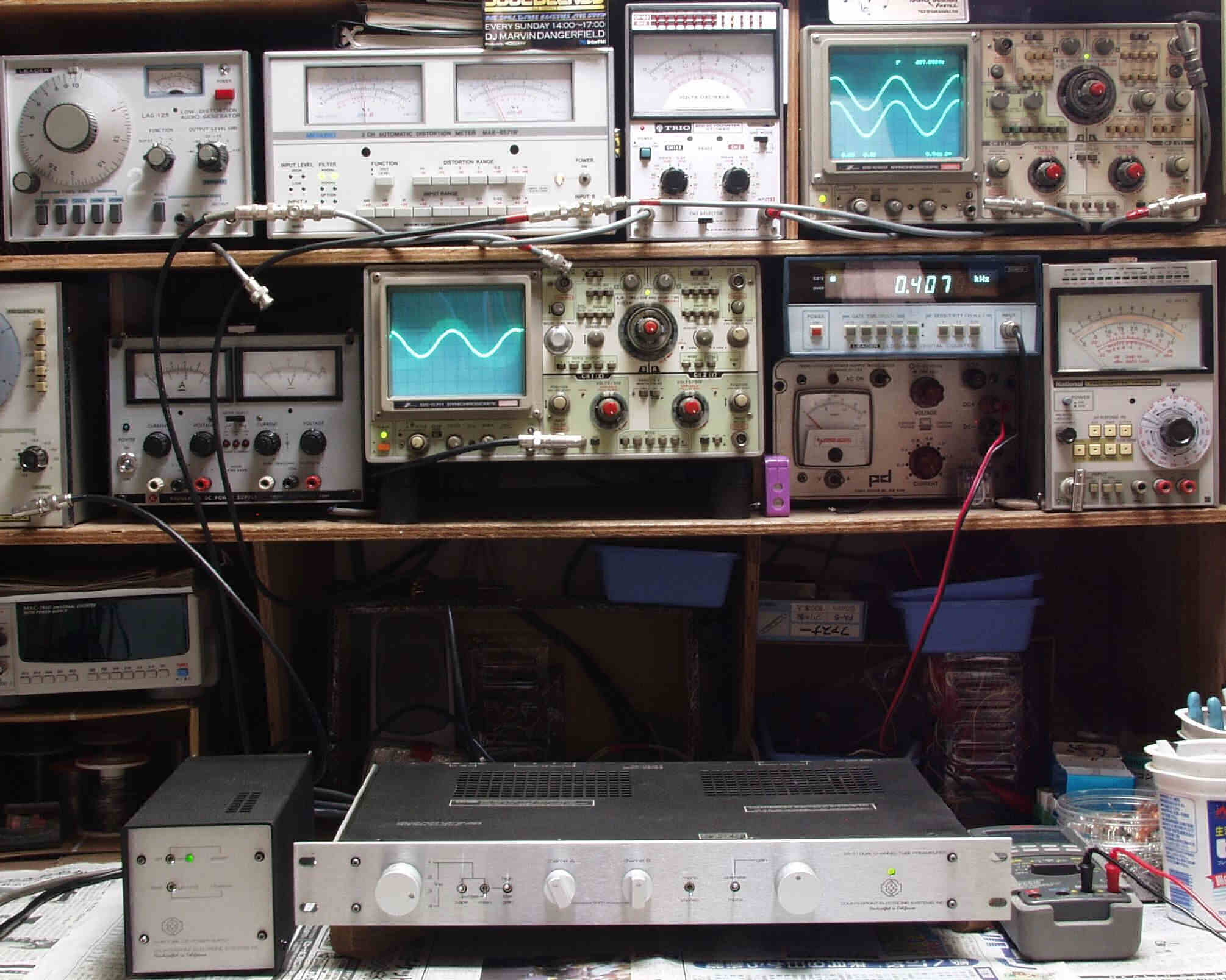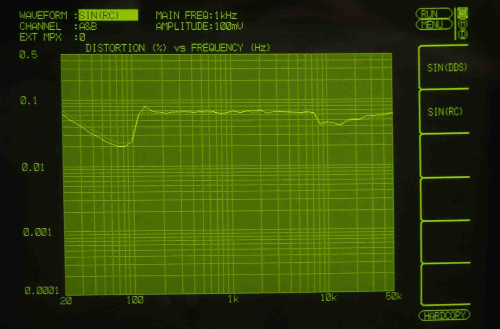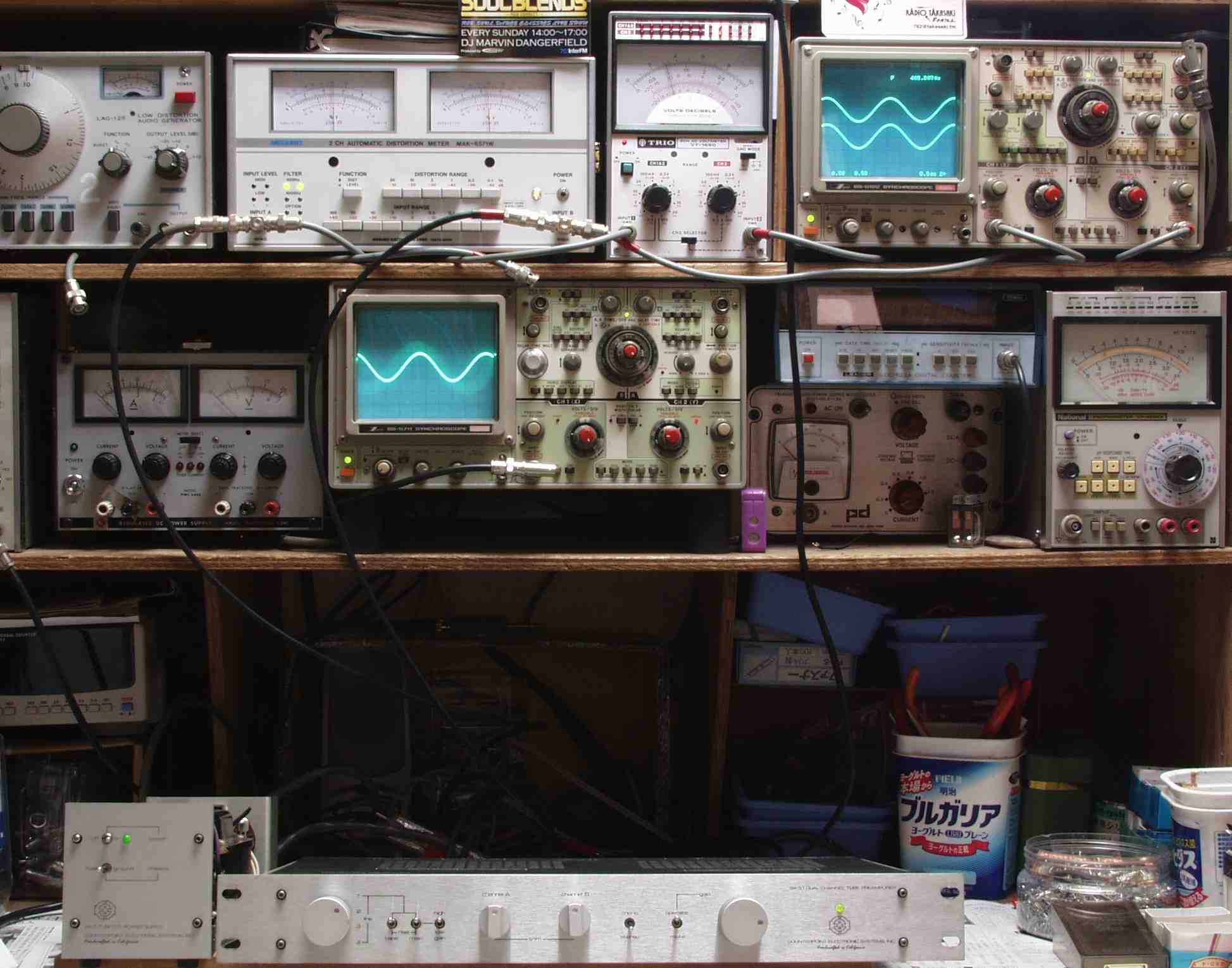 上左=SP出力の歪み率測定 左メ−タ−=L出力、右メ−タ−=R出力