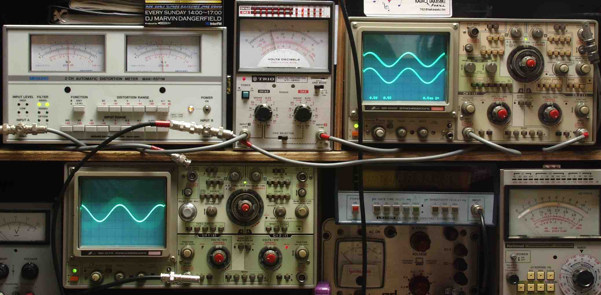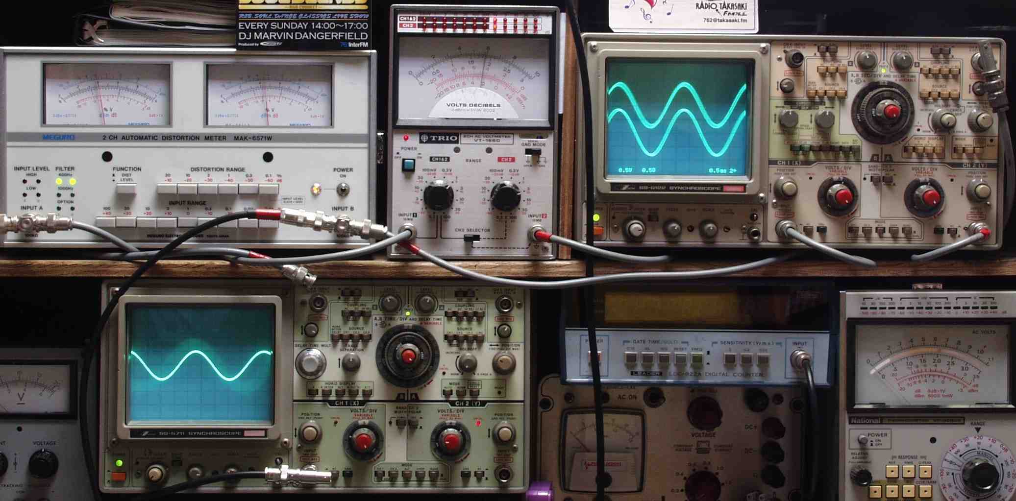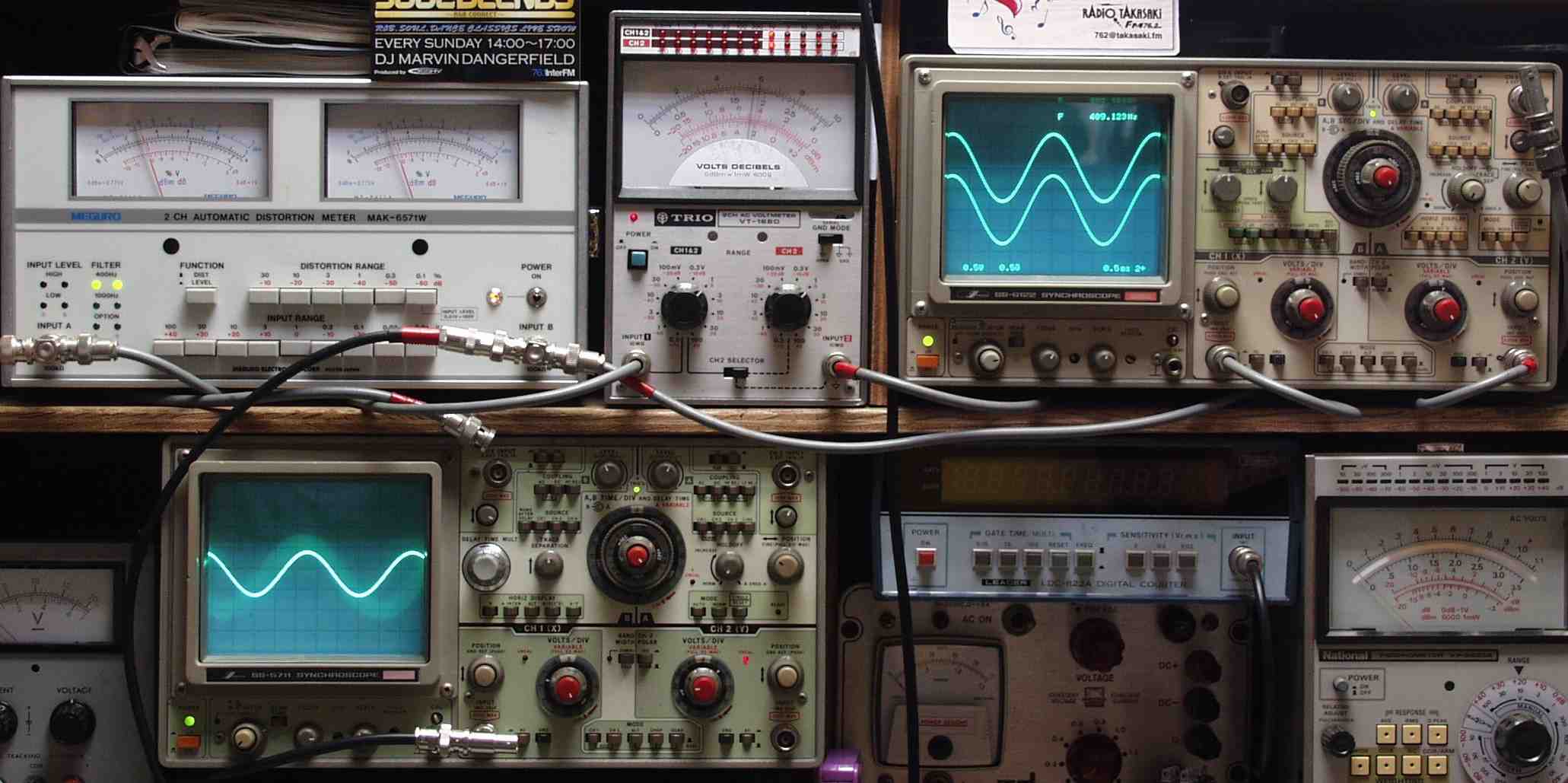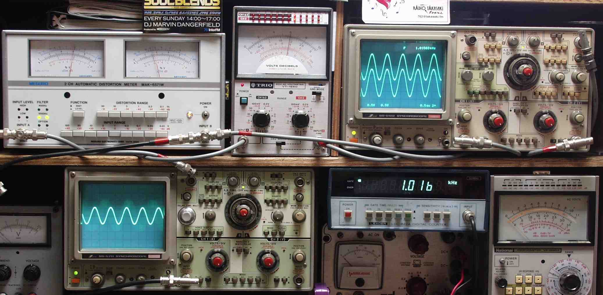 上左=SP出力の歪み率測定 左メ−タ−=L出力、右メ−タ−=R出力