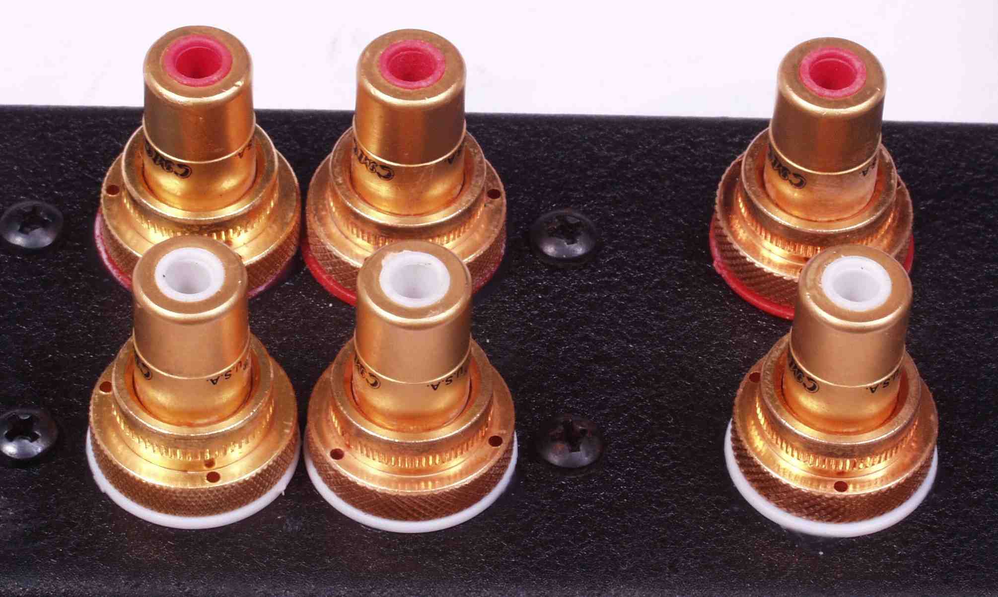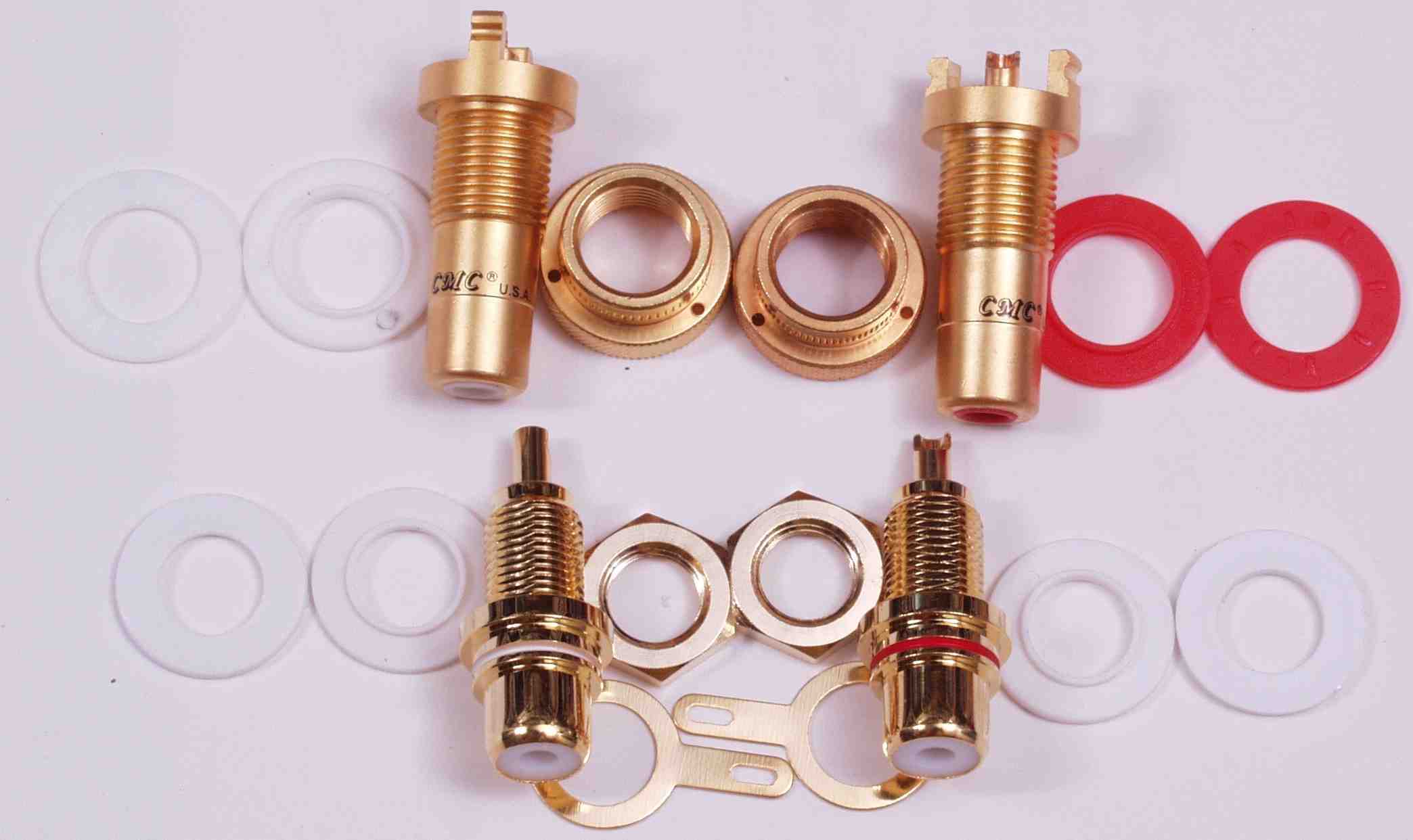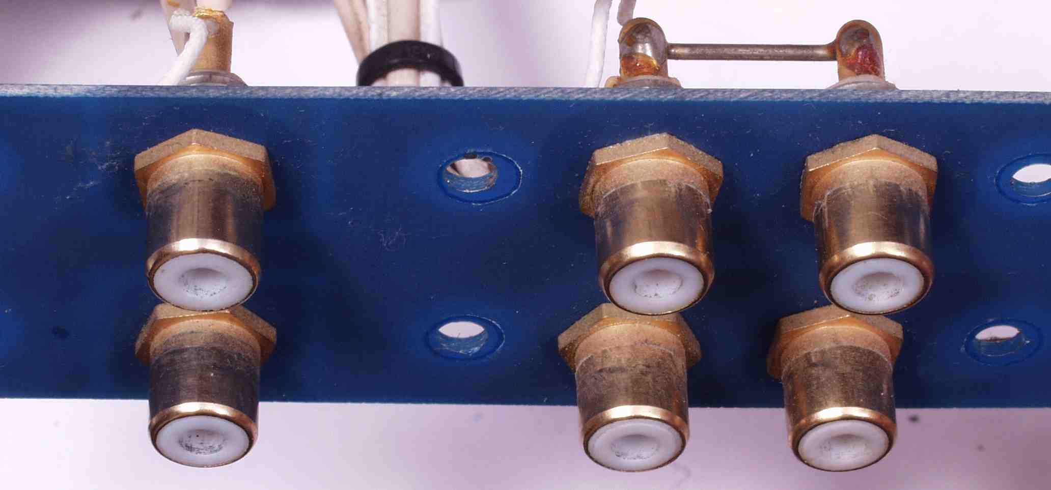 A34. 点検中 上=ユーザーから送られてきたRCA端子、外ネジタイプ、シャシから絶縁しにくいし、絶縁が薄い