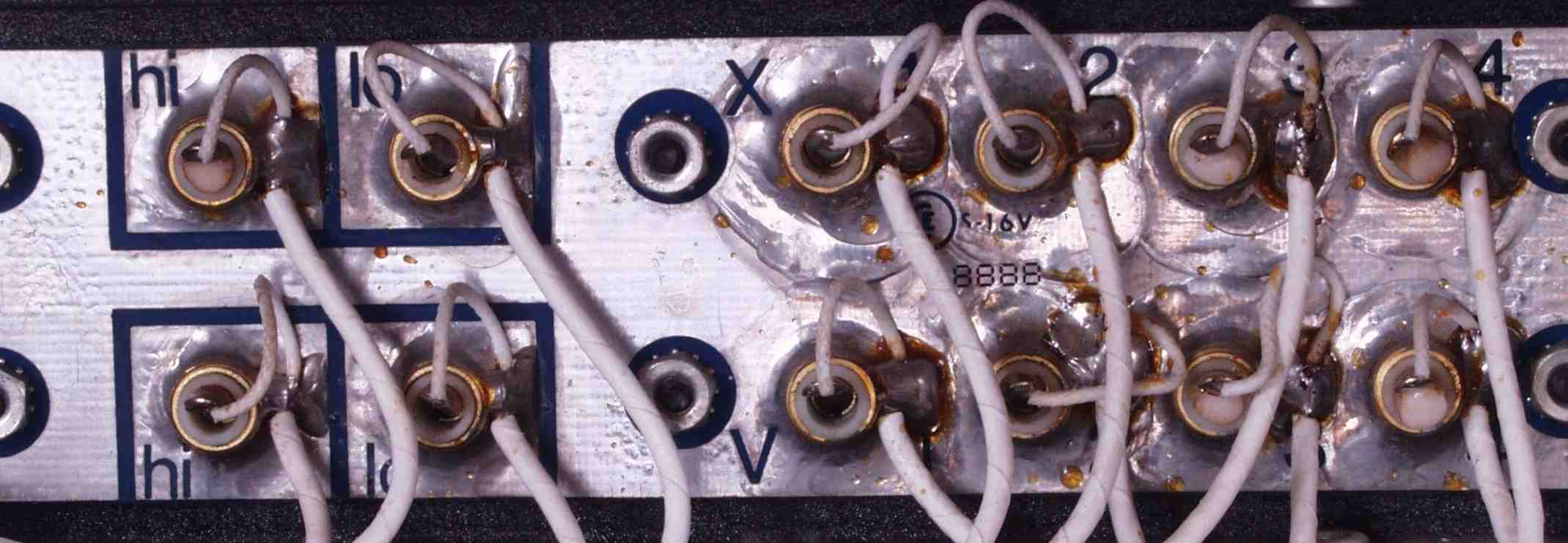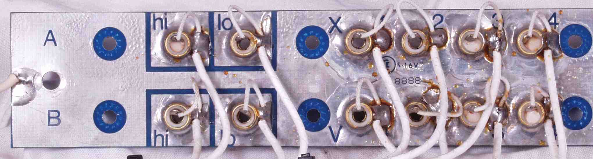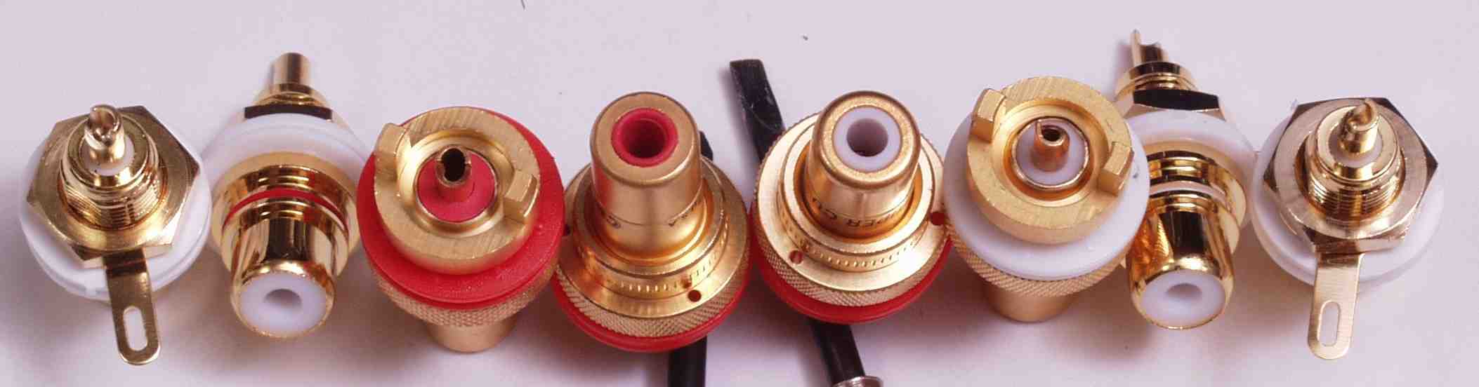 A34. 点検中 上=ユーザーから送られてきたRCA端子、外ネジタイプ、シャシから絶縁しにくいし、絶縁が薄い
