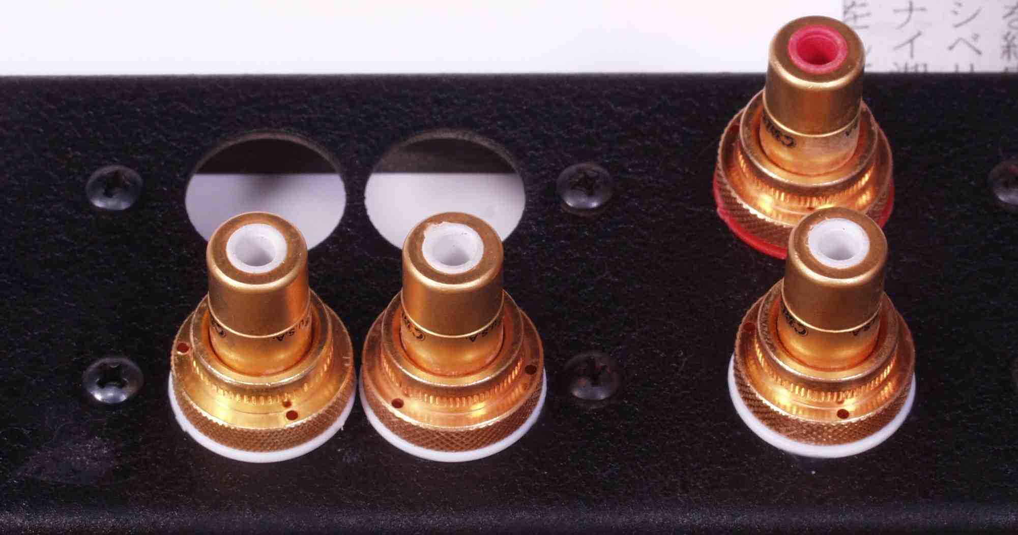 A32. 点検中 入力RCA端子、内側に基板を使用し、内ネジタイプ、アースは別個に取っている
