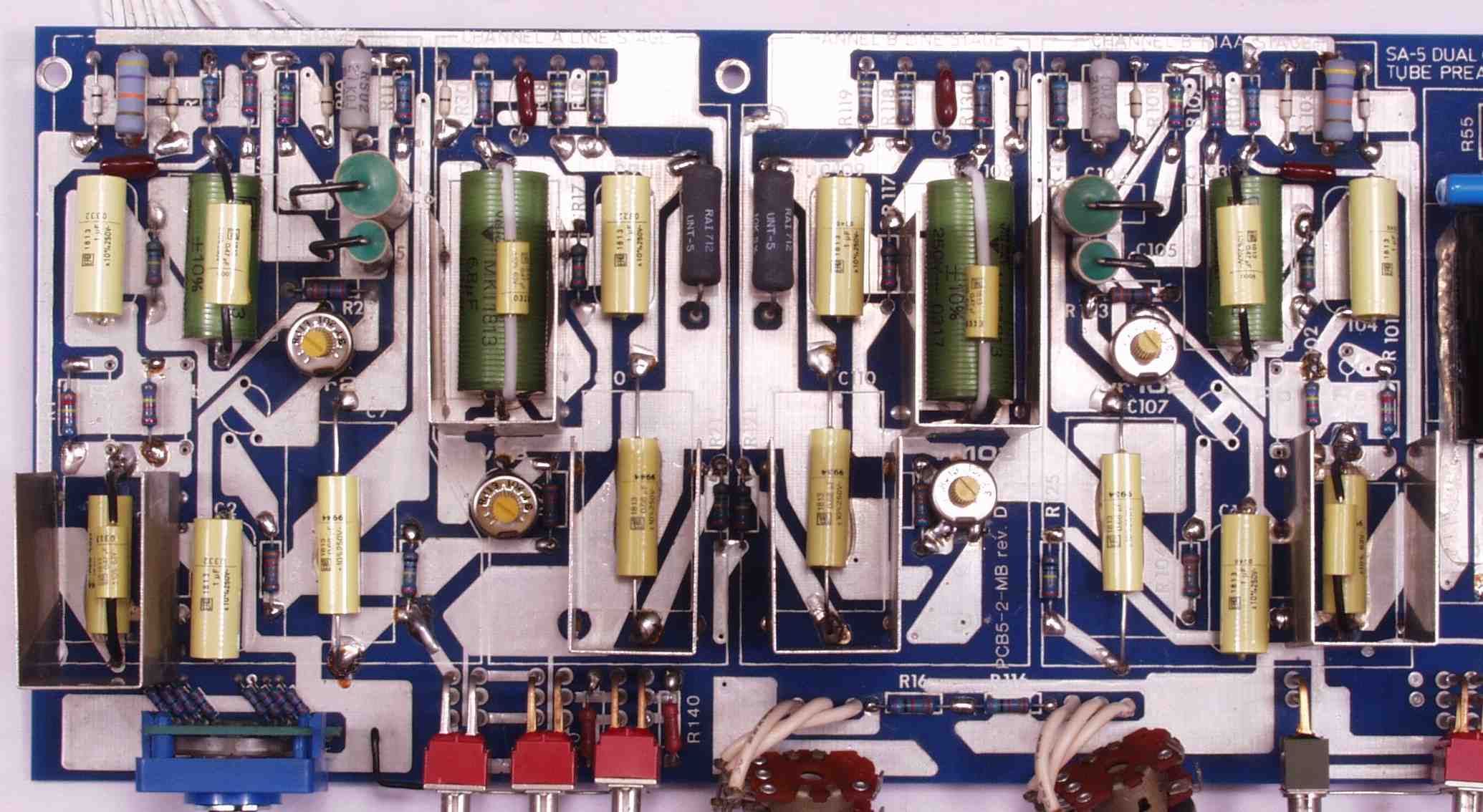 C13. 修理後 AMP基板 半固定VR4個、フィルムコンデンサー22個交換
