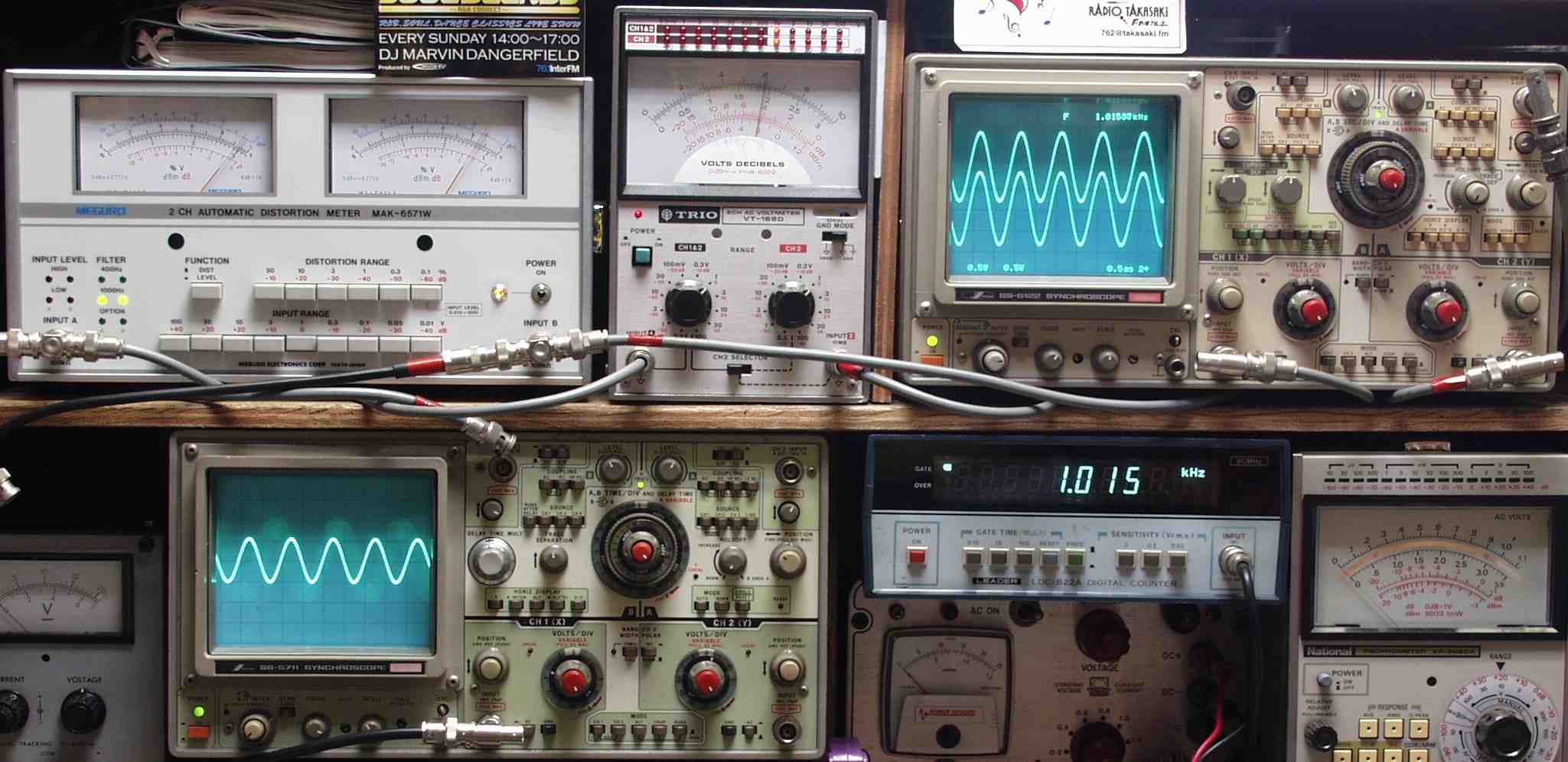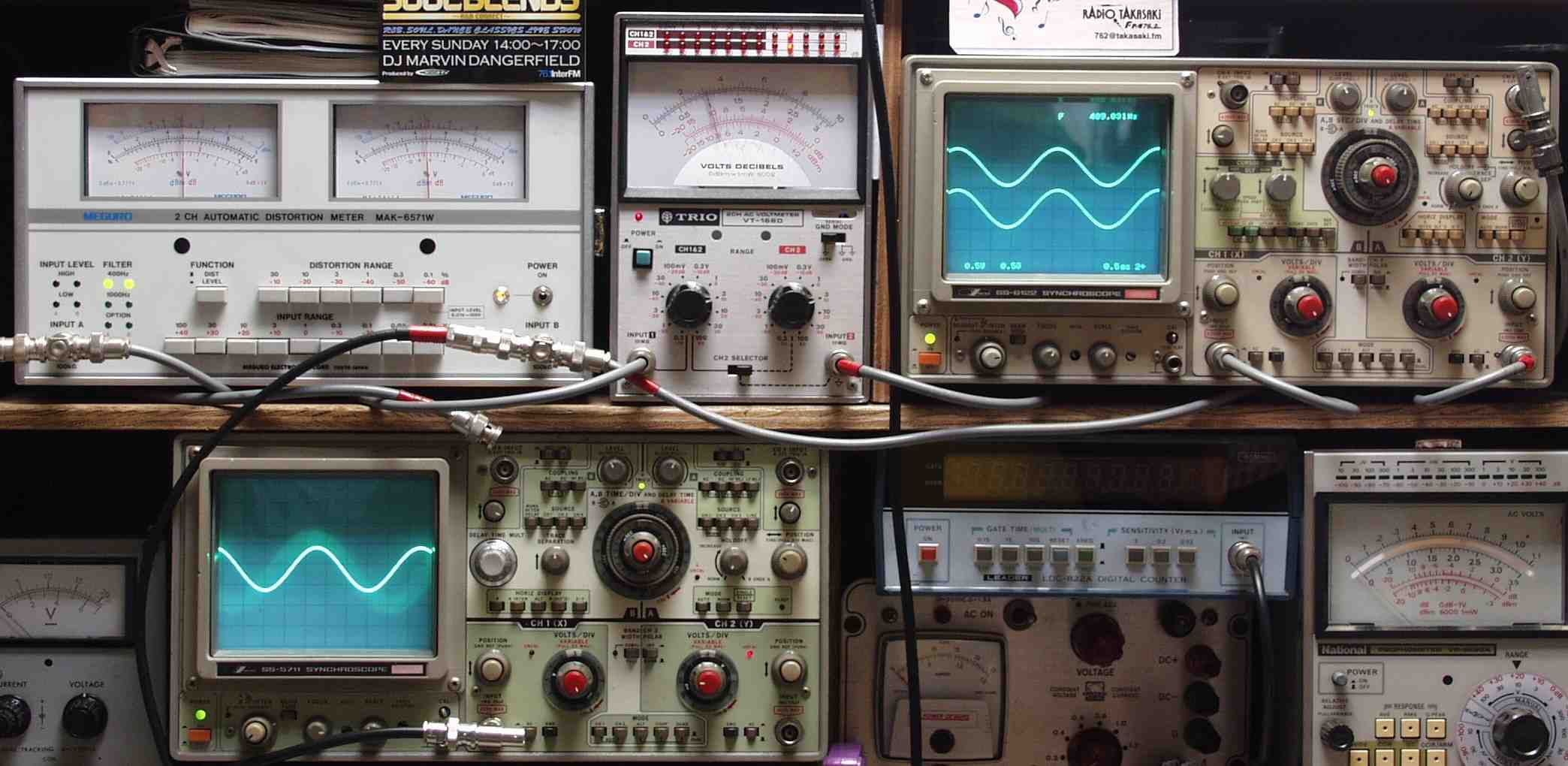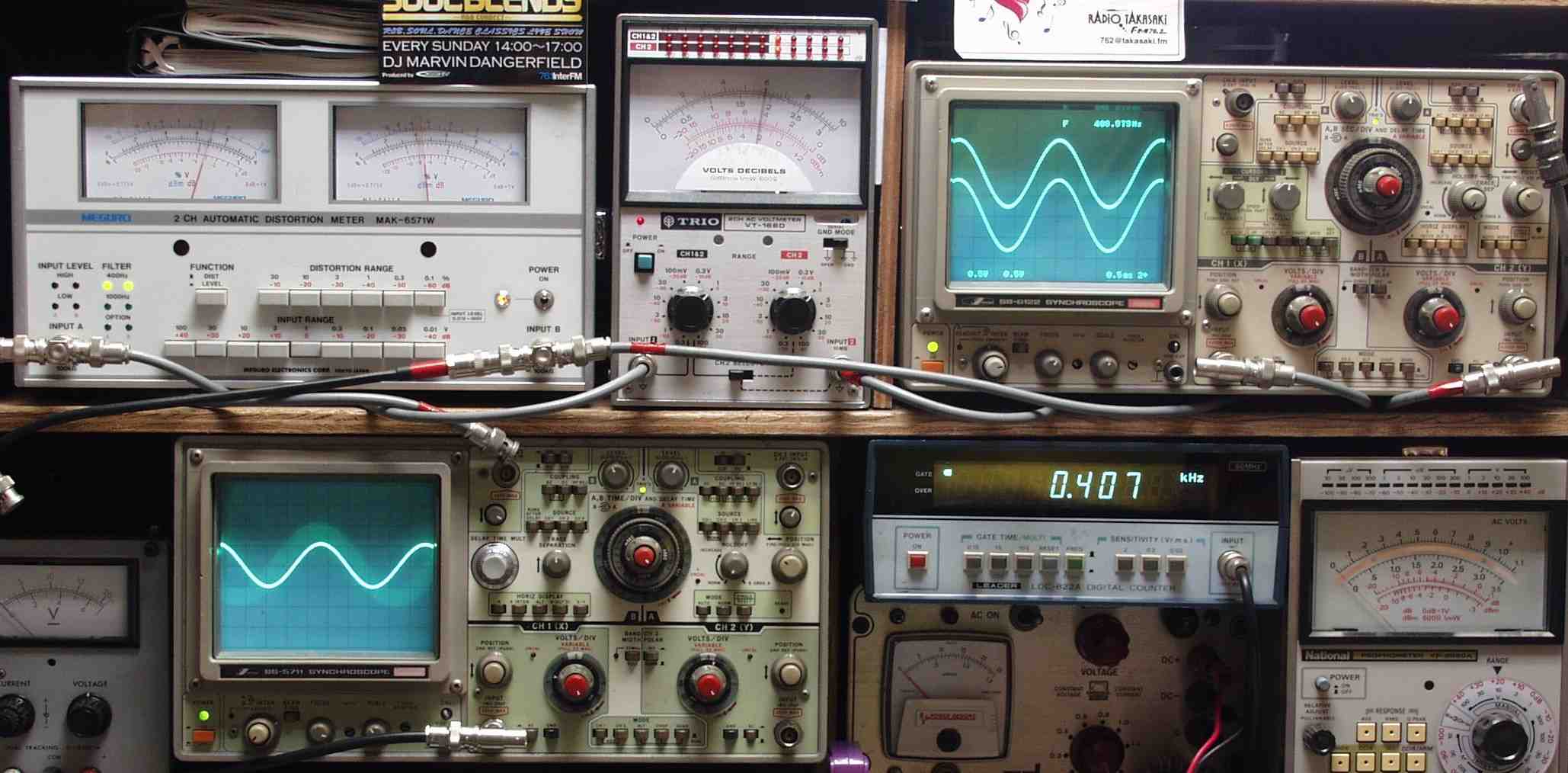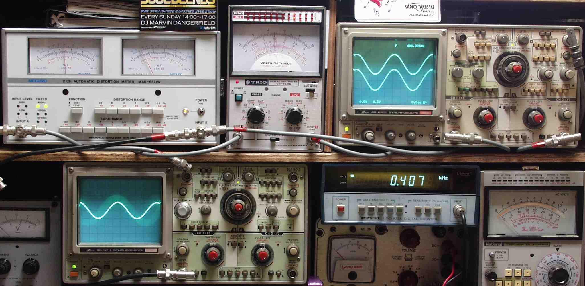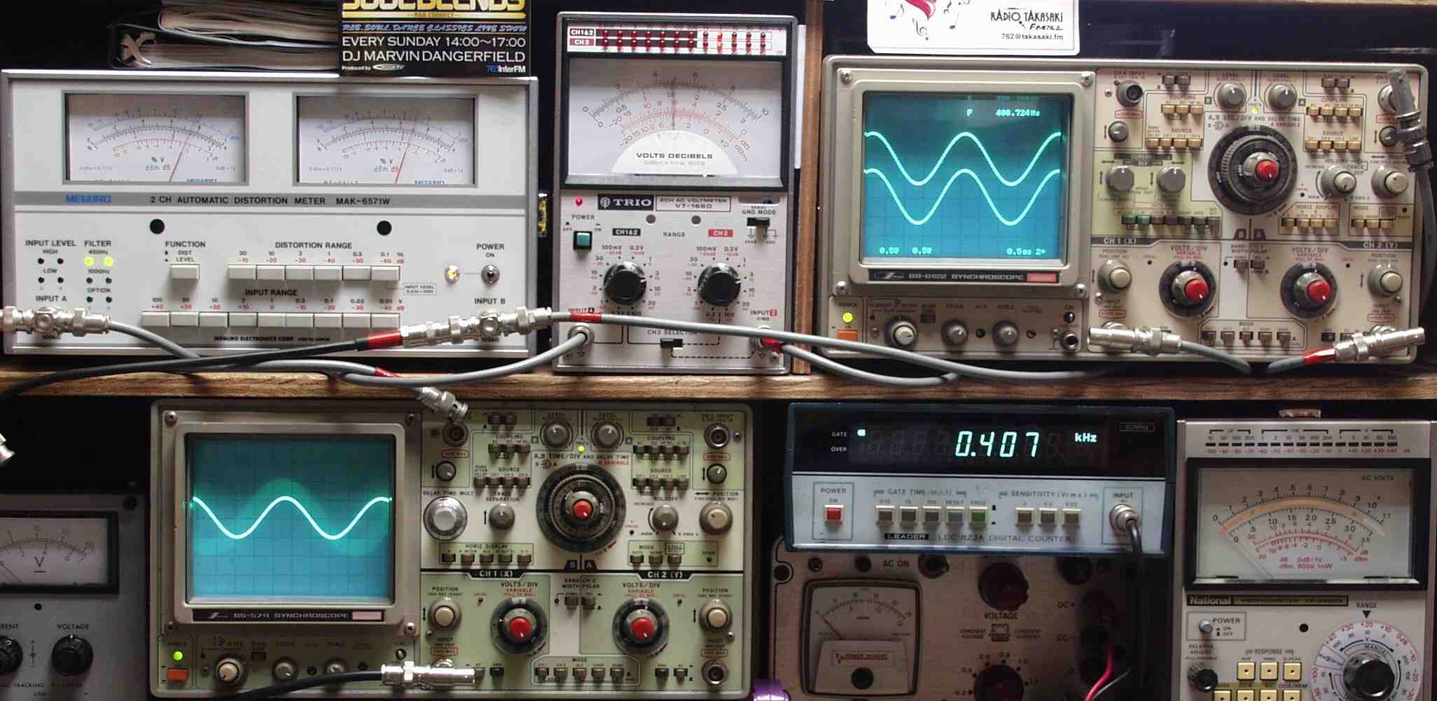 上左オーデオ発振器より400HZ・1KHZの信号を出す(歪み率=約0.003%)