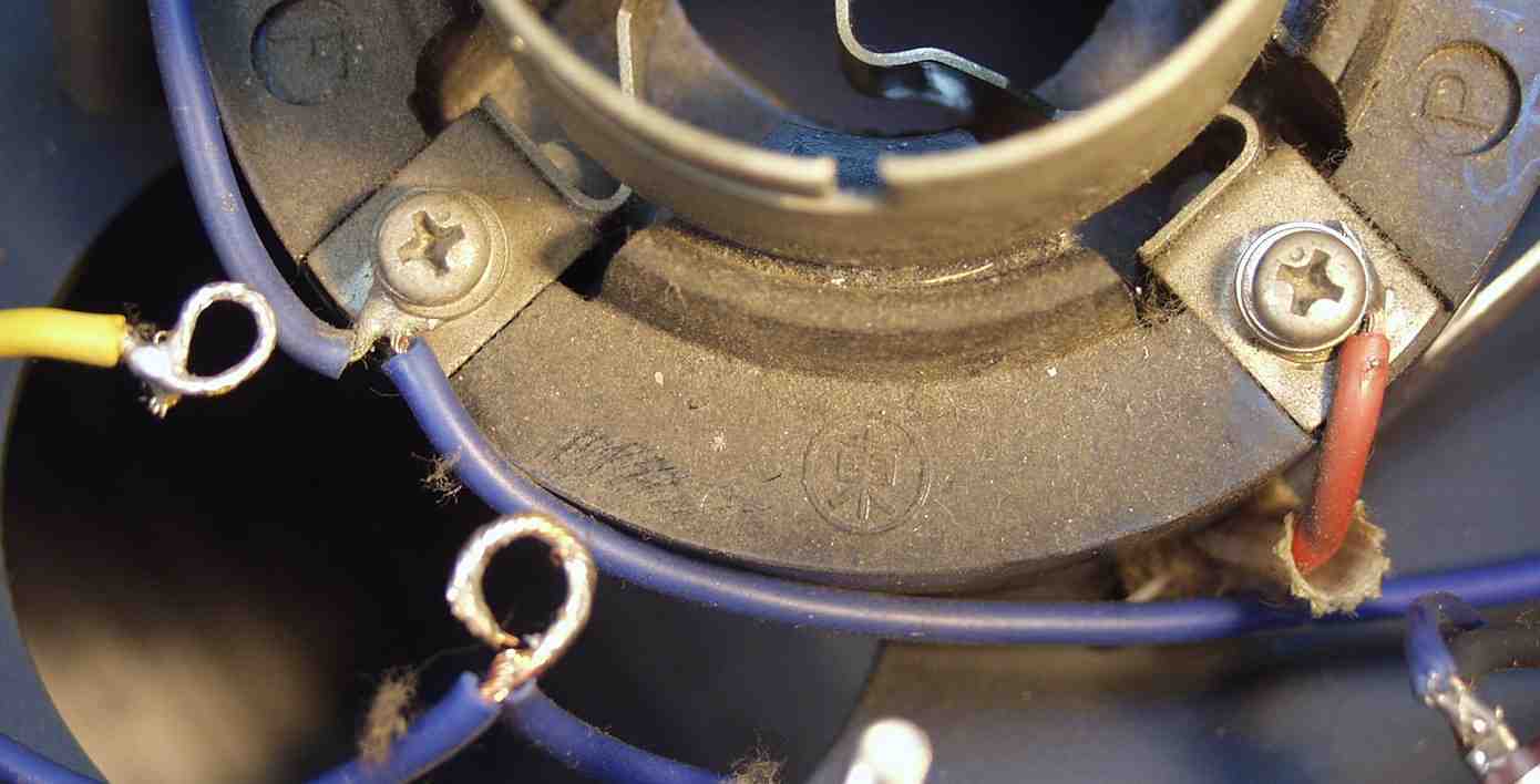 | CA.211ソケット修理前 配線は半田あげしてビス止め!、これでは熱で緩む 自作品では、完成すれば終わり、しかし製造メ−カ−はそれからが本当の仕事です 安全、経年変化、複合要素による発振等々の配慮 |
