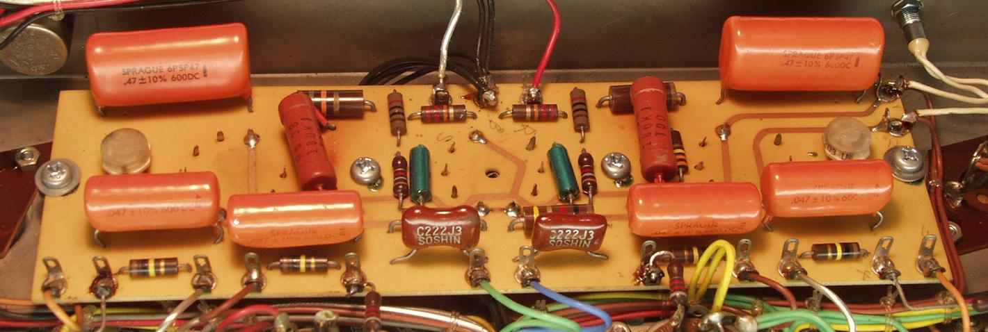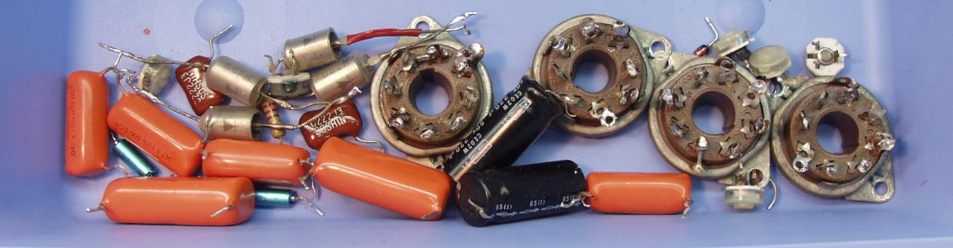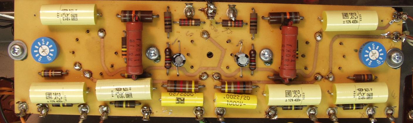 | A−3. 修理前 古いフィルムコンデンサー → これらはメタライズド・フィルムコンデンサーに交換 |