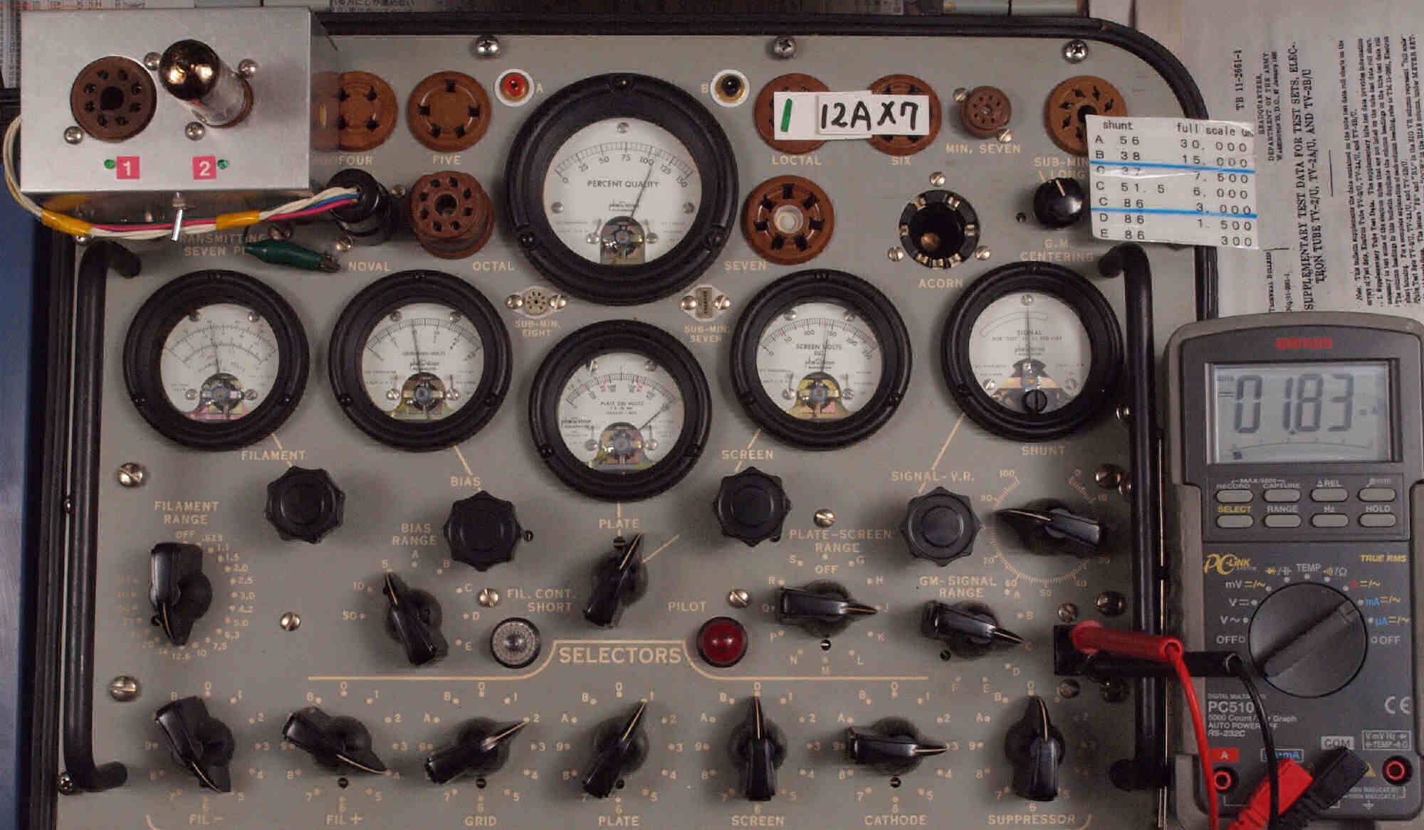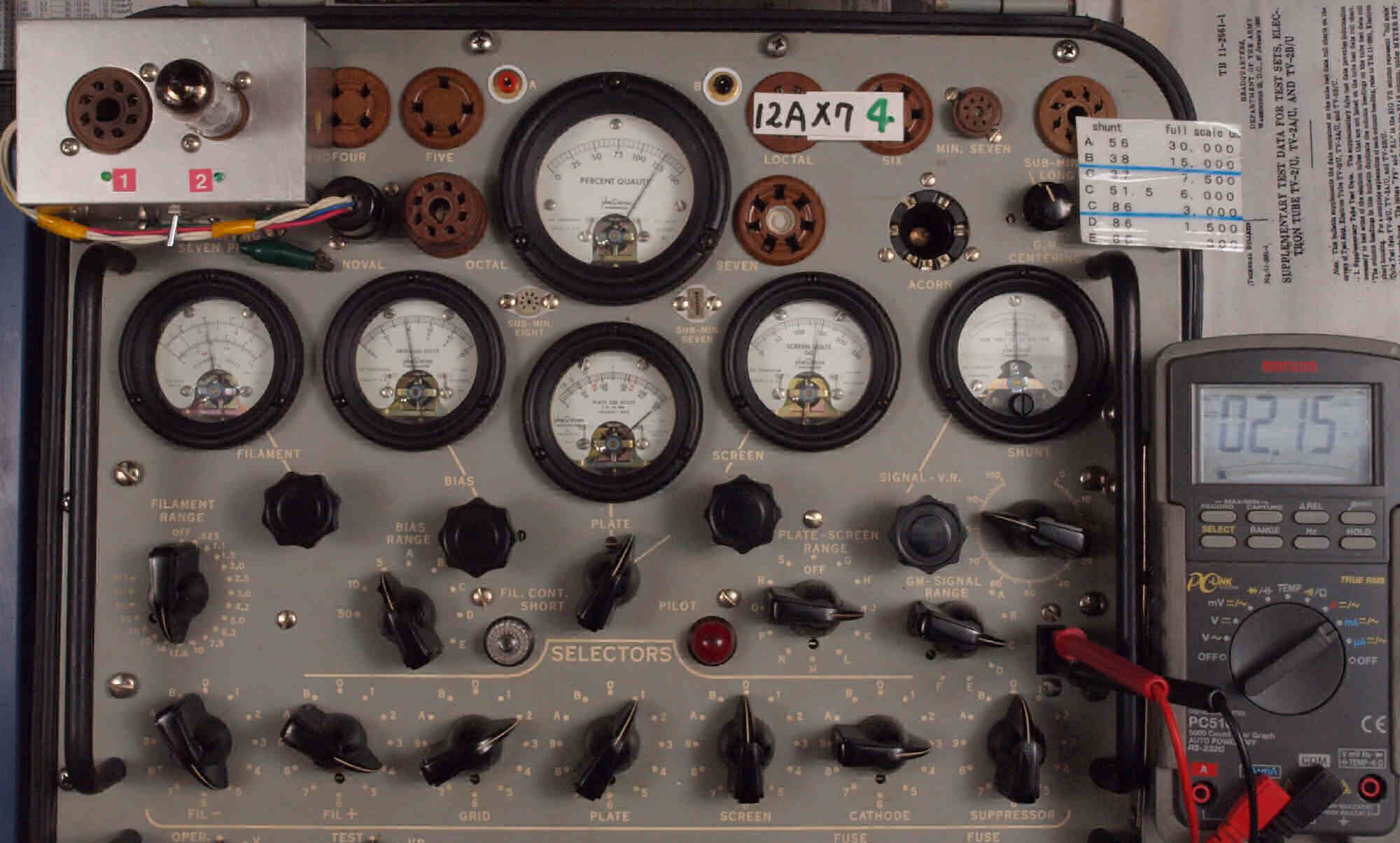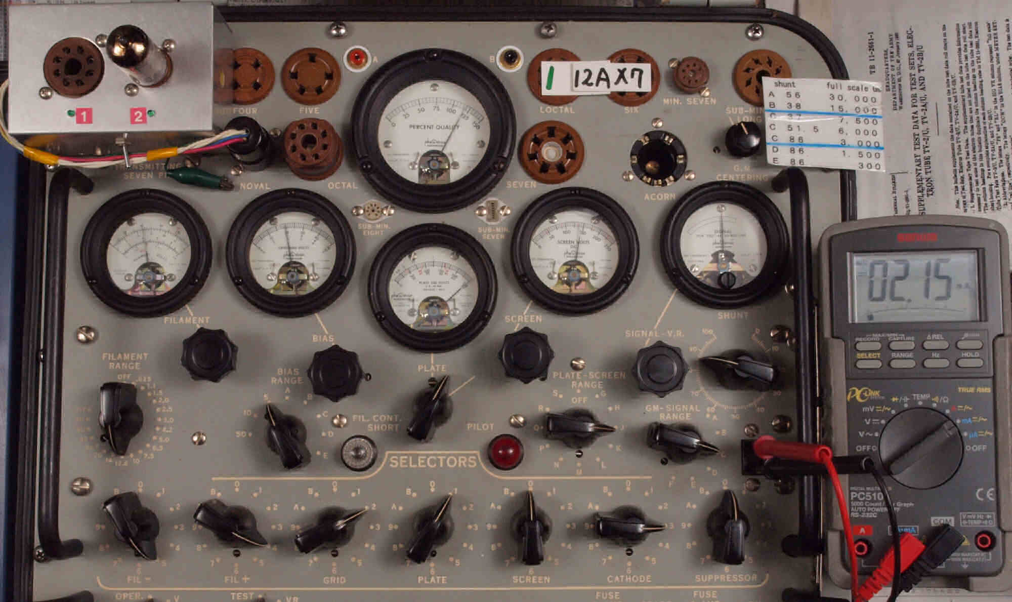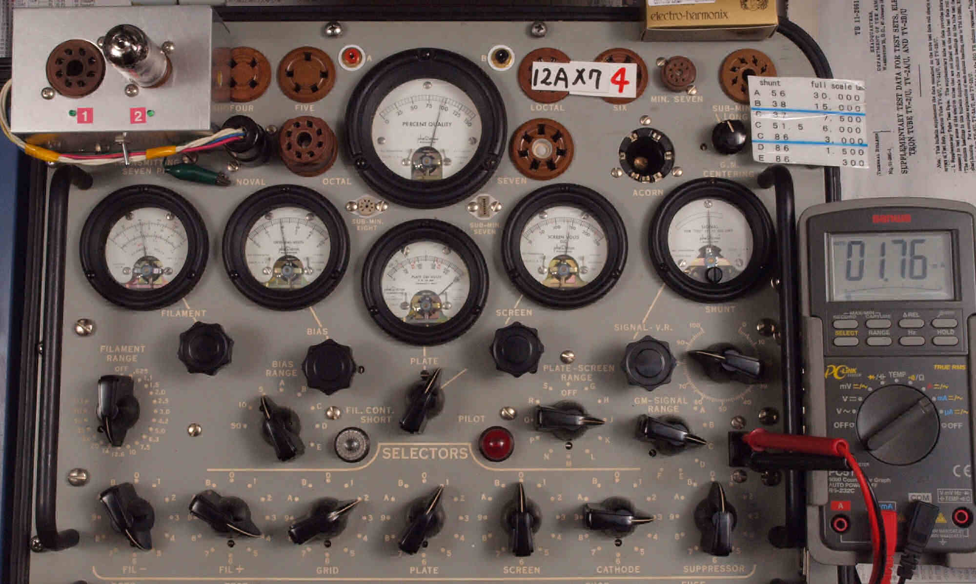 U. TubeTester HickokTV−2B/Uによる付属真空管測定