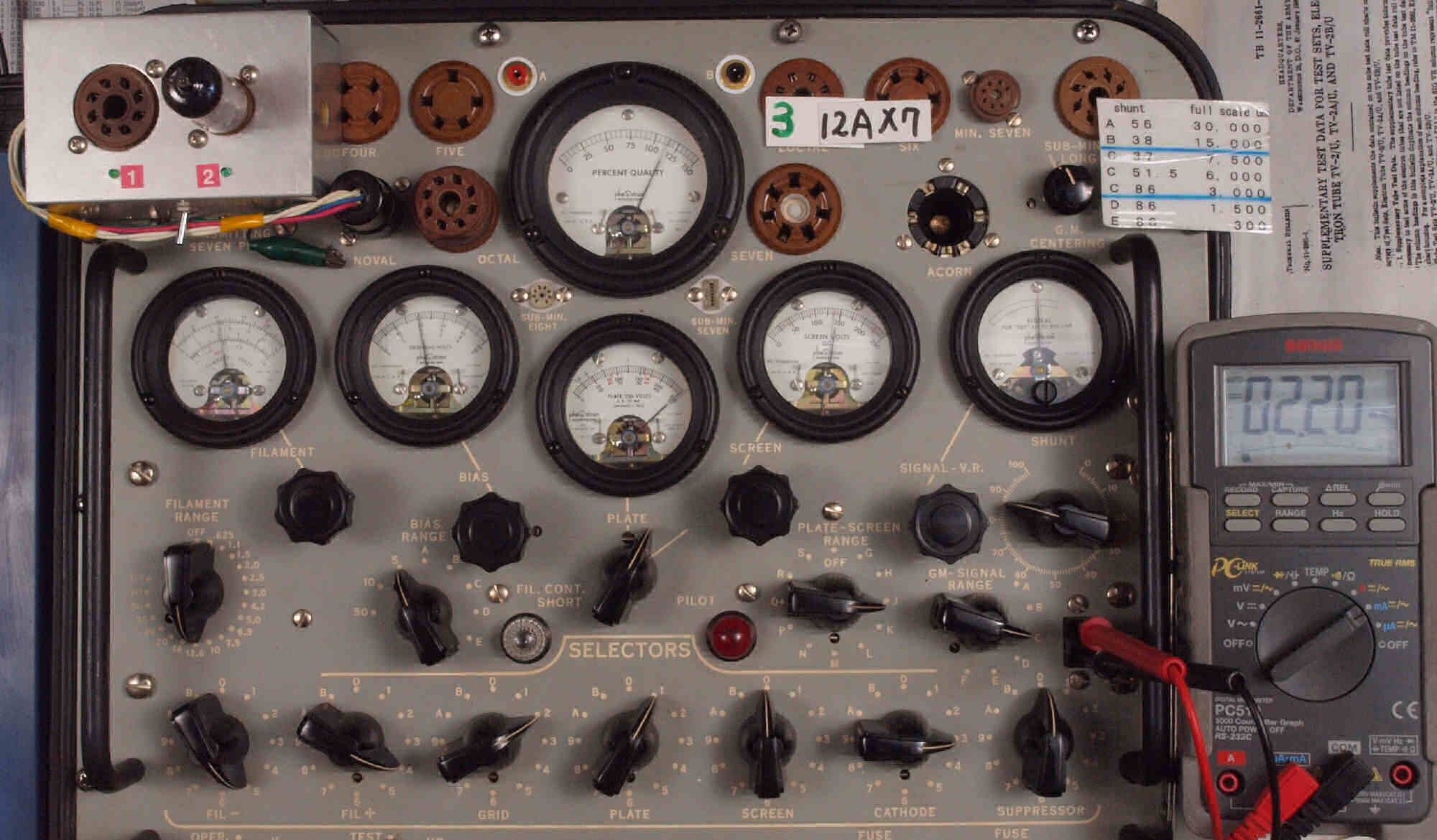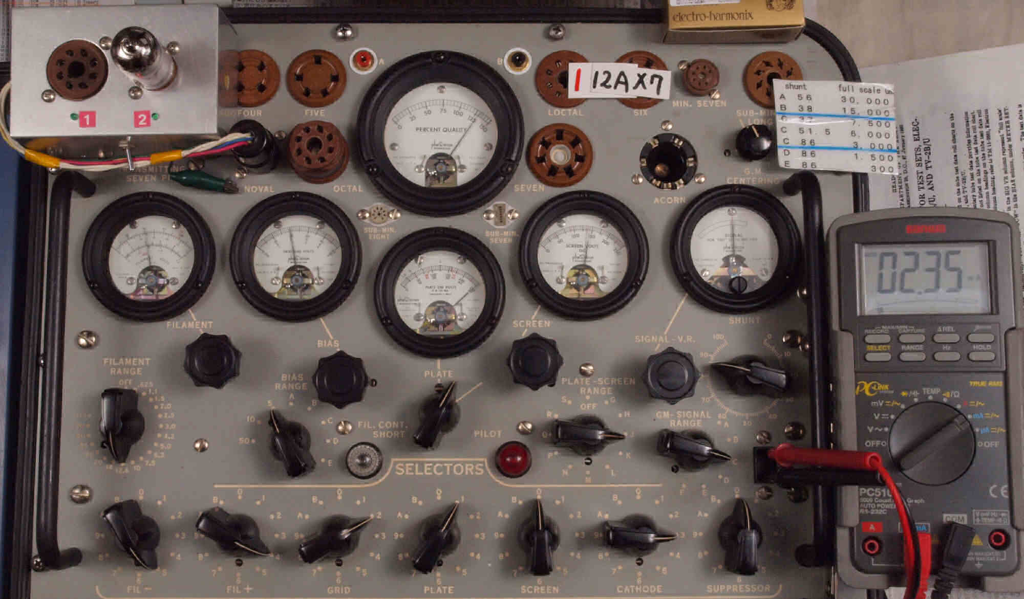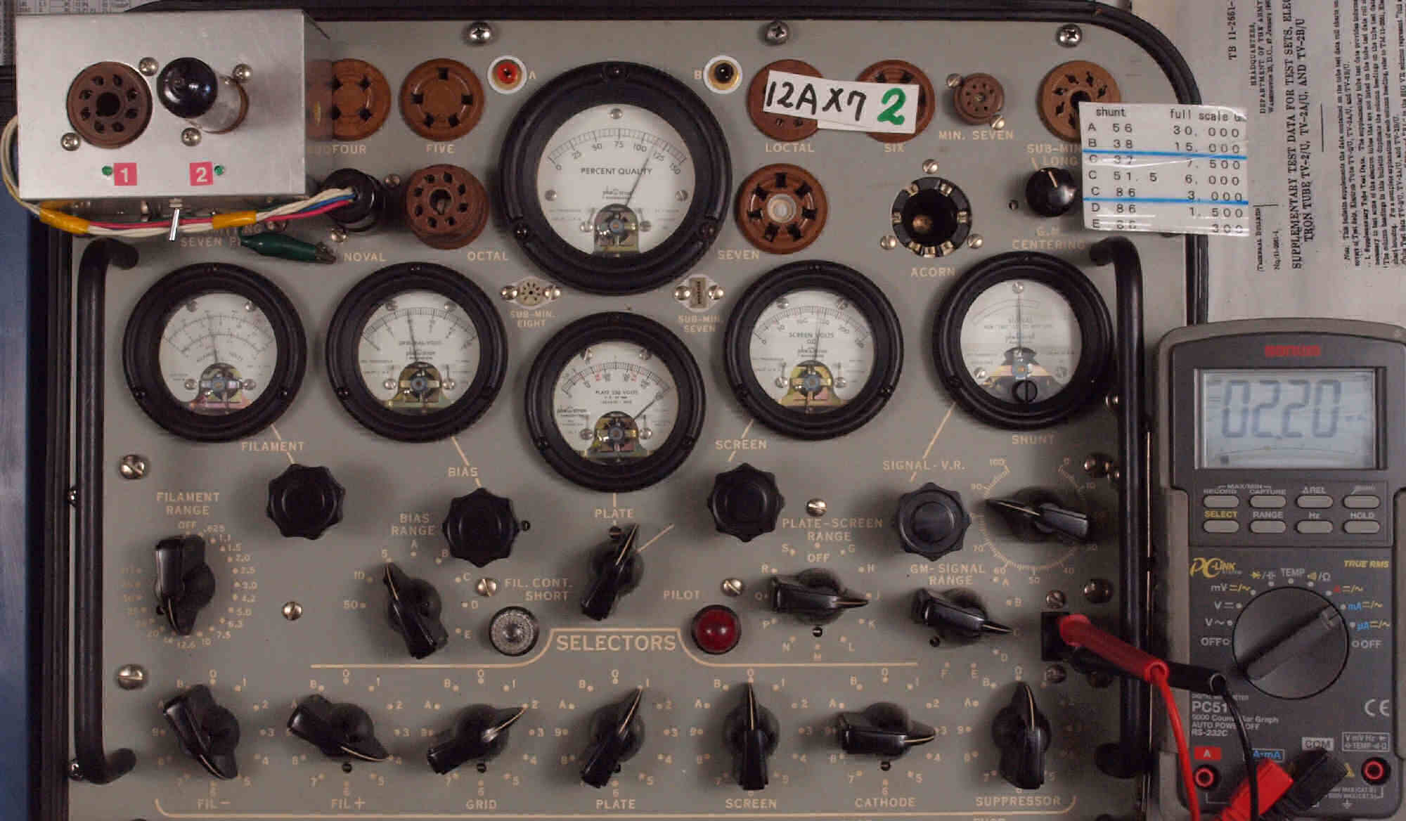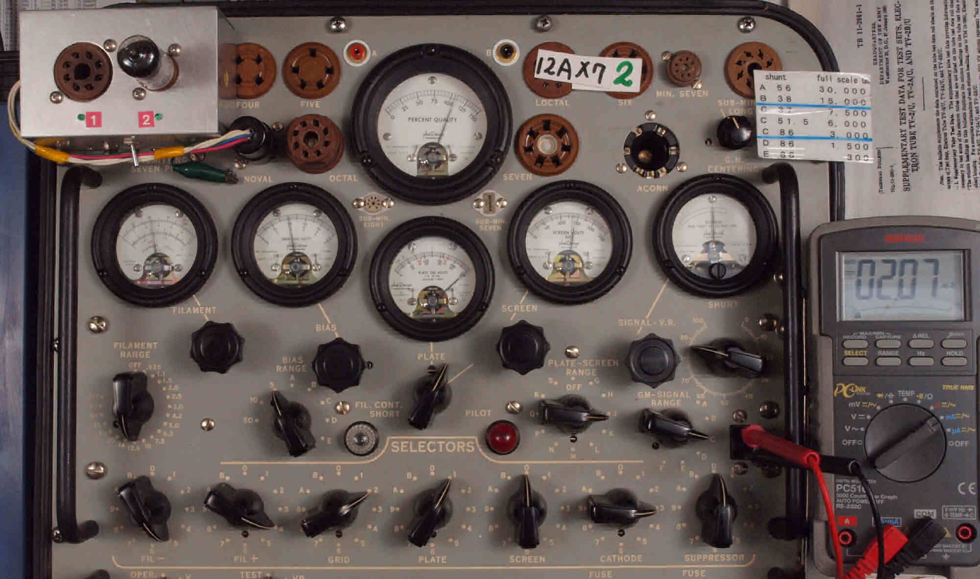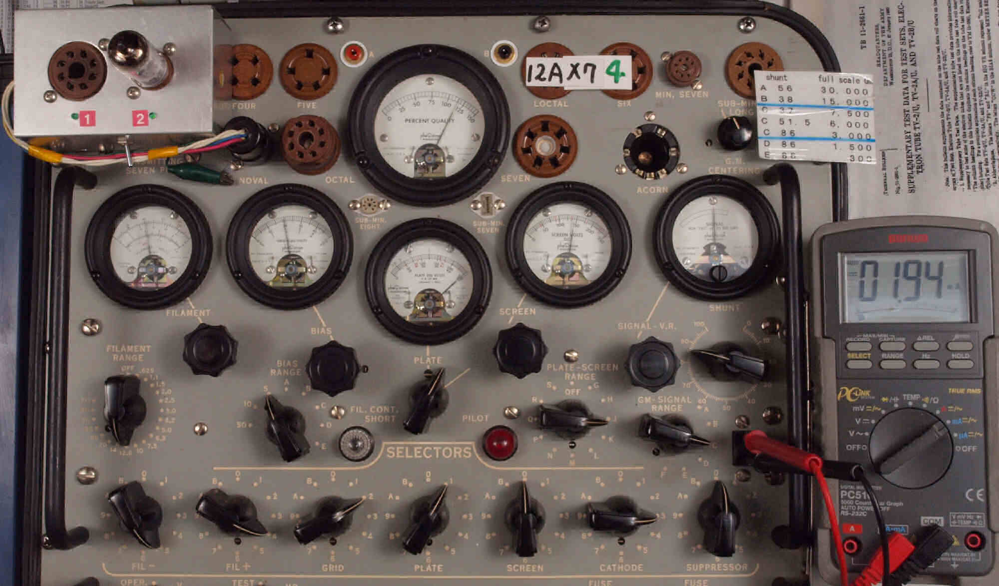 U. TubeTester HickokTV−2B/Uによる付属真空管測定