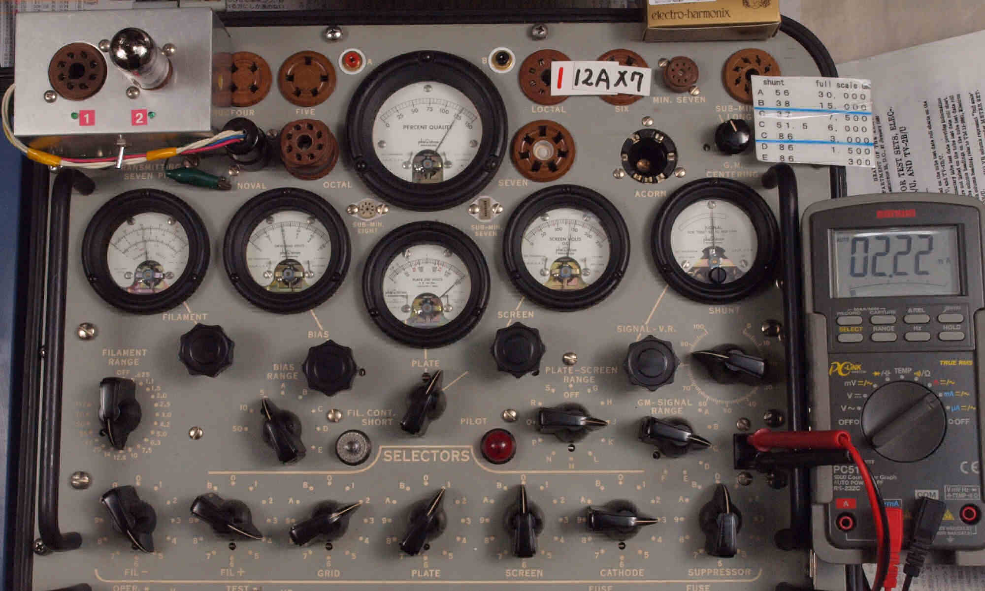 | V422. 購入2本目 12AX7 ユニット2。 Gm測定=2400μmho、IP=2.21mA。 |