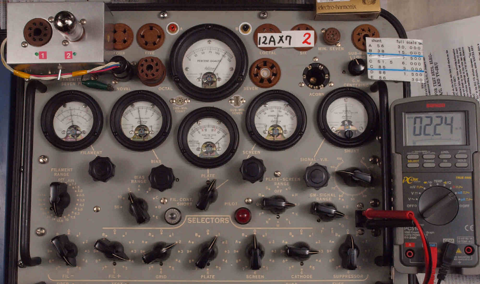 | V432. 購入3本目 12AX7 ユニット2。 Gm測定=2300μmho、IP=2.04mA。 |