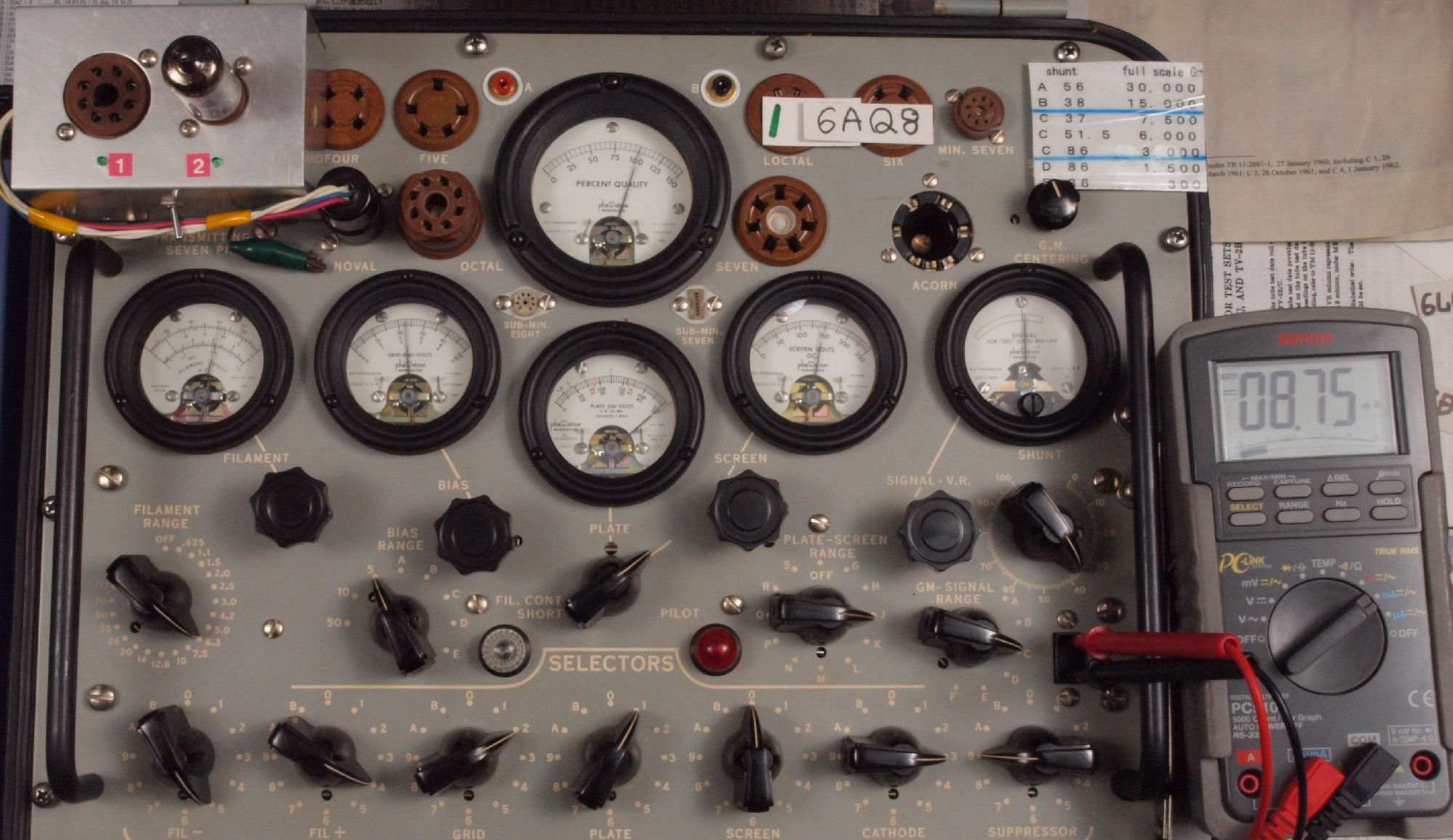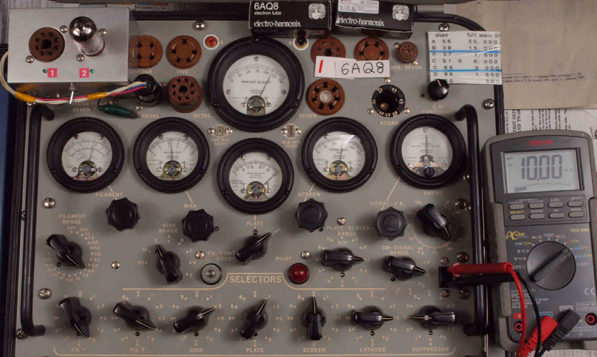 | U312. 付属1本目「6AQ8」ユニット2。 Gm測定=5000μmho、IP=8.75mA。 |