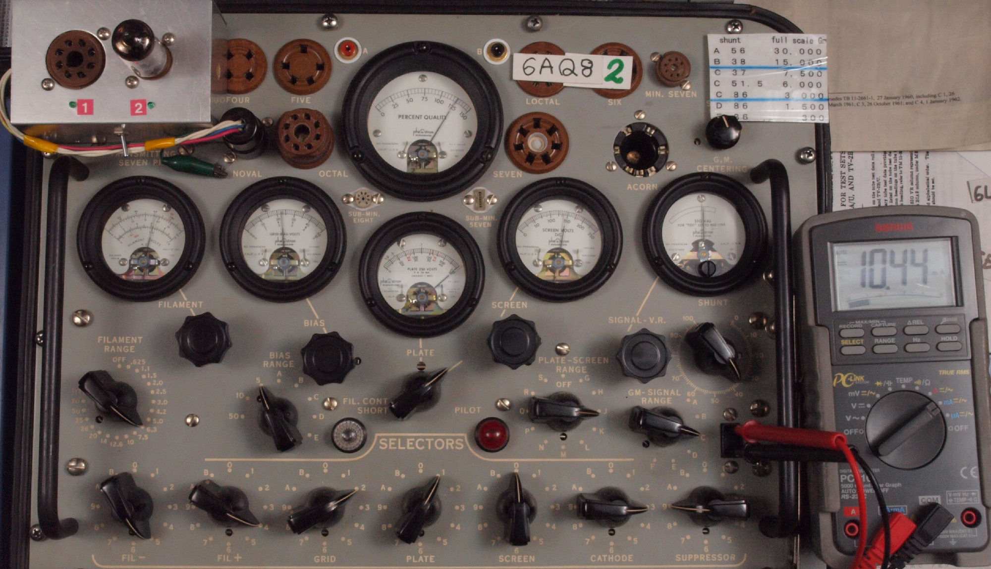 | U322. 付属2本目「6AQ8」ユニット2。 Gm測定=6250μmho、IP=10.44mA。 |
