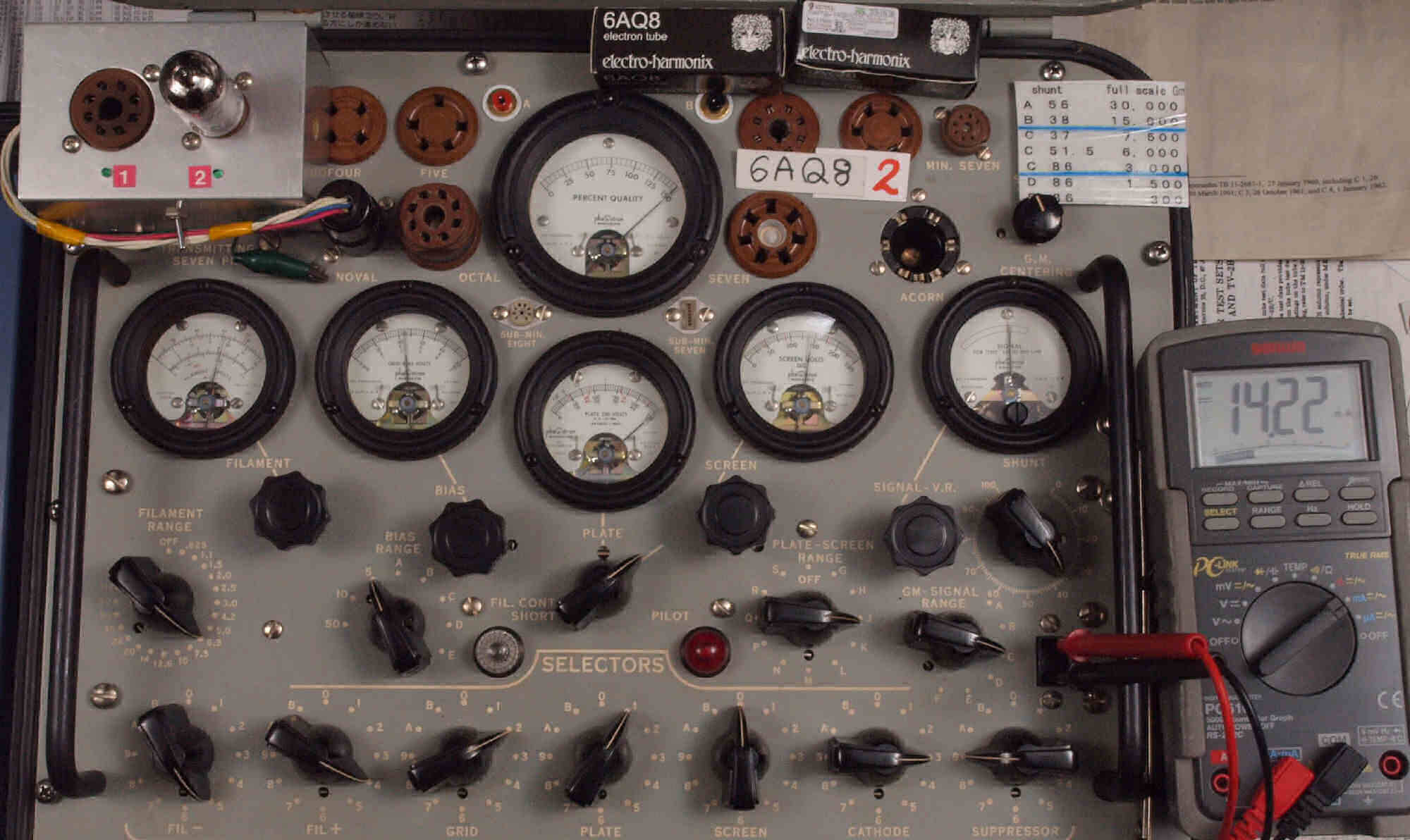 | V322. 購入2本目「6AQ8」ユニット2。 Gm測定=7500μmho、IP=14.22mA。 |