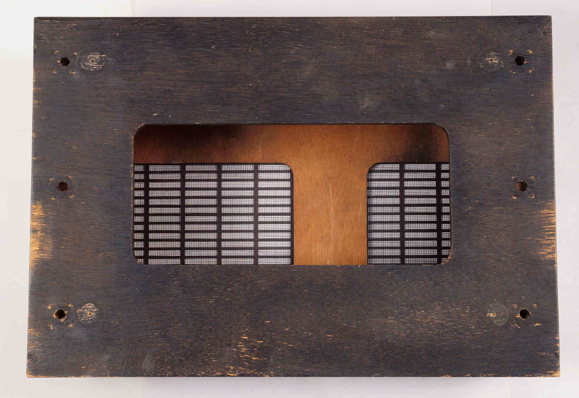 | K. 裏パネルと木製ケース修理。 K01. 修理前 裏パネル。 |