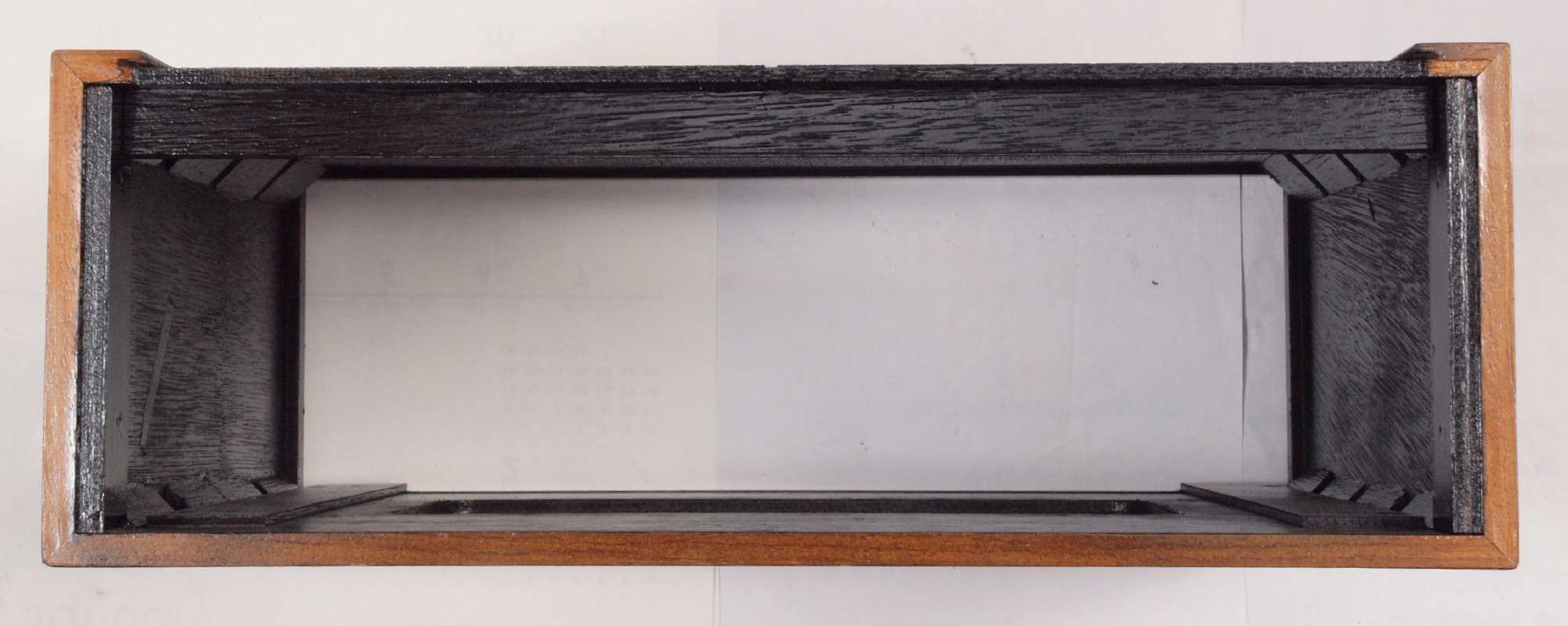 | K23. 修理(塗装)中 ベニヤの接着材が劣化しているので、黒色ラッカーを吹き付ける。 |