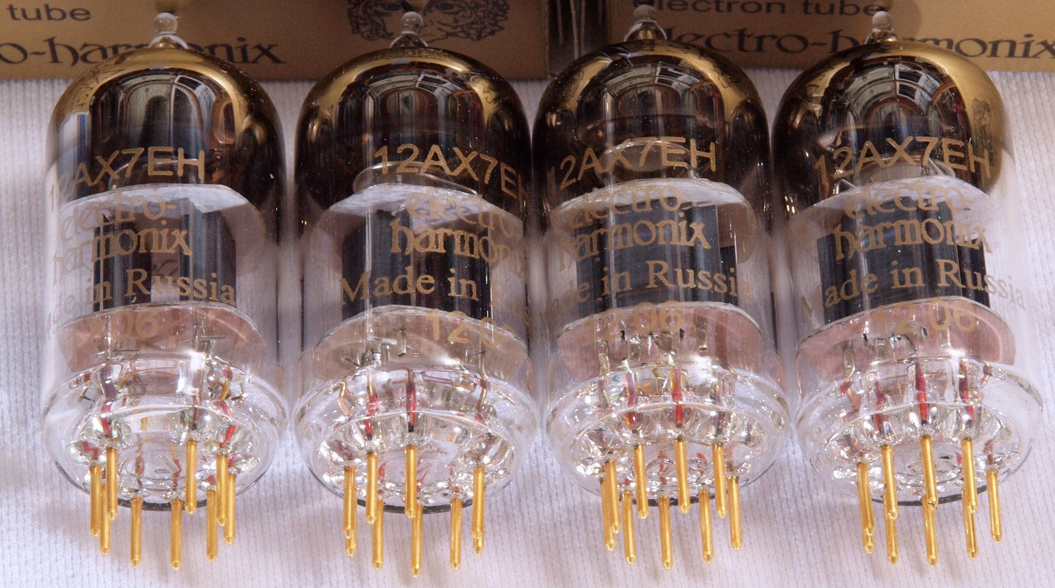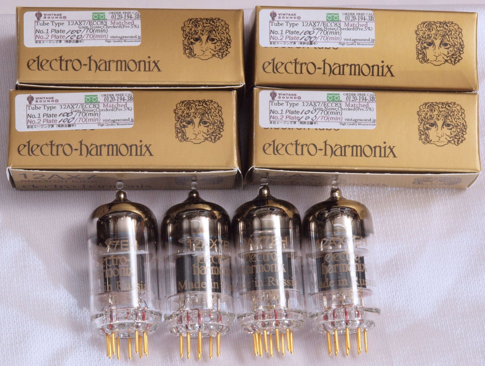 購入真空管electro−harmonix 12AX7 EH ゴールド。 左から1本目.2本目.3本目.4本目