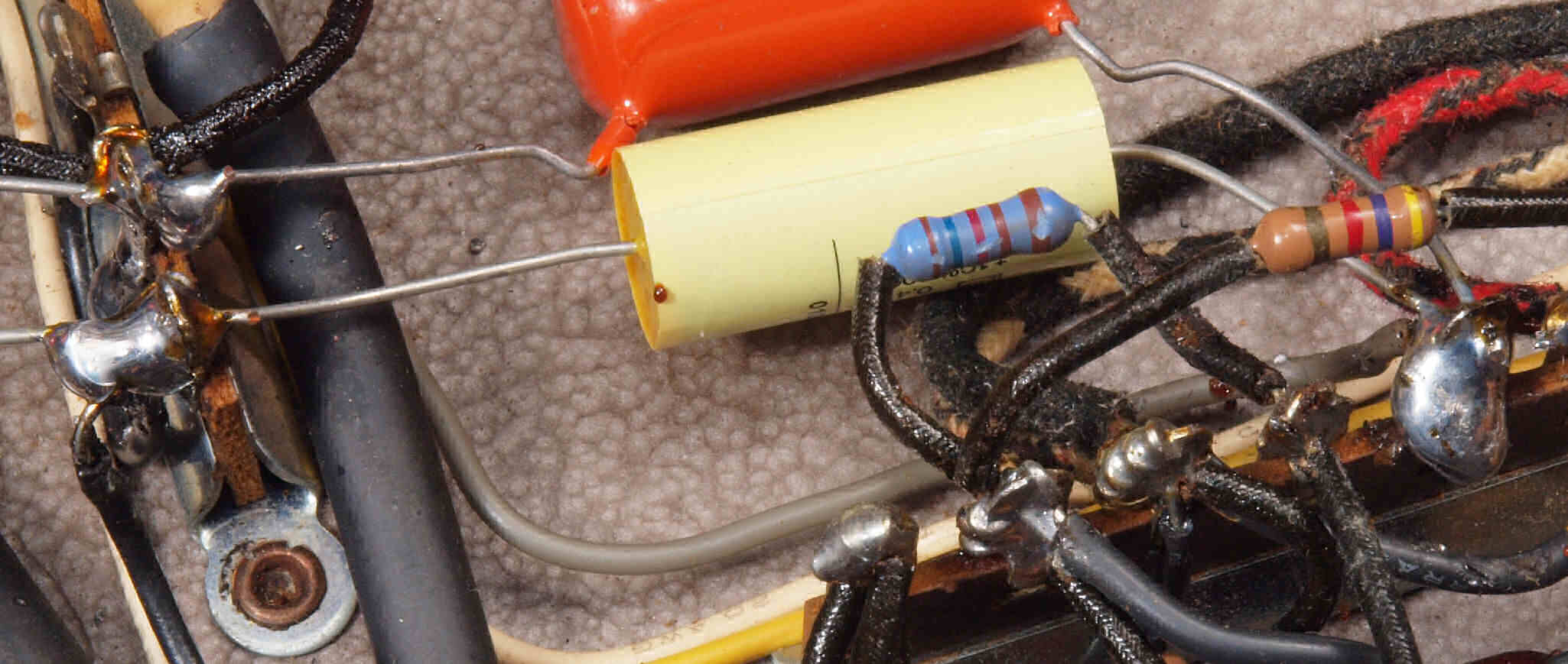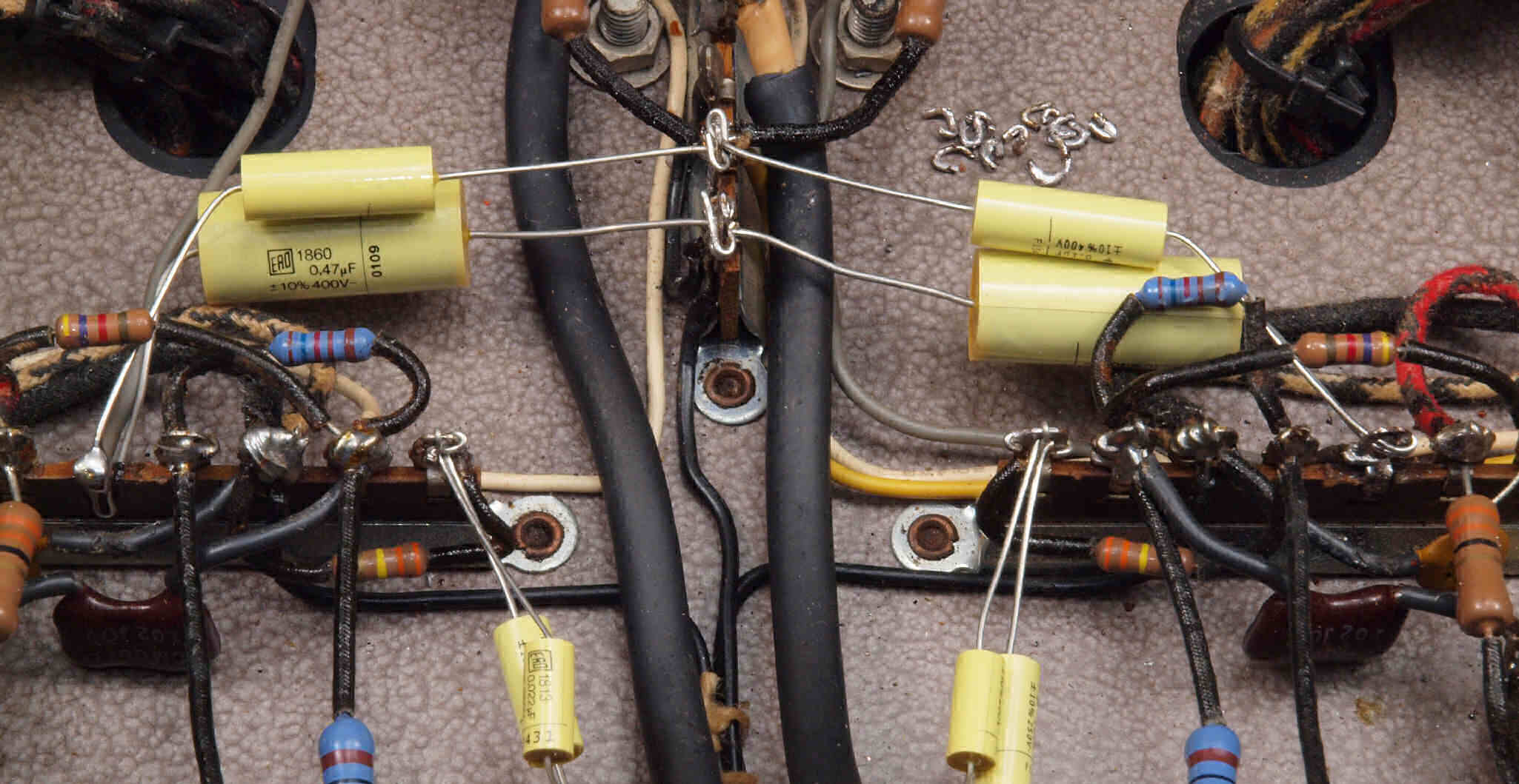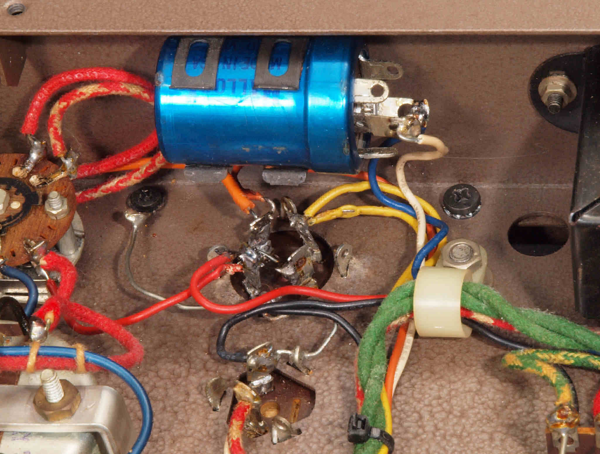 A34. 点検中 交換したフイルムコンデンサーの大きな半田付け。これが本当の大イモ半田??