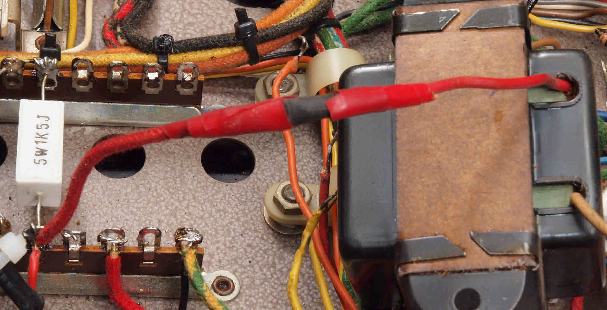 C20. 修理中 チュークトランスの引出し線の延長。 懐かしいビニールテープの絶縁巻!現在は熱収縮チューブが全盛。