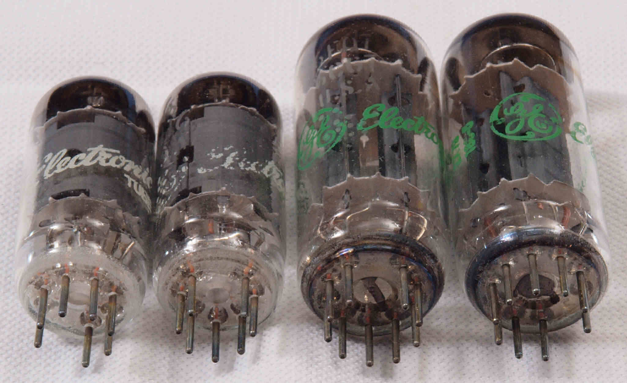 A72. 点検中 6BH6と6FQ7(6CG7)。 通電時間に応じてステム部が黒くなる。