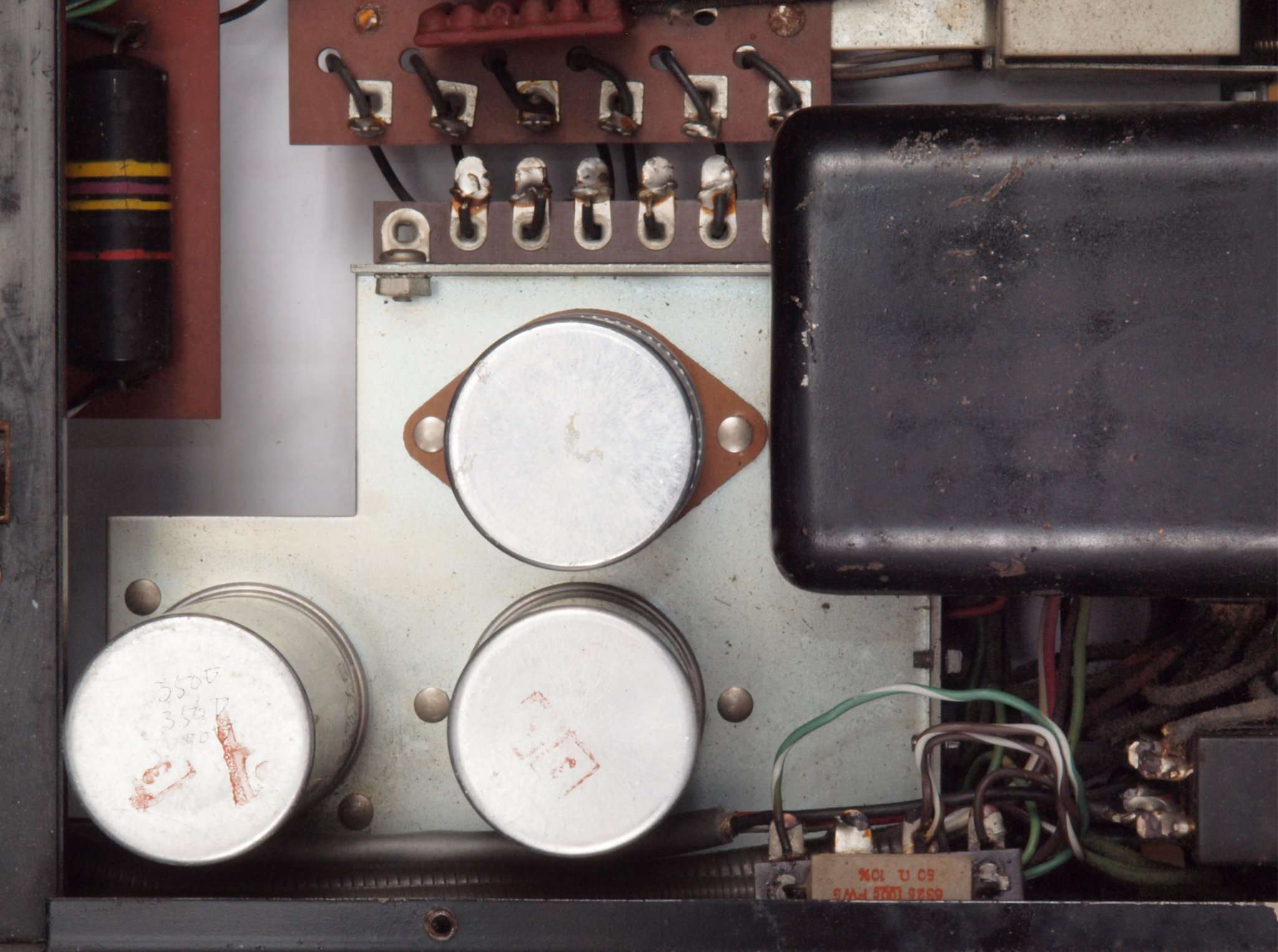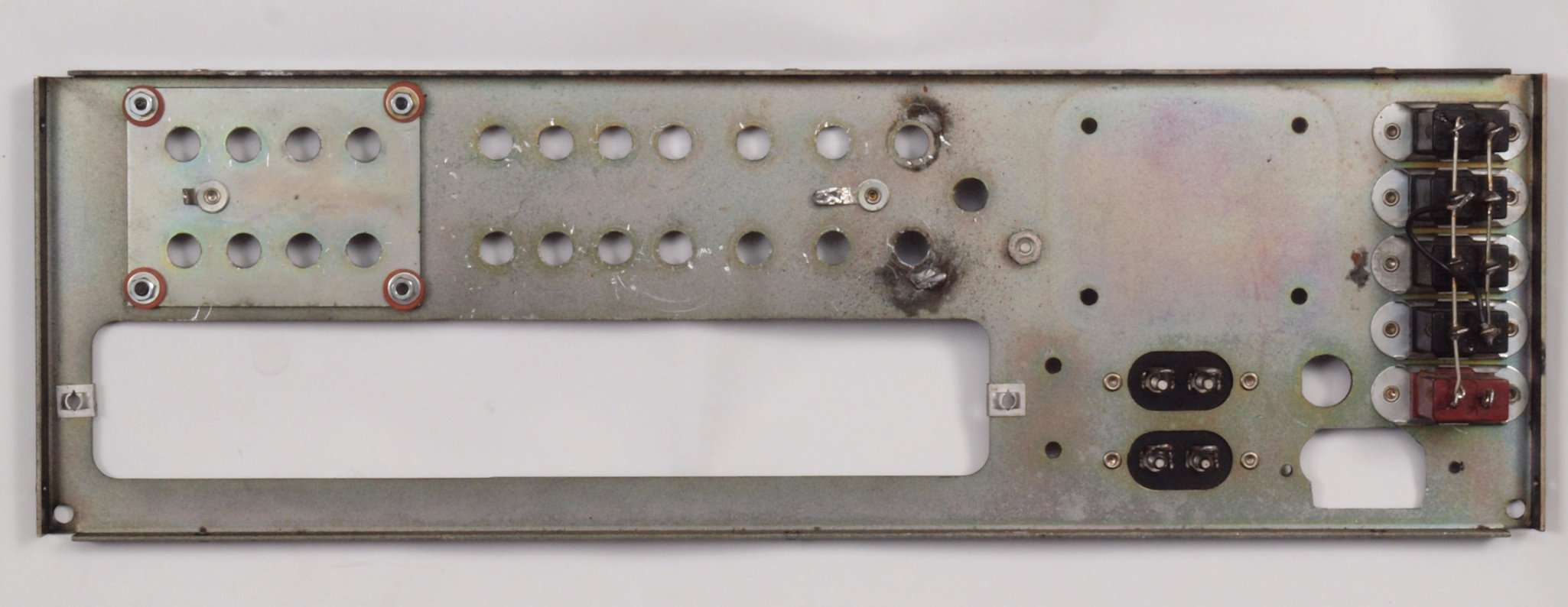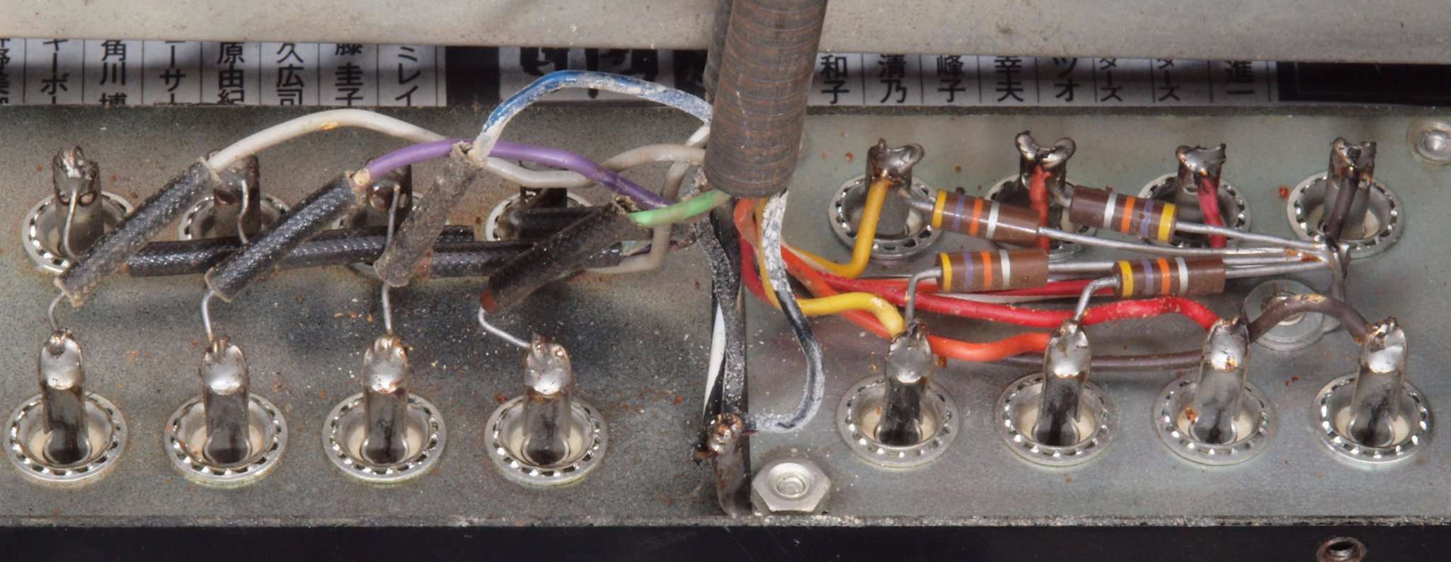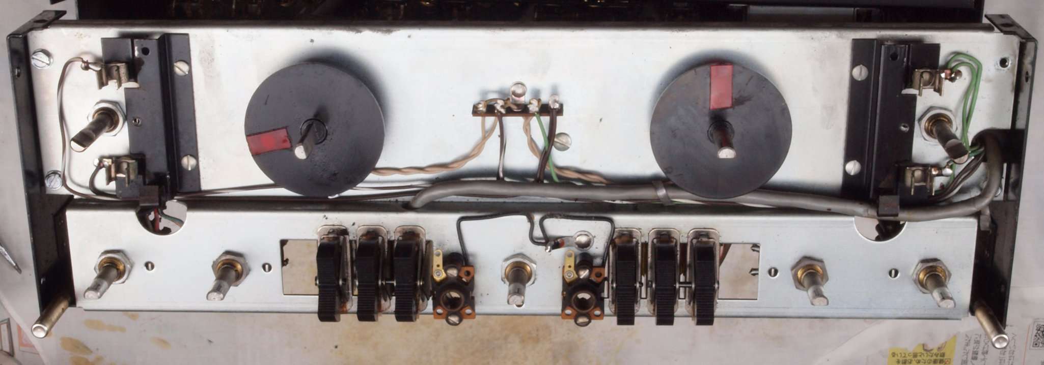 | CF4. 修理後 後パネル裏加工終了。 トランス取り付け、RCA端子とアース線取り付け、負荷抵抗取り付け。 | ||||||||||||||||||||||||||||||