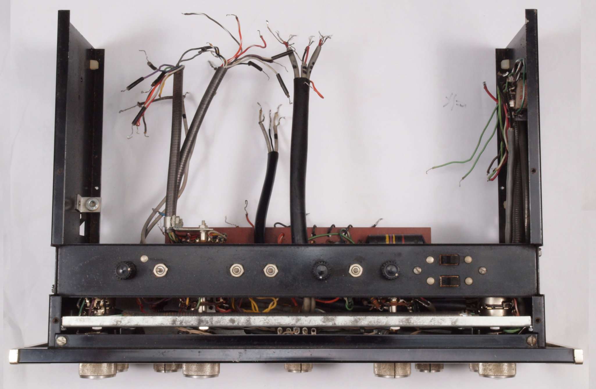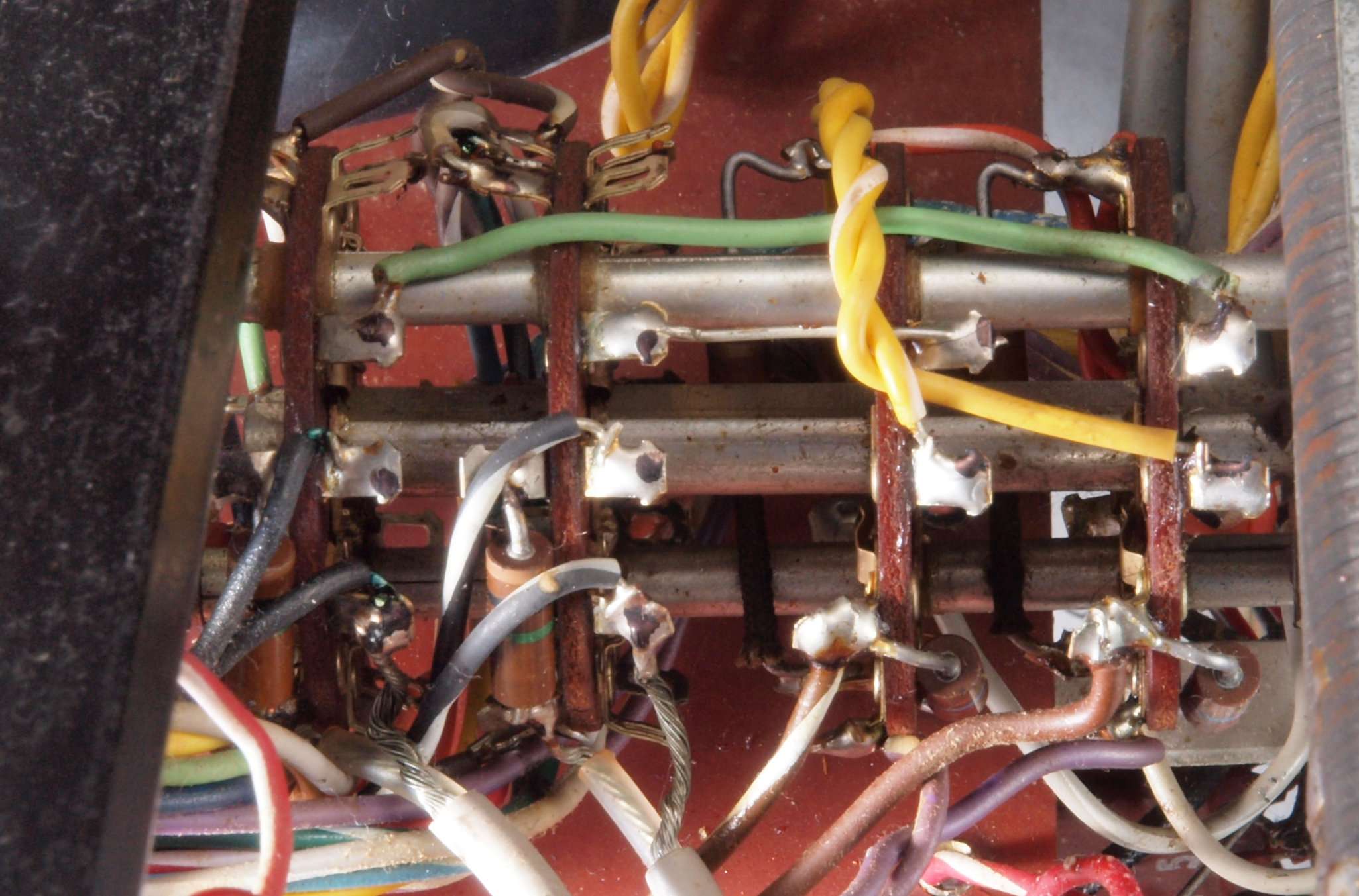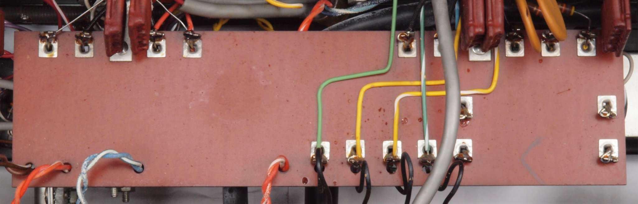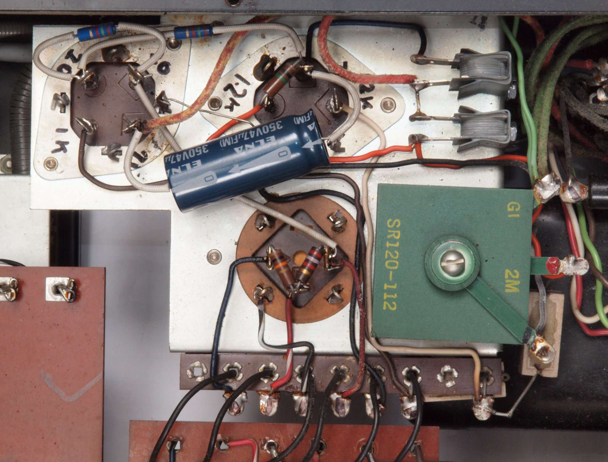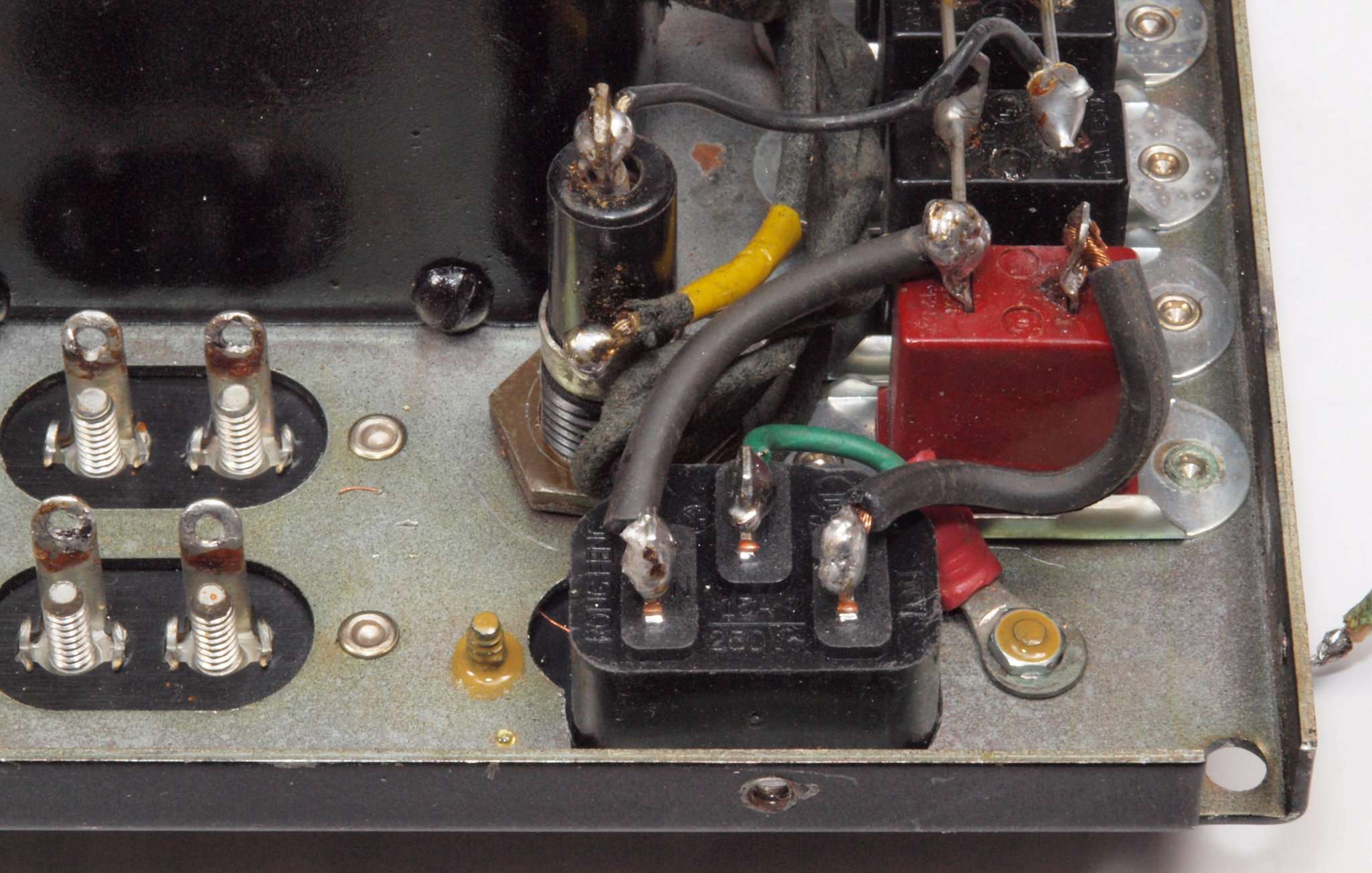 | CF4. 修理後 後パネル裏加工終了。 トランス取り付け、RCA端子とアース線取り付け、負荷抵抗取り付け。 | ||||||||||||||||||||||||||||||