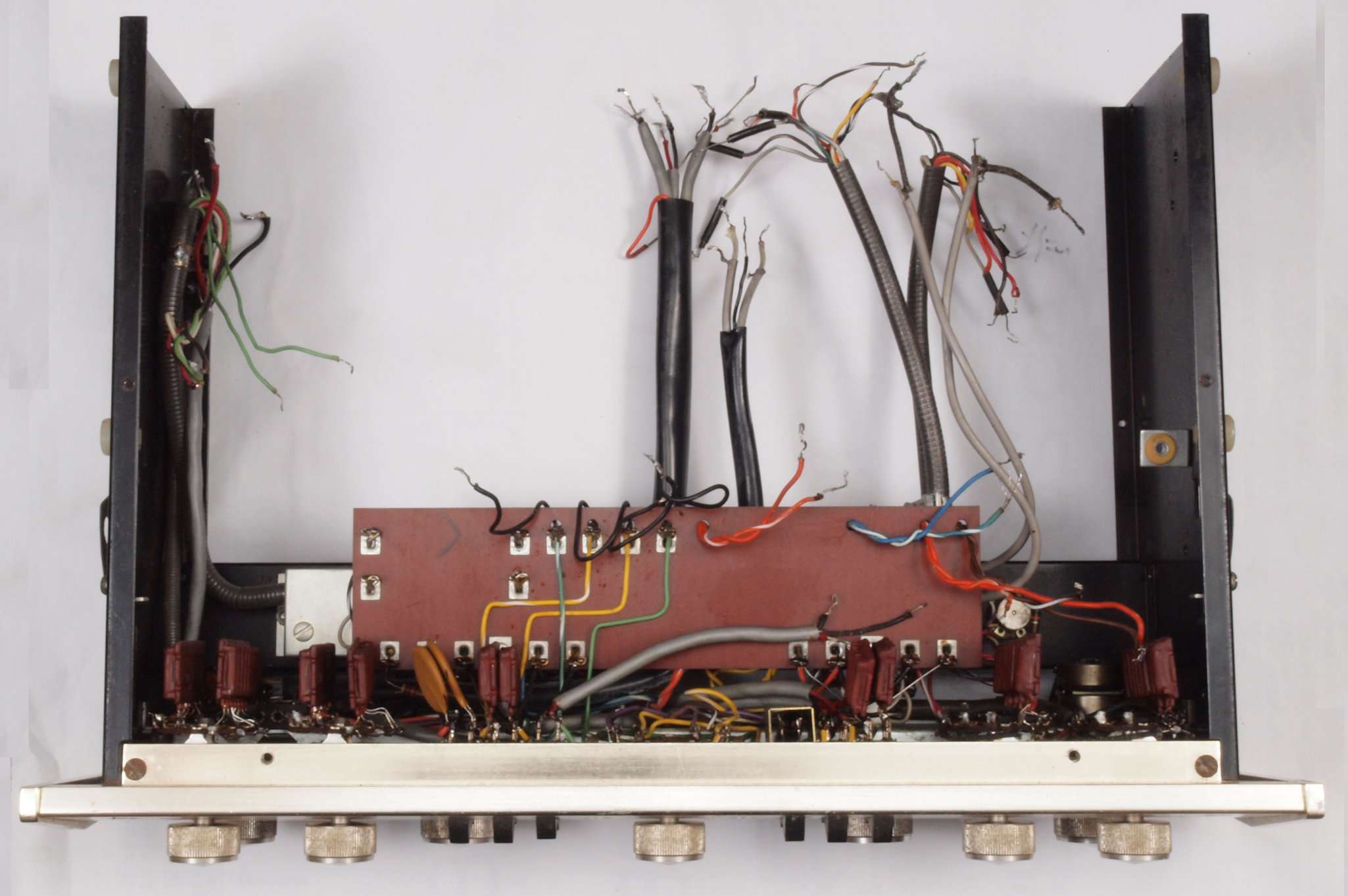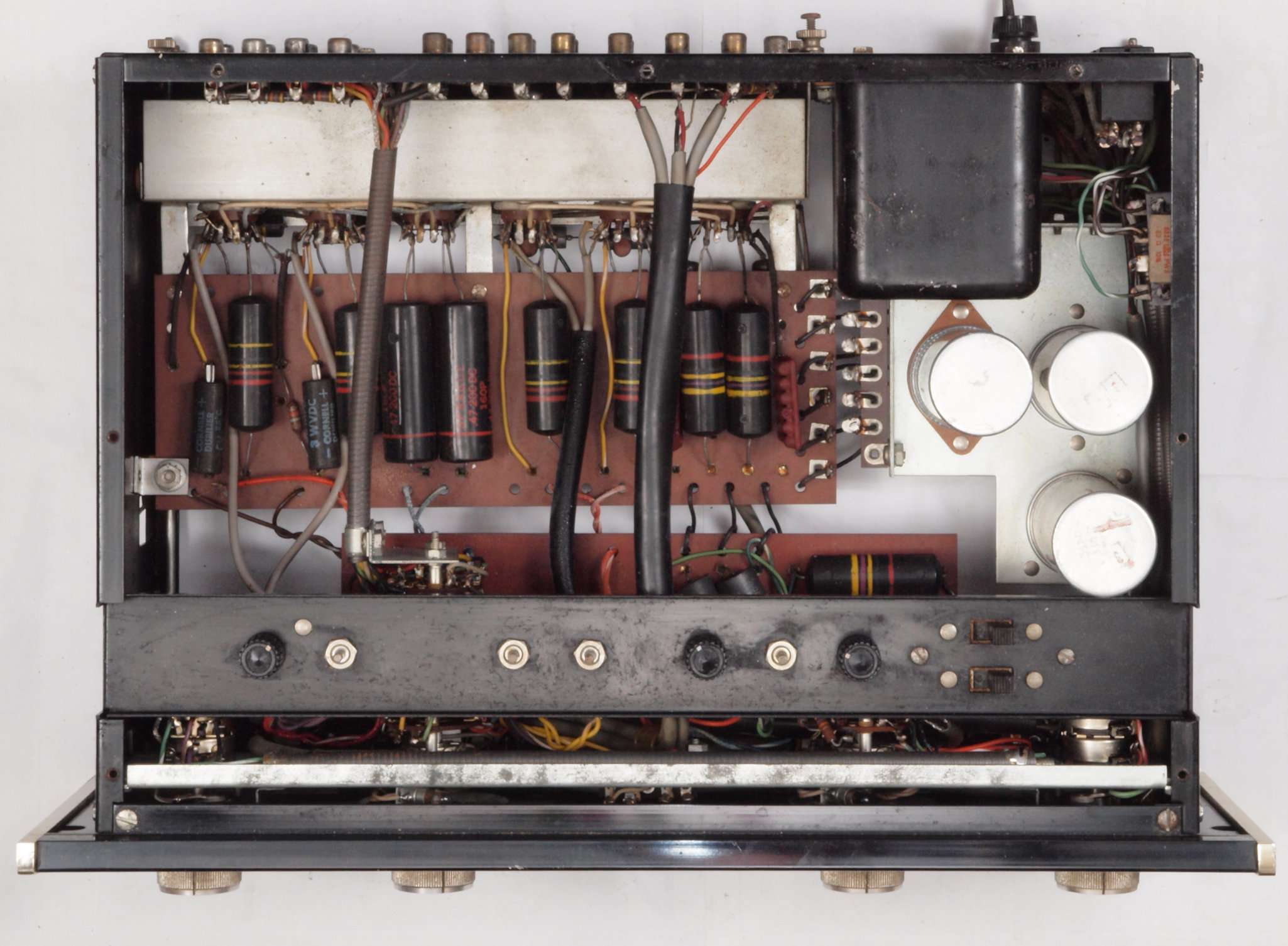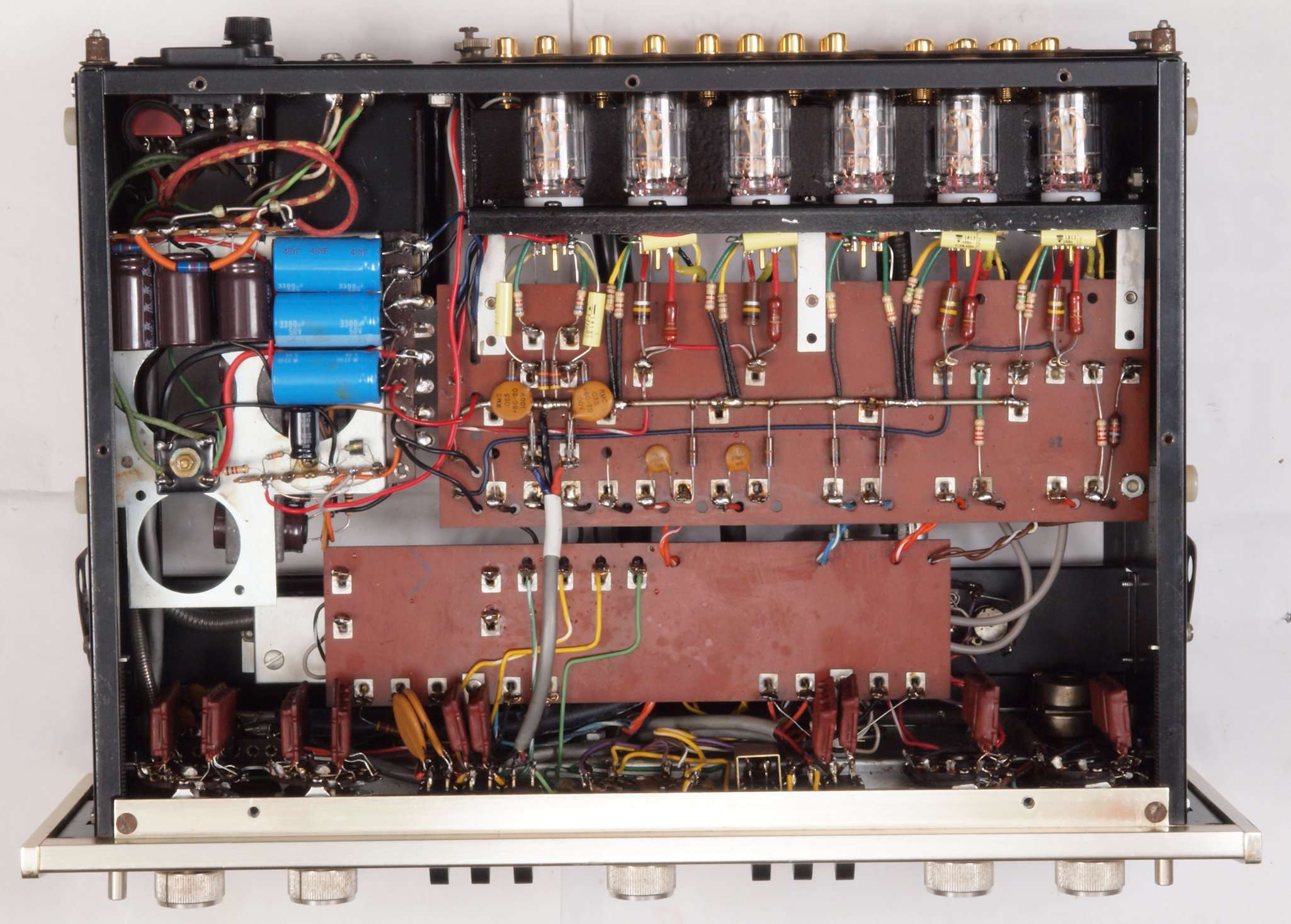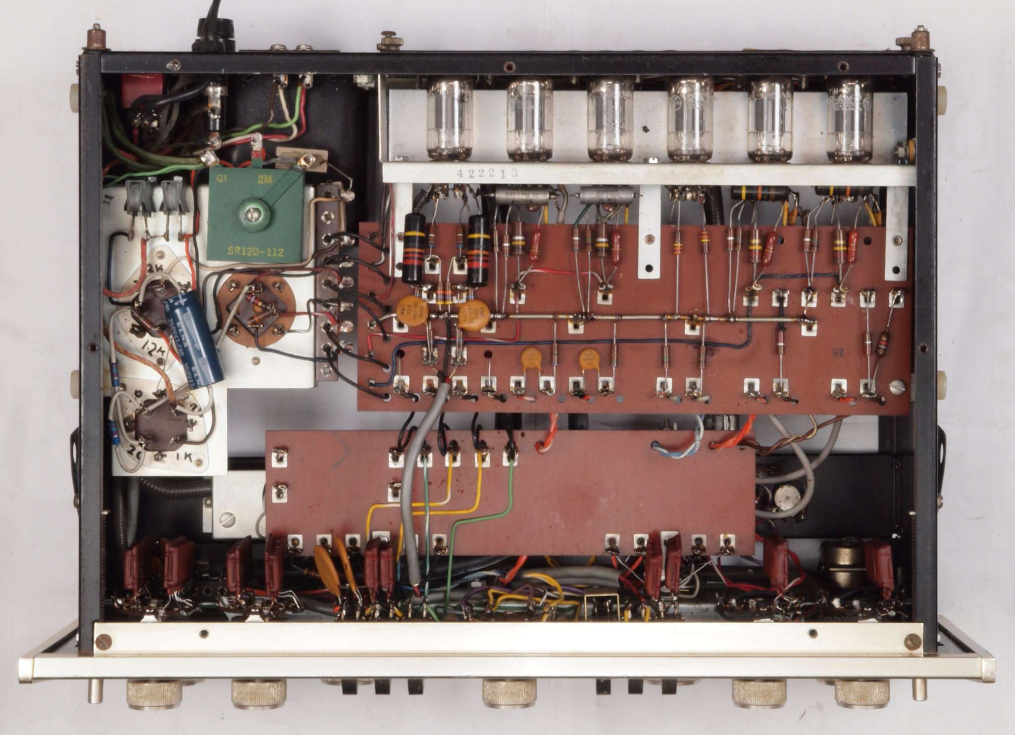 | CI2. 修理後 上から見る、上の出力RCA端子横に「交換電源投入時、プリ出力遅延回路組込。 | ||||||||||||||||||||||||||||||