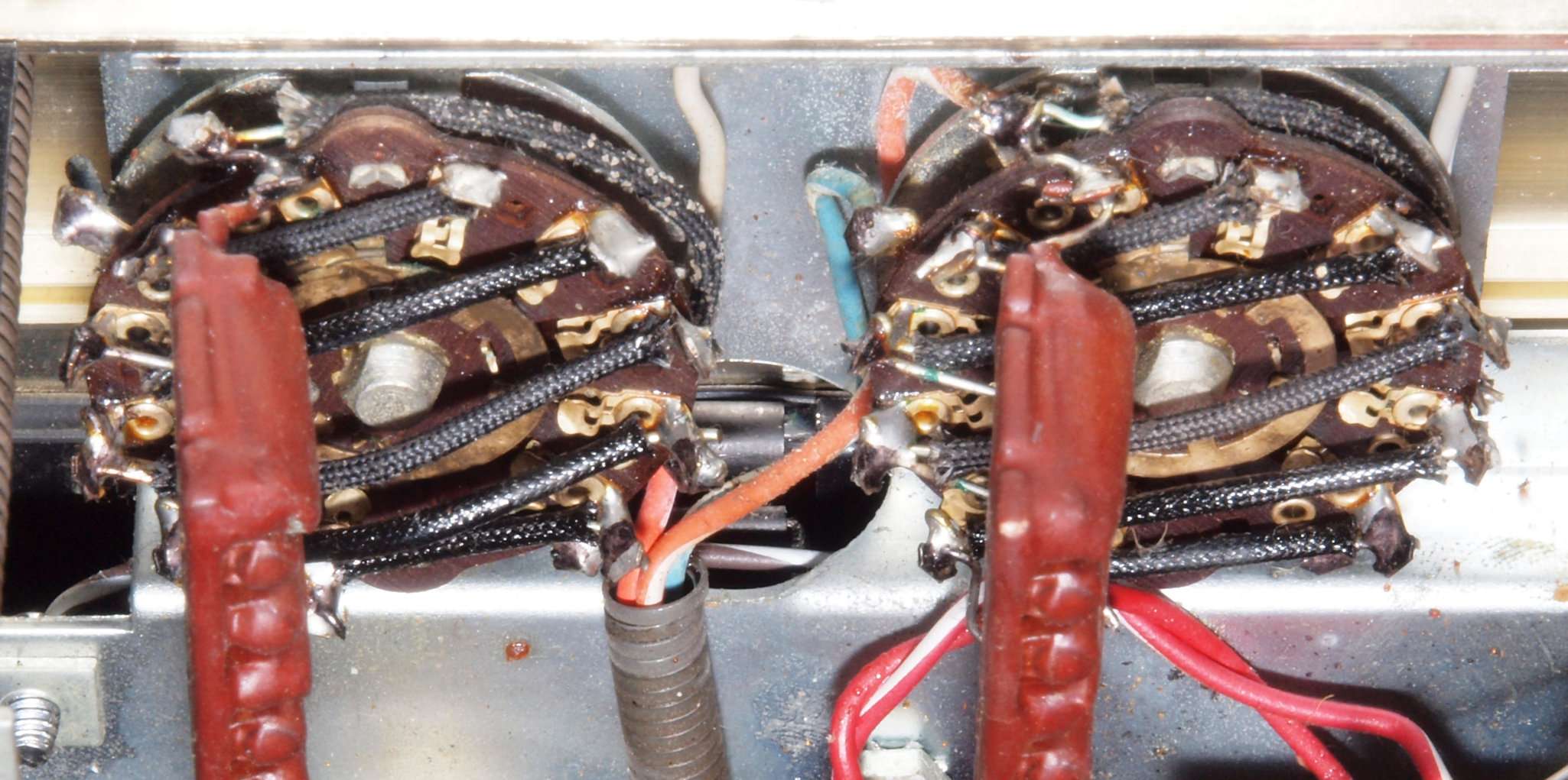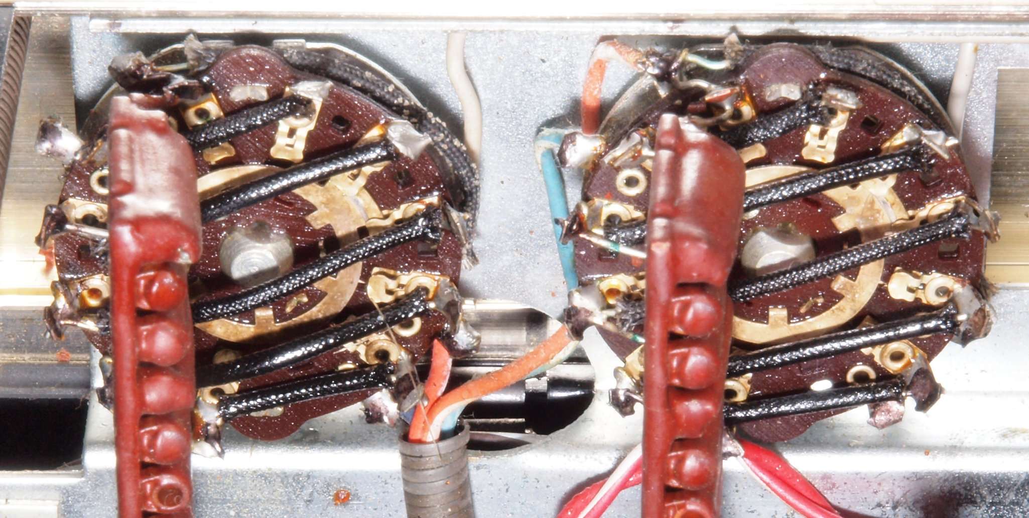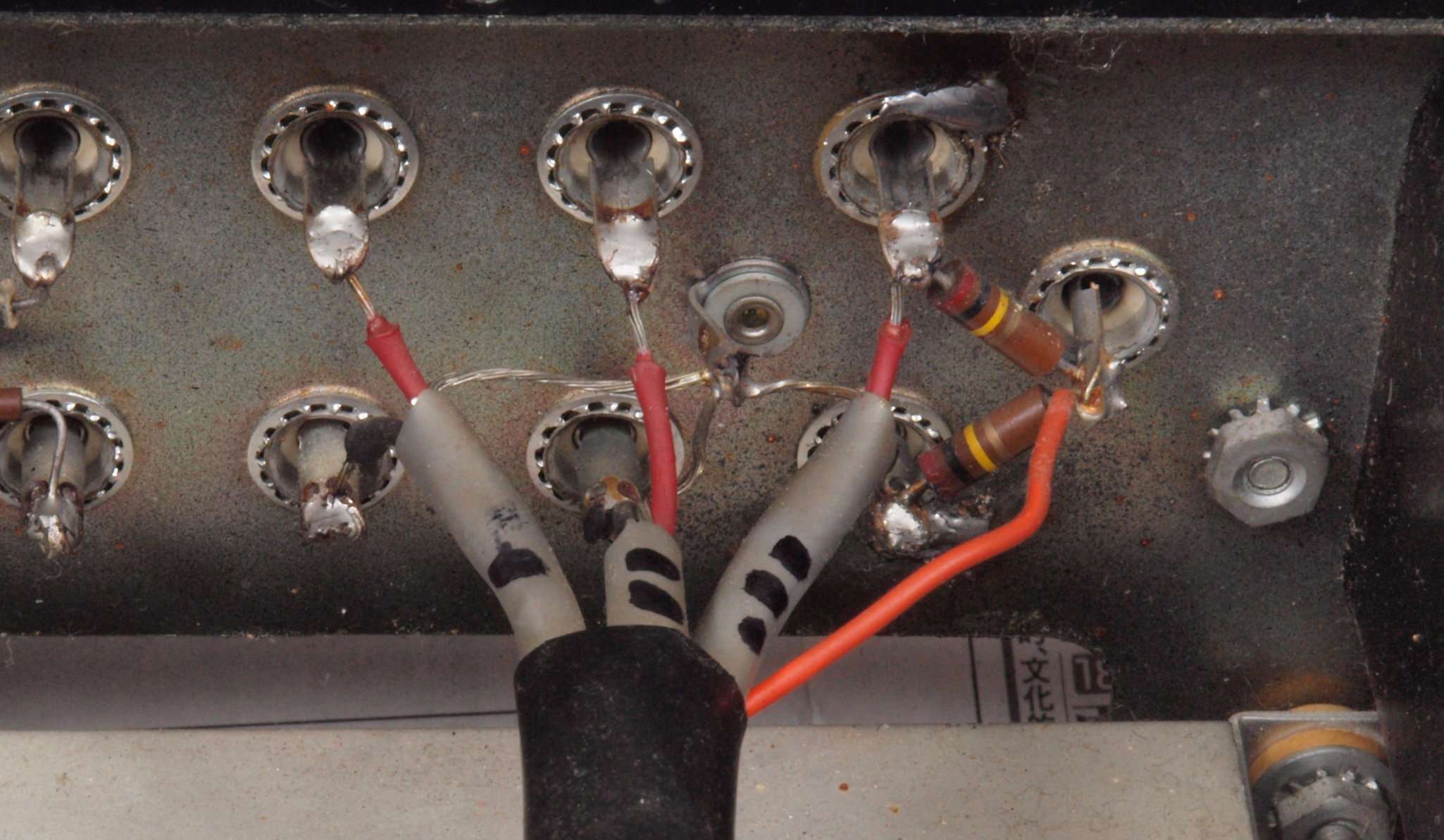 | C64. 修理後 出力RCA端子郡裏。 シールド線に熱收縮チューブを被せる、抵抗2個交換。 | ||||||||||||||||||||||||||||||