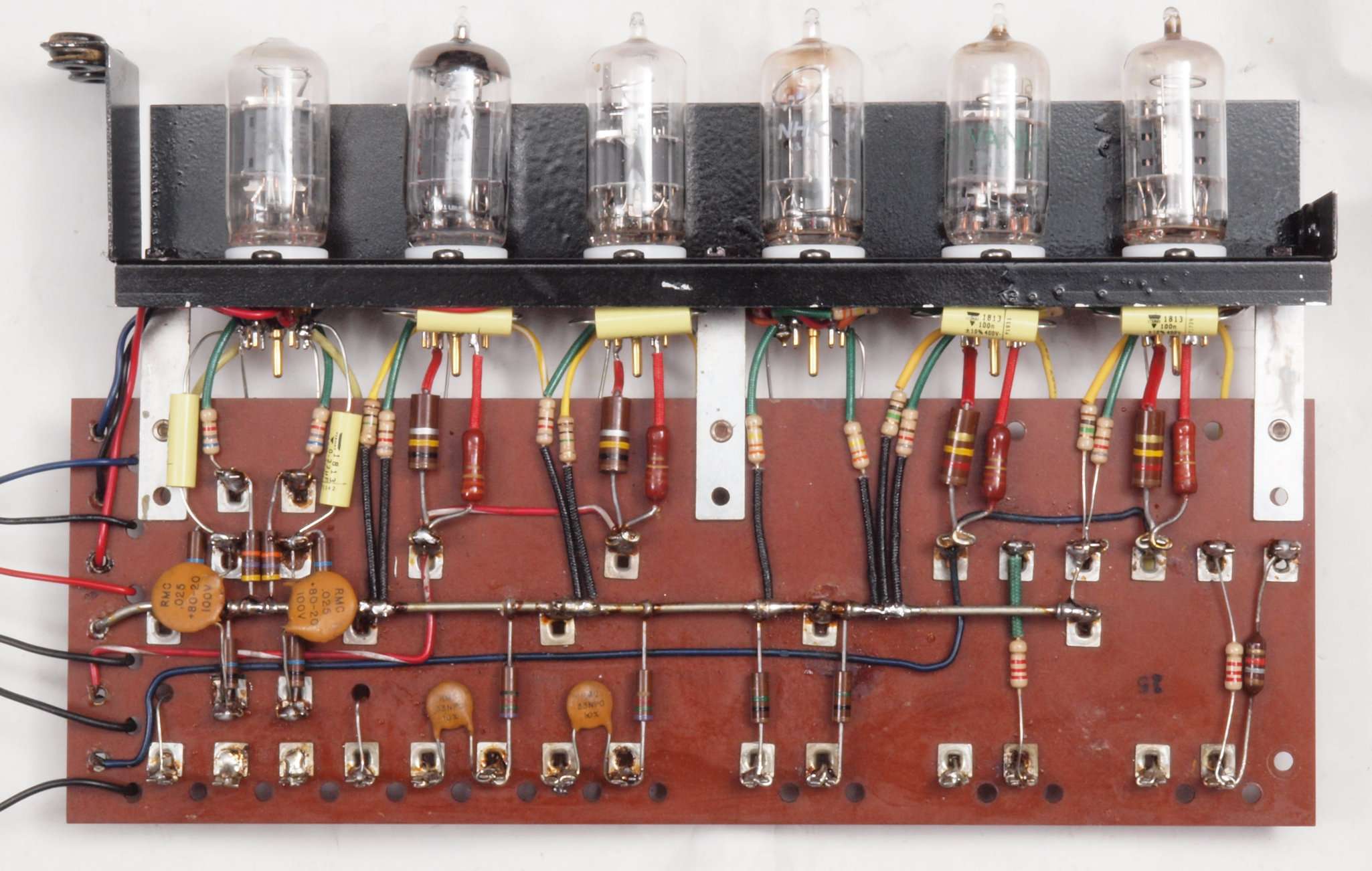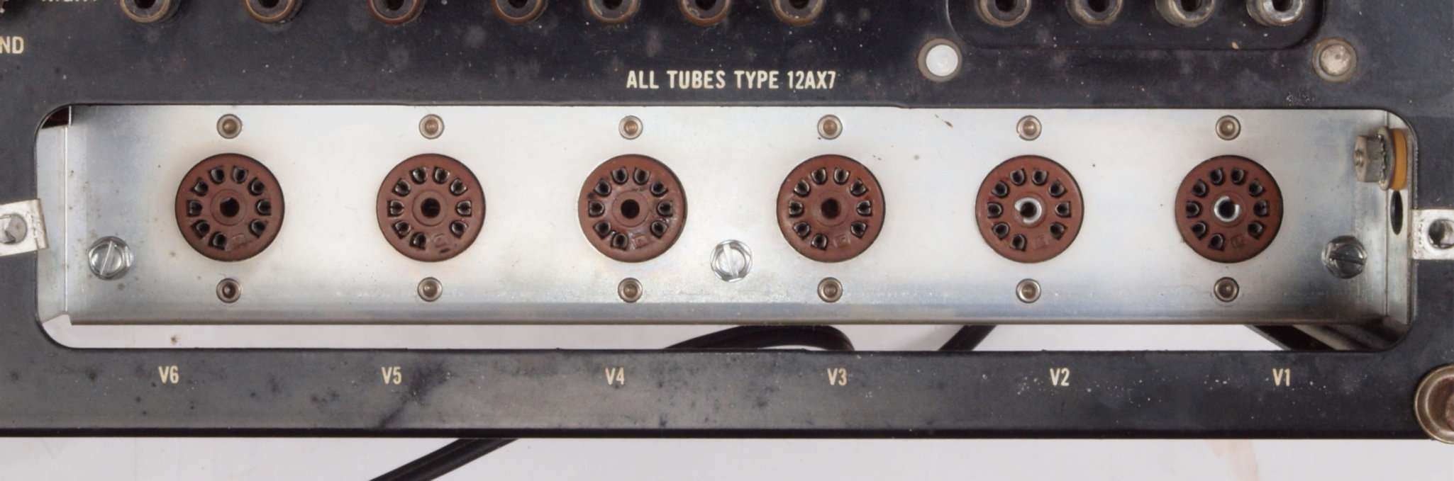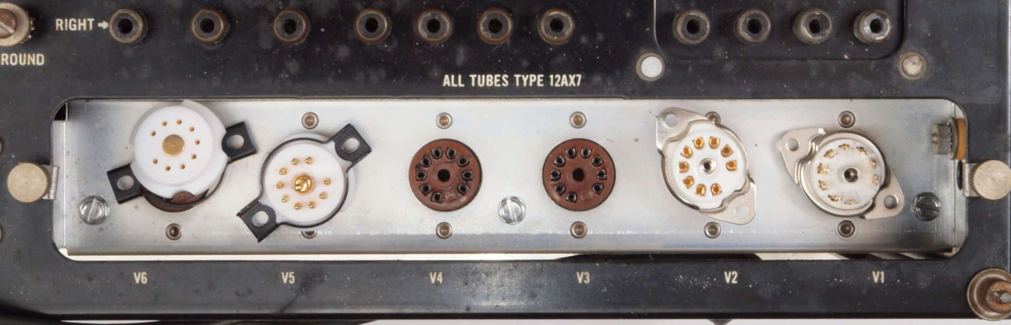 | A91. 点検中 付属真空管 ナショナル12AX7。 右から1番目、2番目、、、、6番目。 | ||||||||||||||||||||||||||||||