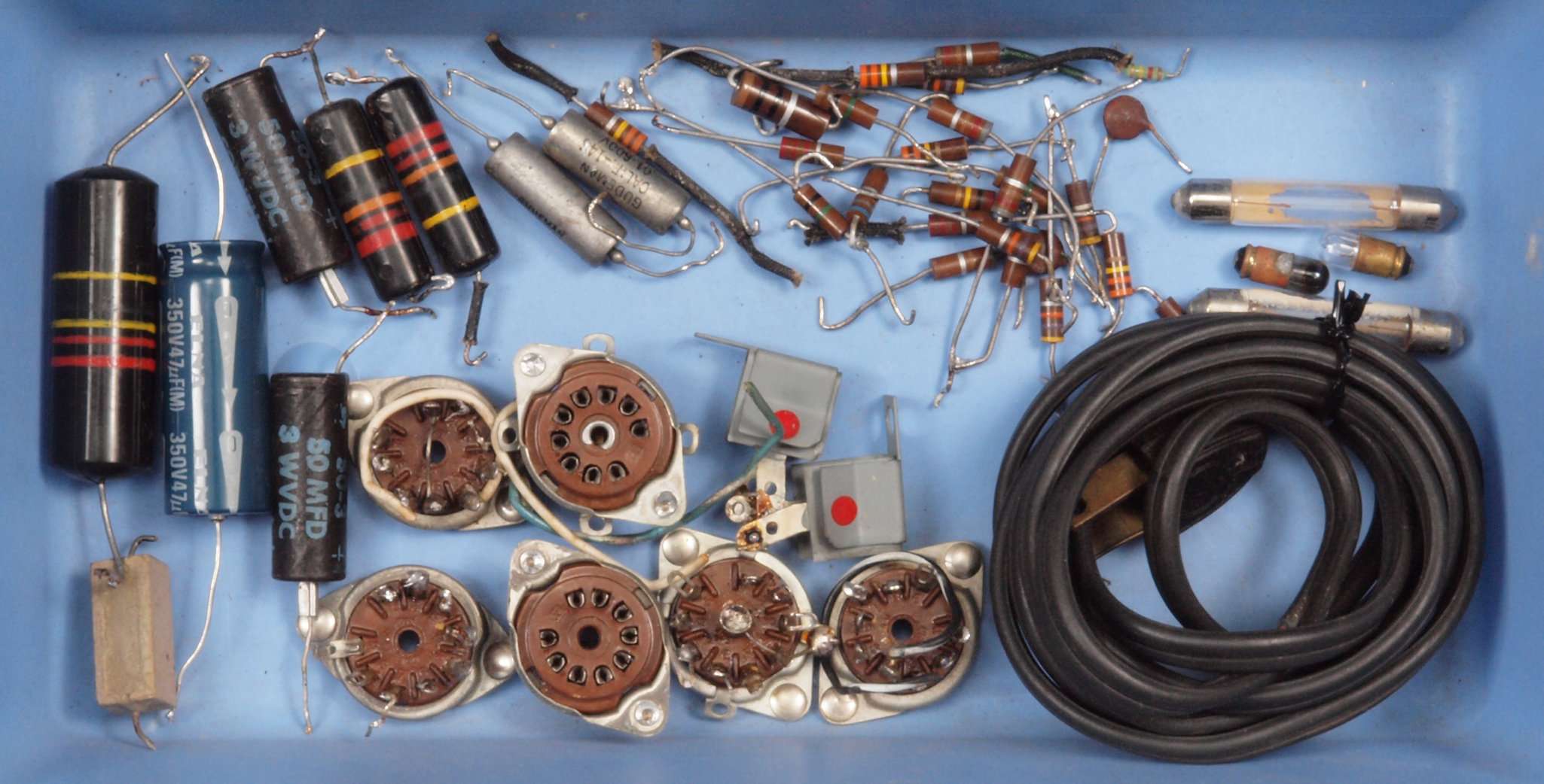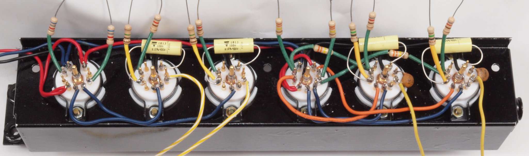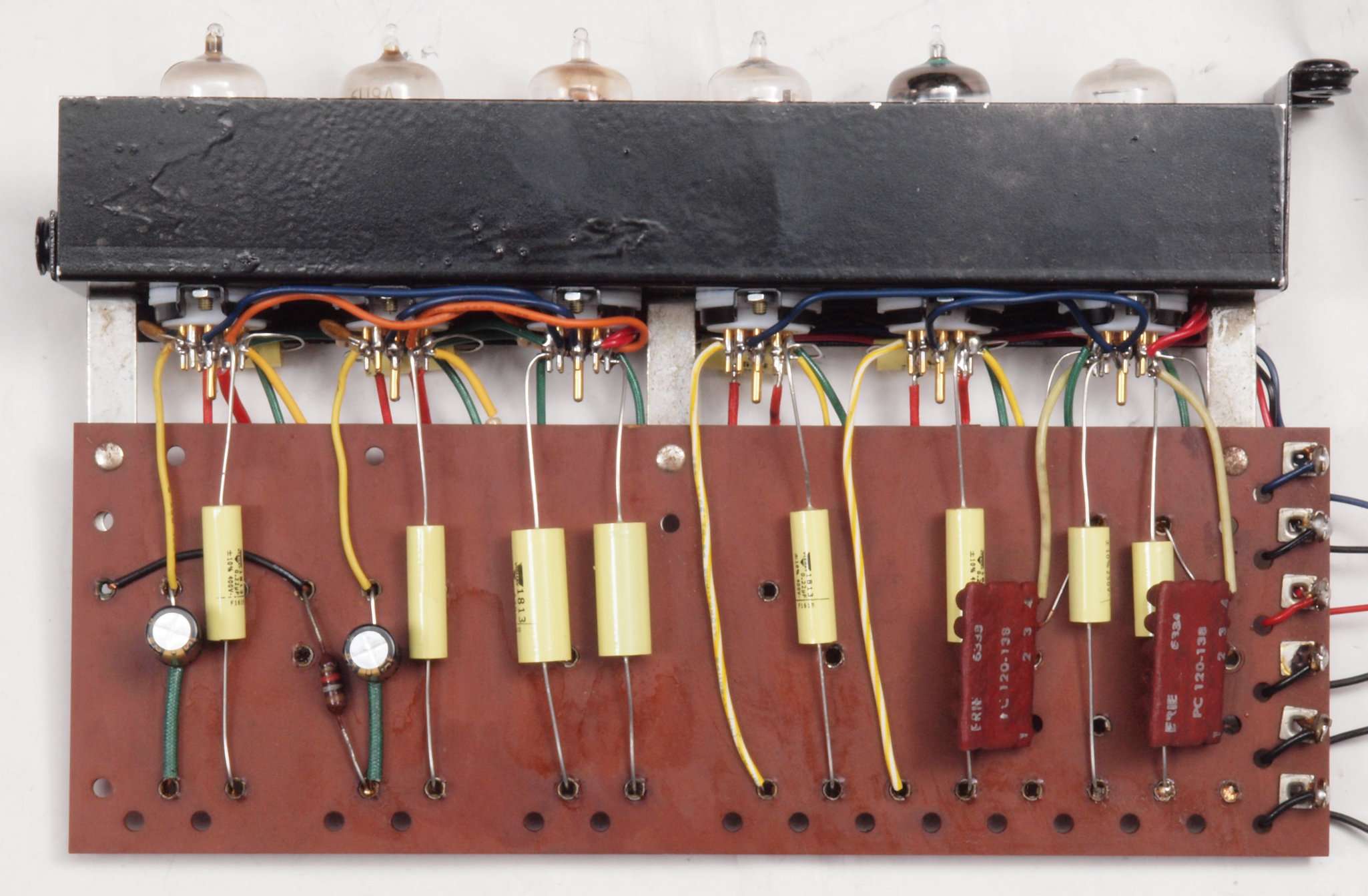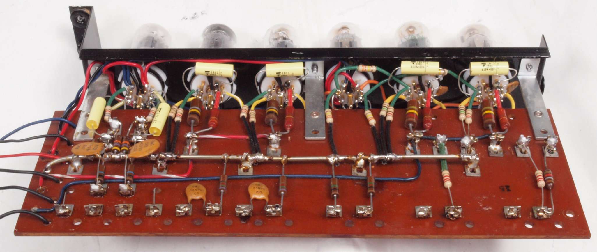 | A91. 点検中 付属真空管 ナショナル12AX7。 右から1番目、2番目、、、、6番目。 | ||||||||||||||||||||||||||||||