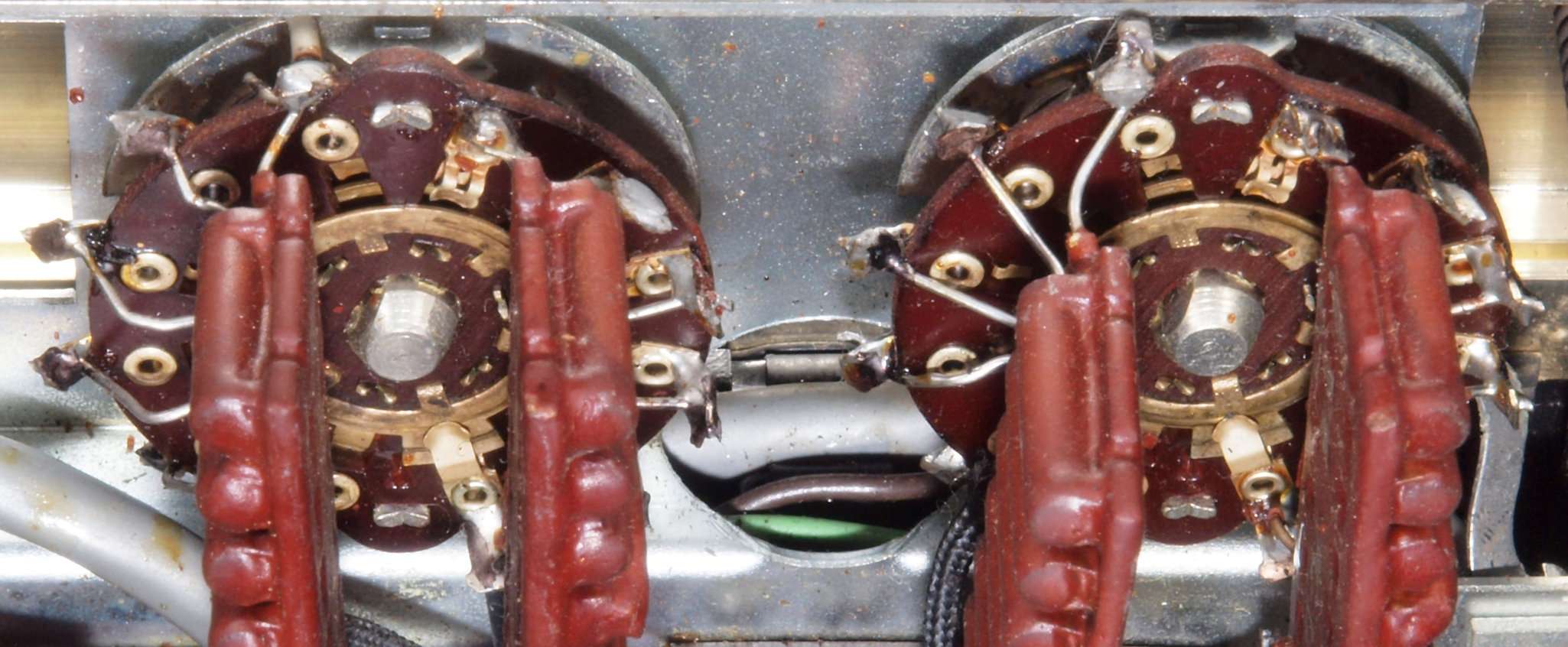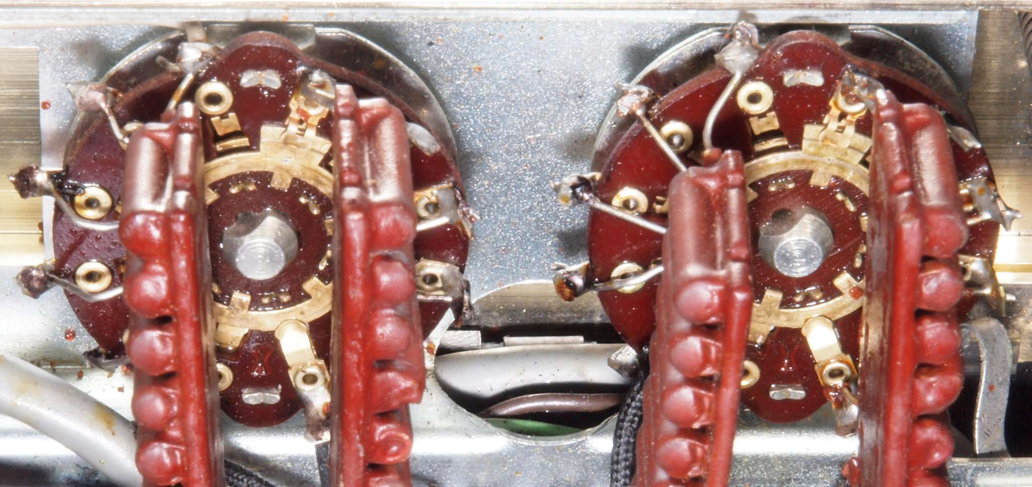 | A62. 点検中 真空管ソケット比較、 左=テフロン絶縁製、右=タイト絶縁製、テフロン絶縁製選択。 | ||||||||||||||||||||||||||||||