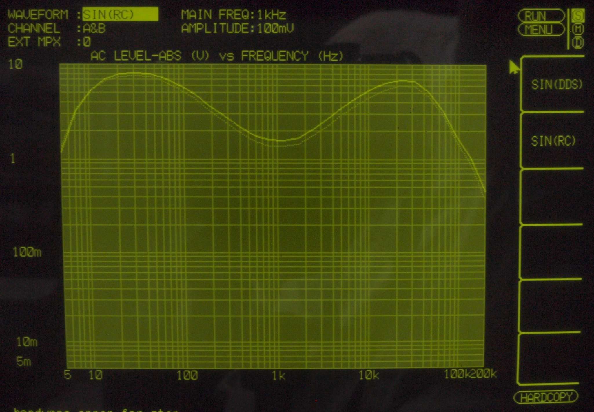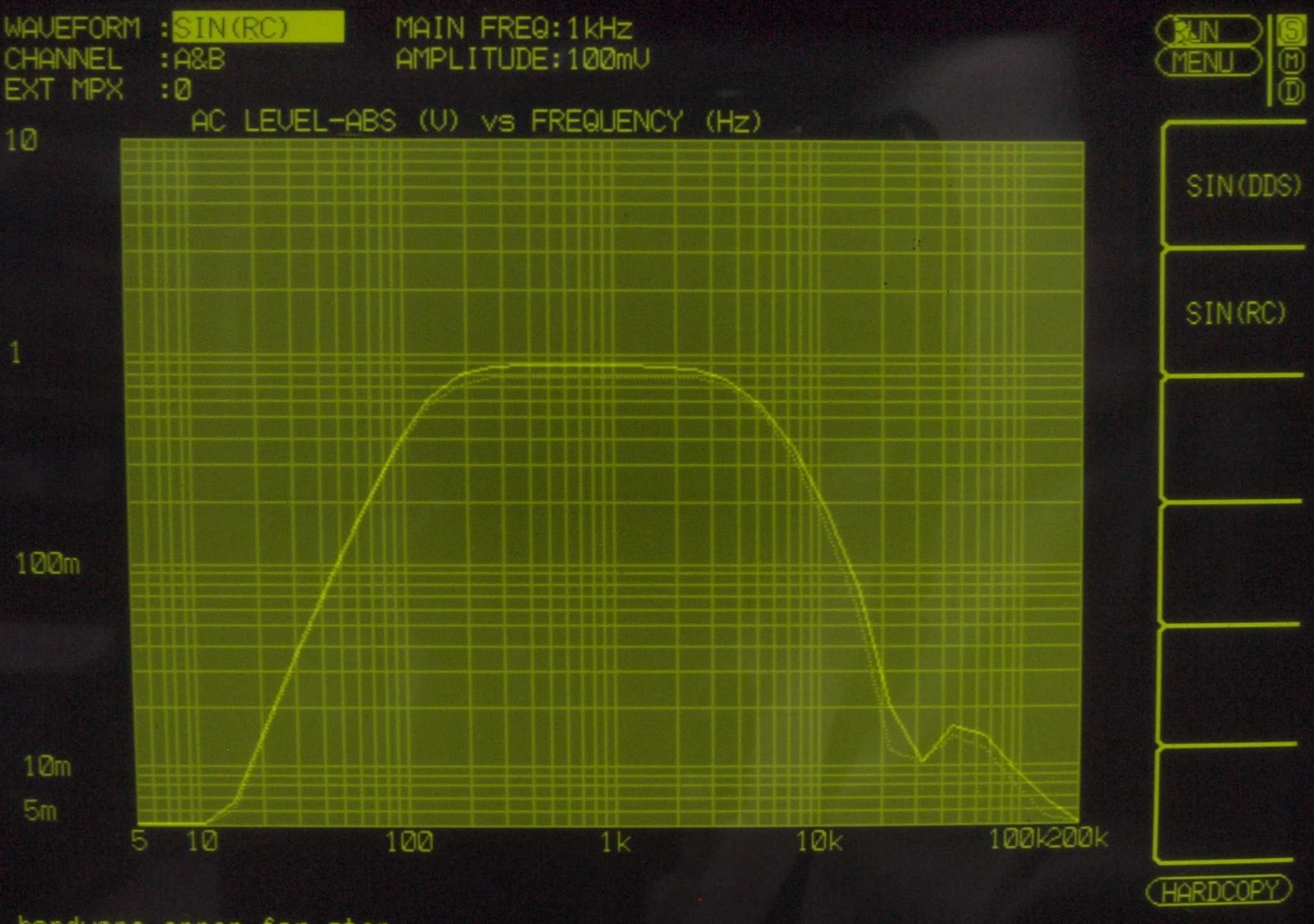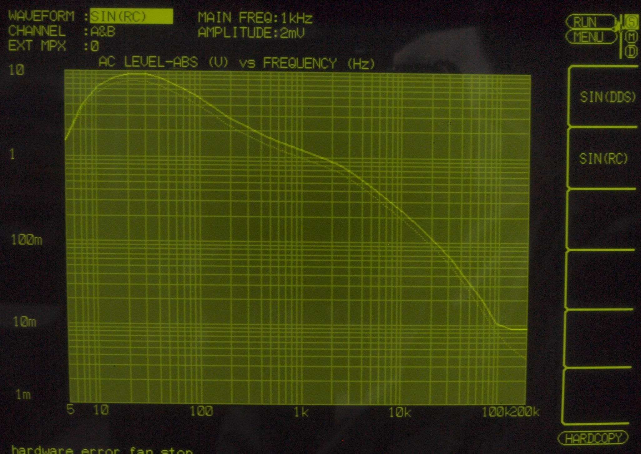 | F. 上位測定器による 調整・測定。 画像をクリックすると、大きく(横幅2050ドット)表示されます。 F0. 下のオーディオアナライザーVP−7732Aで自動測定。 |