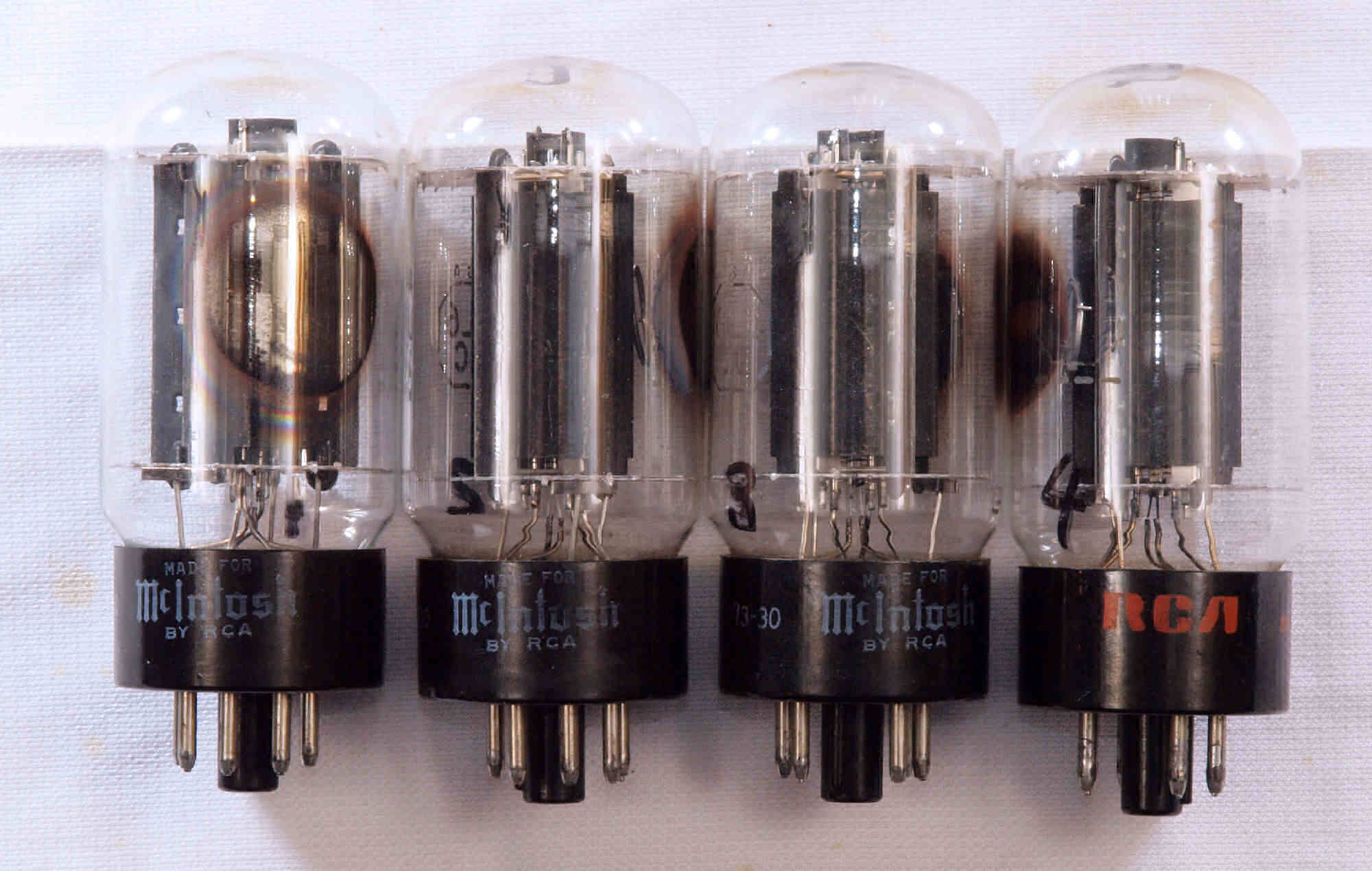 | 購入真空管「6L6GC」。 左から1本目.2本目.3本目.4本目。 | ||||||||||||||||||||||||
