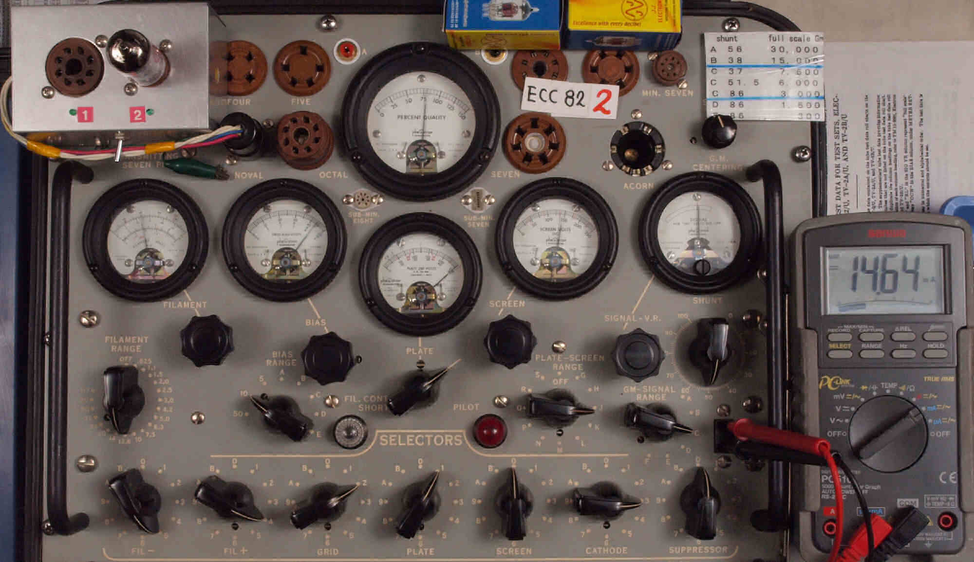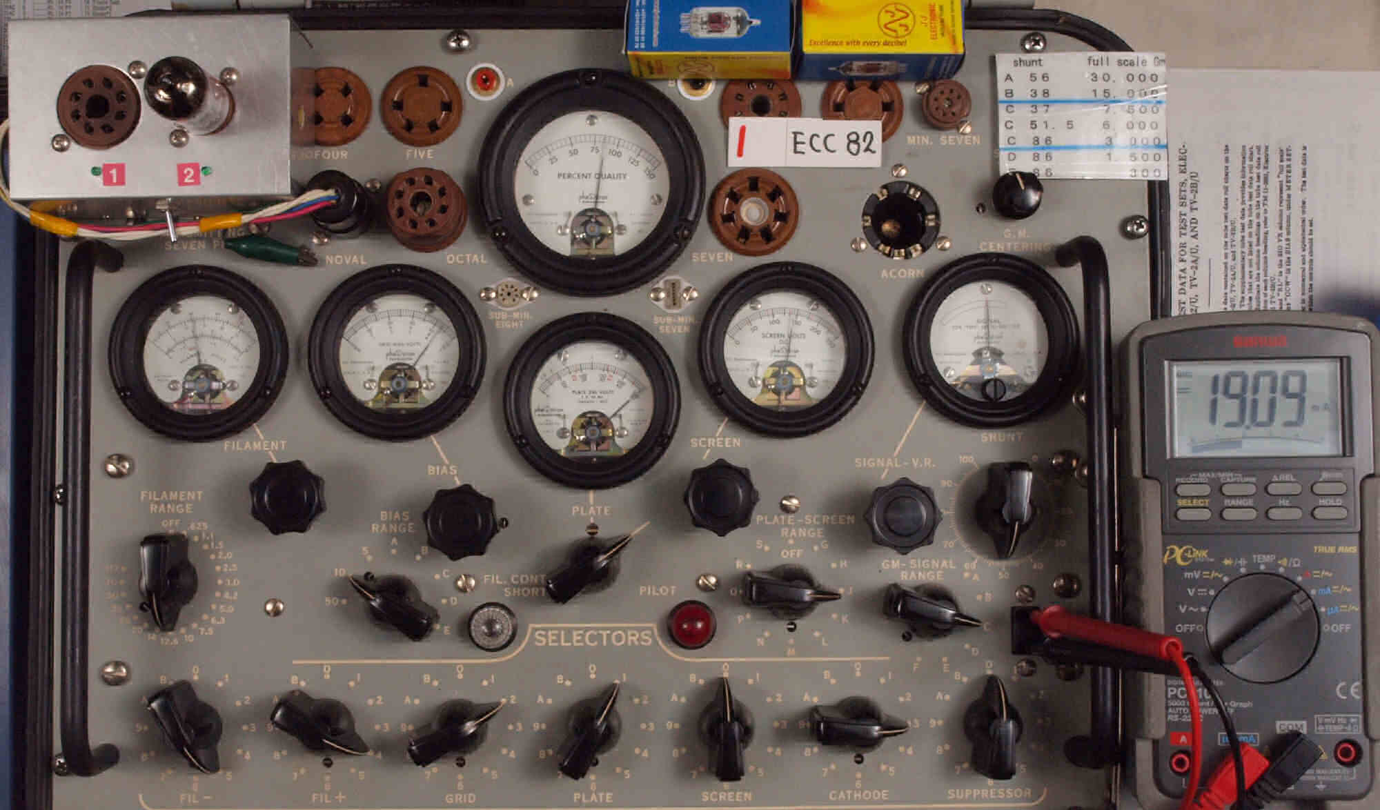 | V32. 購入真空管「ECC82」1本目ユニット2測定。 Gm=3400μmho、Ip=19.09mA。 | ||||||||||||||||||||||||