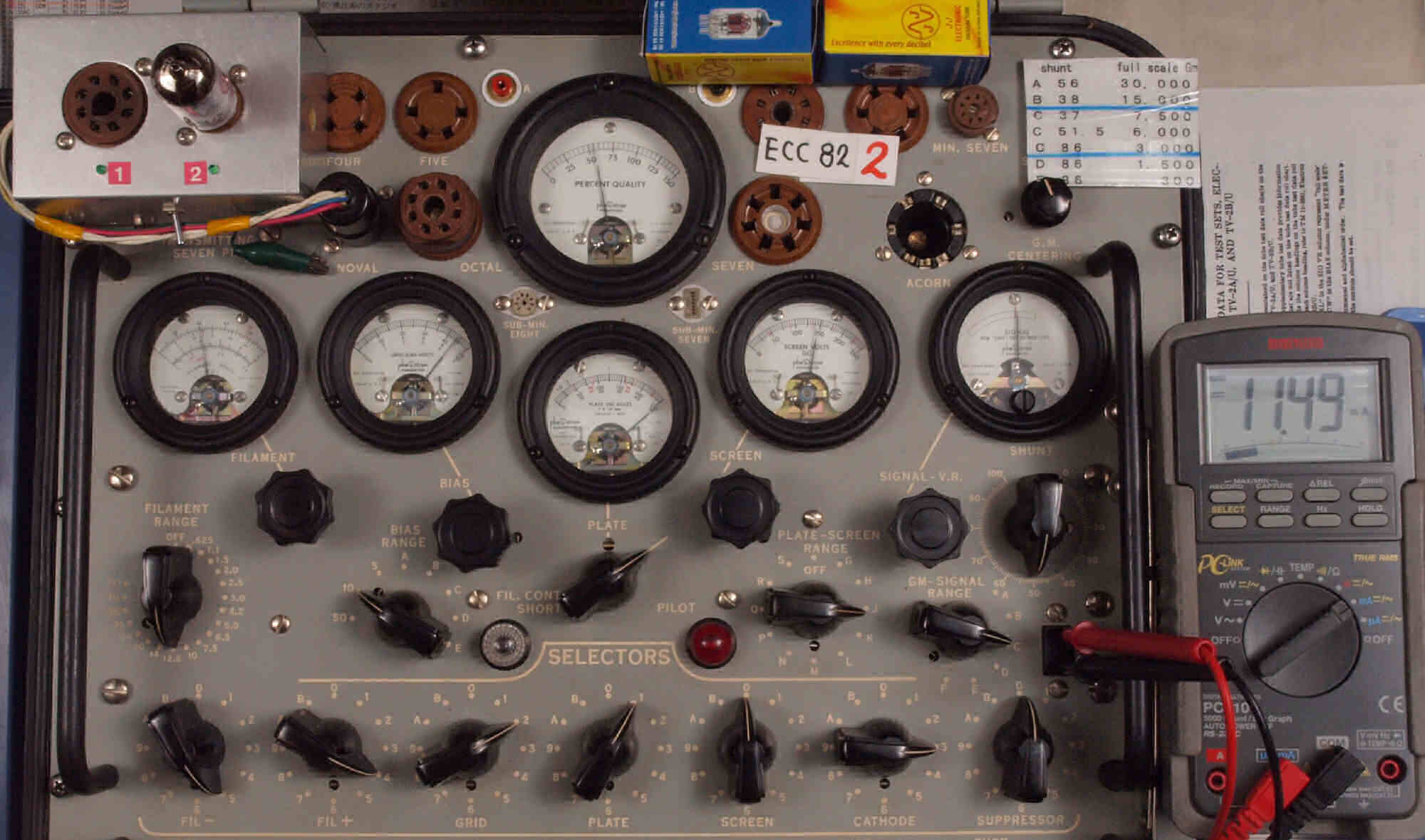| V42. 購入真空管「ECC82」2本目ユニット2測定。 Gm=2200μmho、Ip=11.49mA。 | ||||||||||||||||||||||||