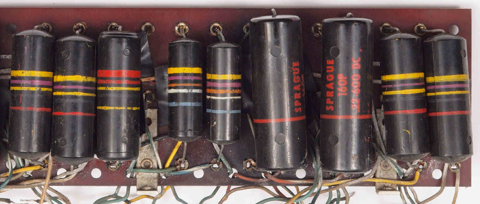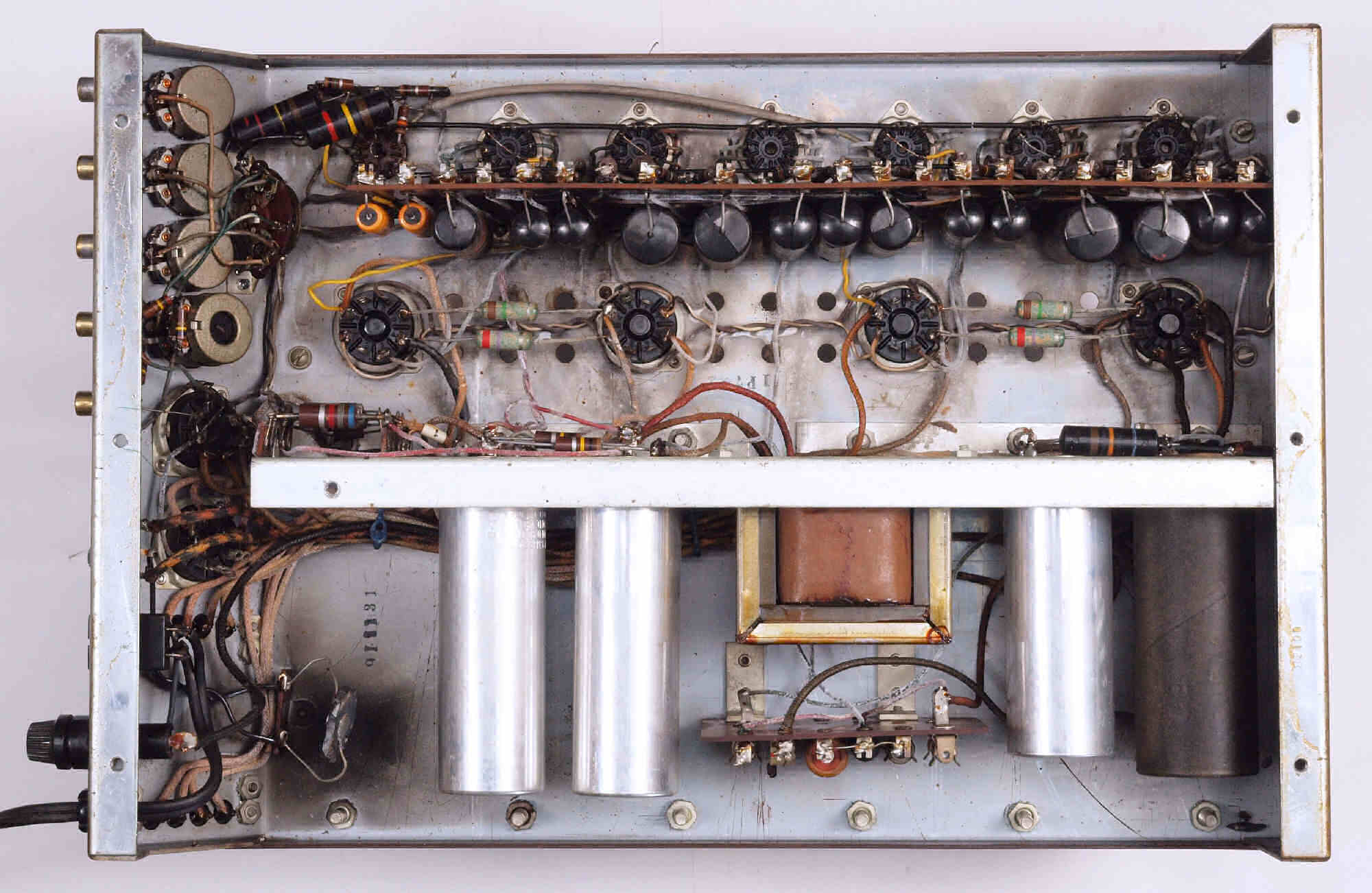 | C51. 修理前 ブロック電解コンデンサーとチョークトランスのシャーシ。 | ||||||||||||||||||||||||