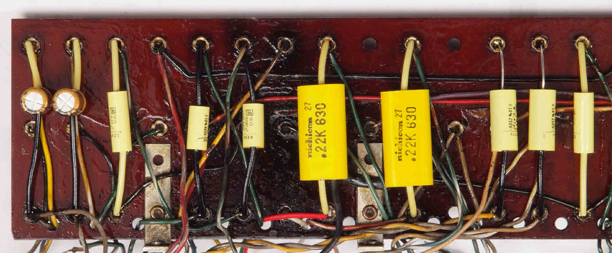 | C52. 修理後 ブロック電解コンデンサーとチョークトランスのシャーシ。 | ||||||||||||||||||||||||