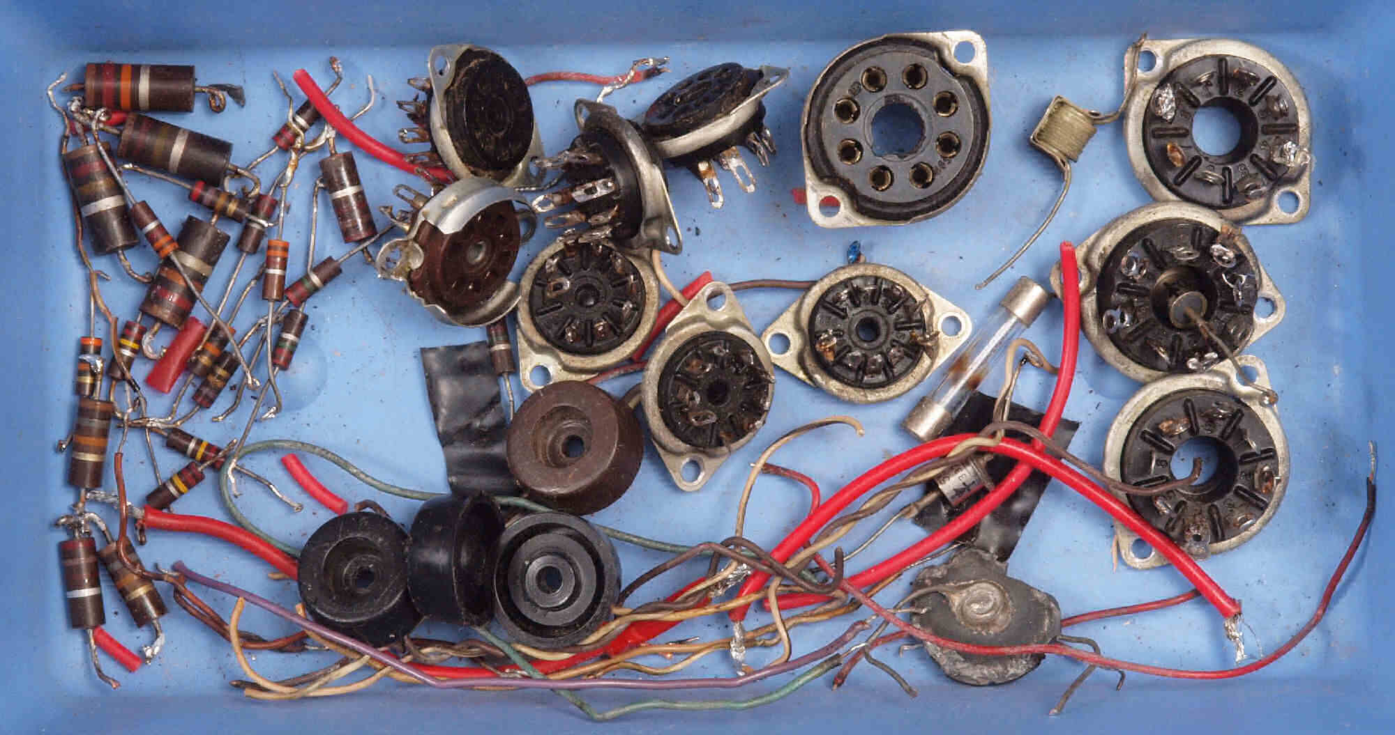 | C83. 修理(ソケット配線)中 真空管ソケットには、ピン固定の為、ジャンク真空管を挿入する。 | ||||||||||||||||||||||||