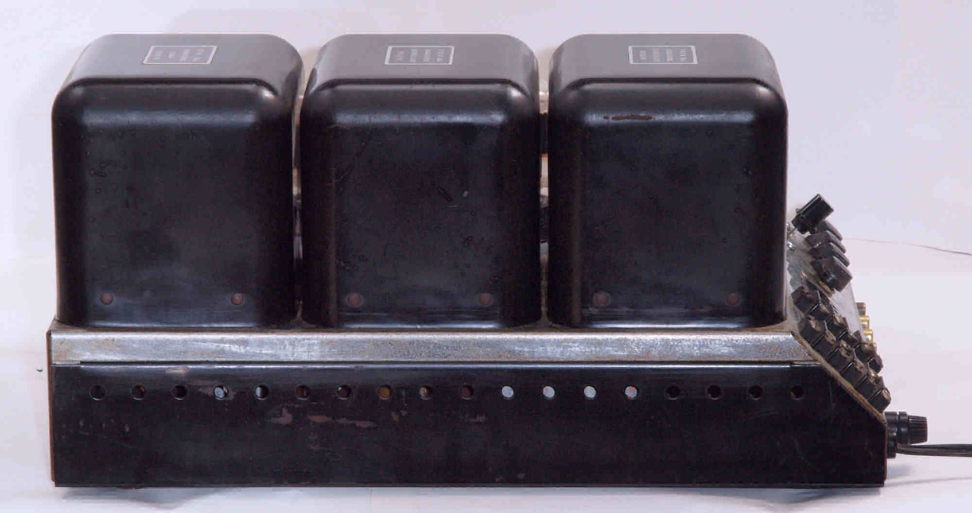 | U8. 付属真空管「6L6GC」。 左から1本目.2本目.3本目.4本目。 真空管ハンドブック(規格表)の、 相互コンダクタンス=6000μmho「Ep=250V、Esg=250V、Eg1=−14V、Ip=72mA」 1960/1962/1964/1966ナショナル真空管ハンドブック、1995オーディオ用真空管マニアル、60/62/69東芝電子管ハンドブック、1962日立電子管ハンドブック、1965/1971全日本真空管マニュアル、RC15/19/26/27/28/29/30 Receiving Tube Manual、1966実用真空管ハンドブック、1995世界の真空管カタログより。 |