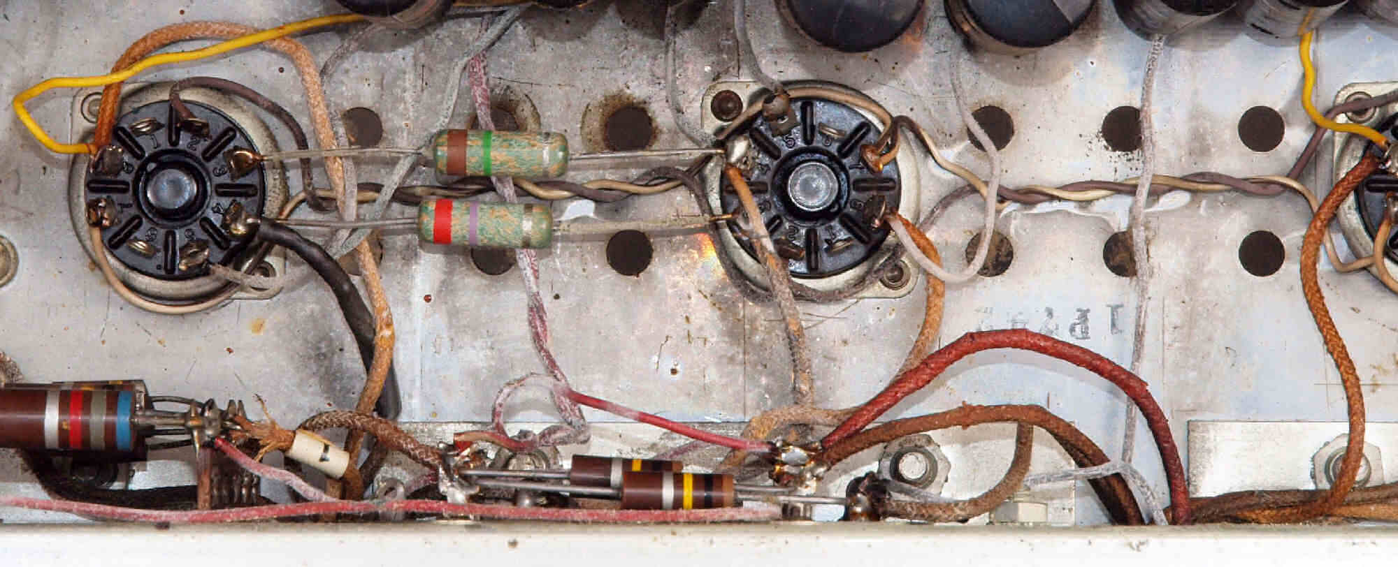 | C43. 修理前 V4(12AX7)−V5(12AU7)−V6(12BH7)−V73(12AX7)ソケット周り配線 | ||||||||||||||||||||||||