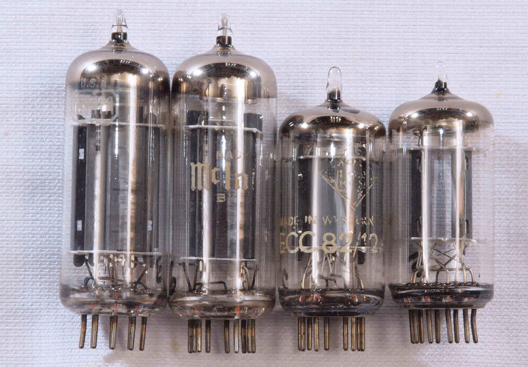 | 付属真空管、左から「12BH7」1本目、2本目。 「12AU7(ECC82)」1本目、2本目。 | ||||||||||||||||||||||||