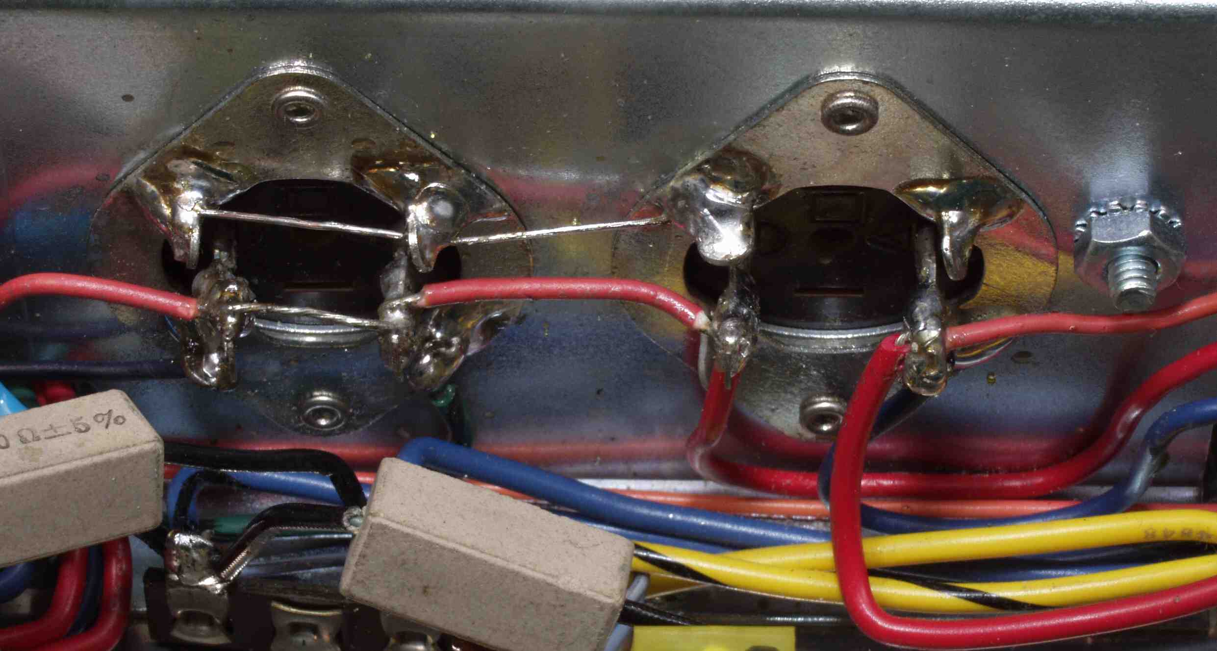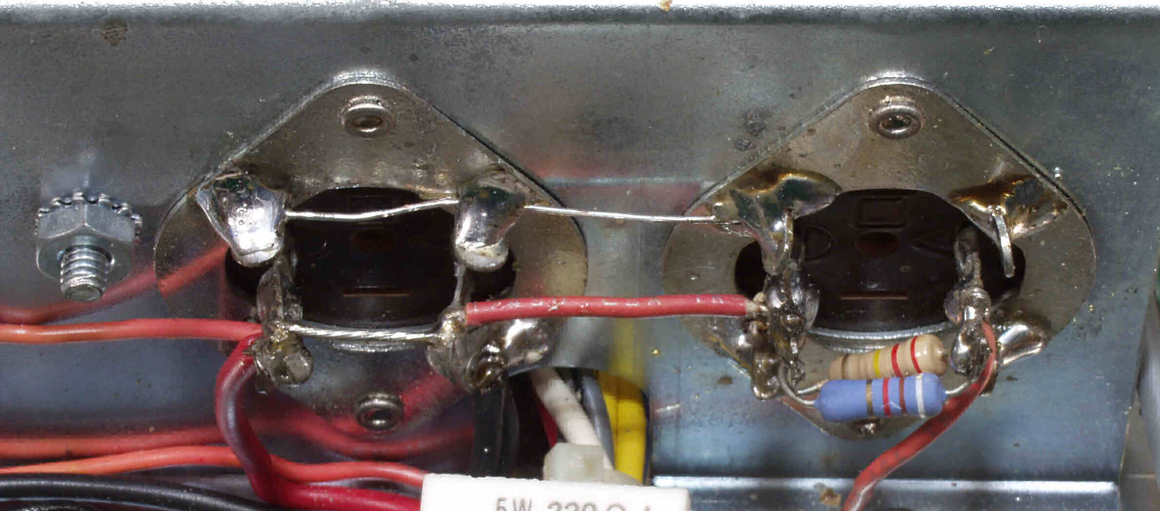 | A5B. 点検中 V1・V2ソケットの半田、腐食がかなり進んでいる。ここまで進むと半田補正は不可で、接続をやり直す。 | ||||||||||||||||||||||||