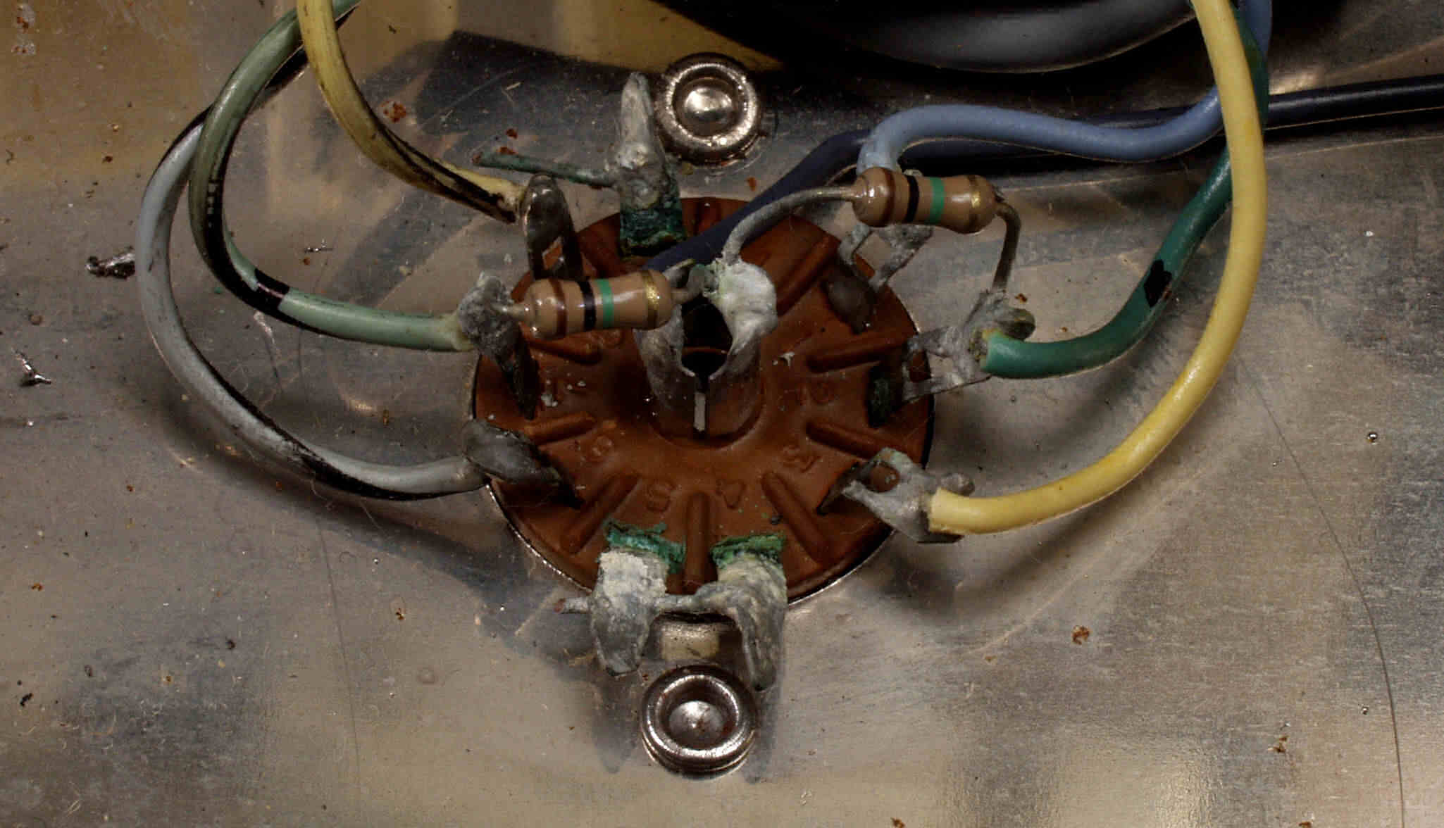 | C2D. 修理中 12AX7MT真空管ソケット周りの配線を外す、酸化鉛が沢山でる2。 | ||||||||||||||||||||||||