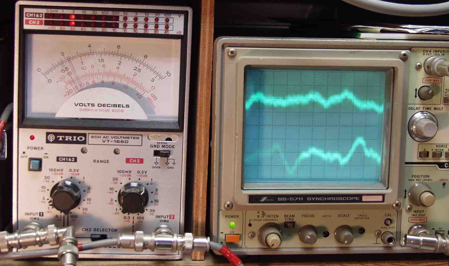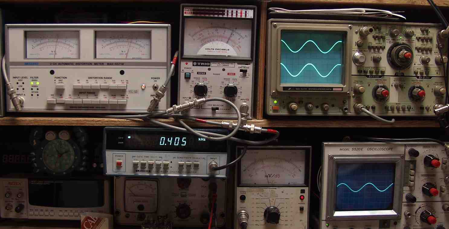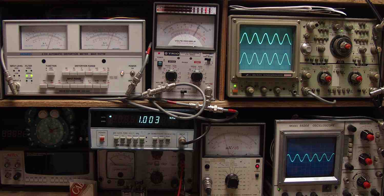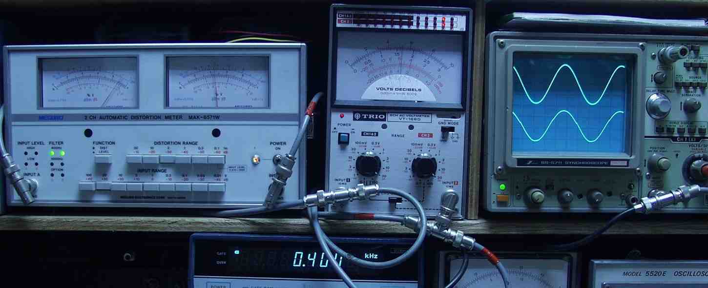 | A5. 修理前の点検、 応急処置で出力・歪み測定 R側=20V=50W 歪み率=1.5% 400HZ L側=16V=32W 歪み率=3% 400HZ |