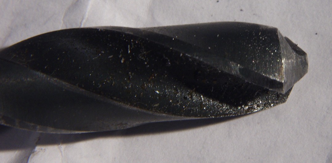 | C3D. 修理中 シャーシはステンレス製なので、2本空けると、ご覧の様にドリルの歯が鈍る! | ||||||||||||||||||||||
