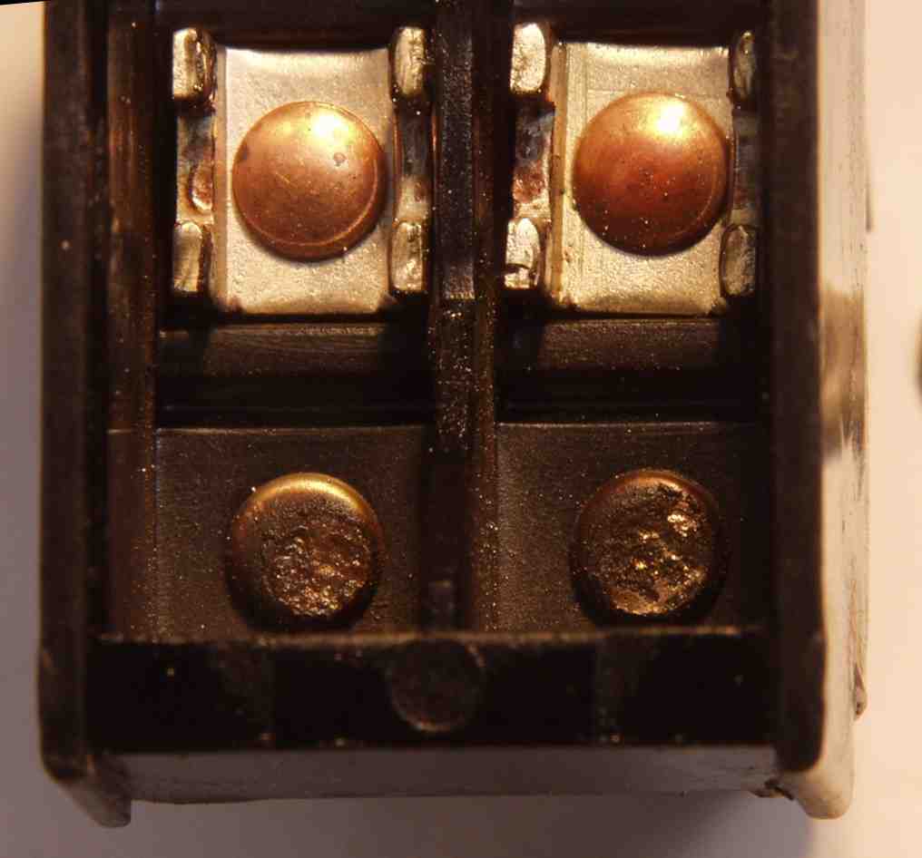 | C6B. 電源投入SWがおかしいのでバラして見る アークで削れた接点 | ||||||||||||||||||||||
